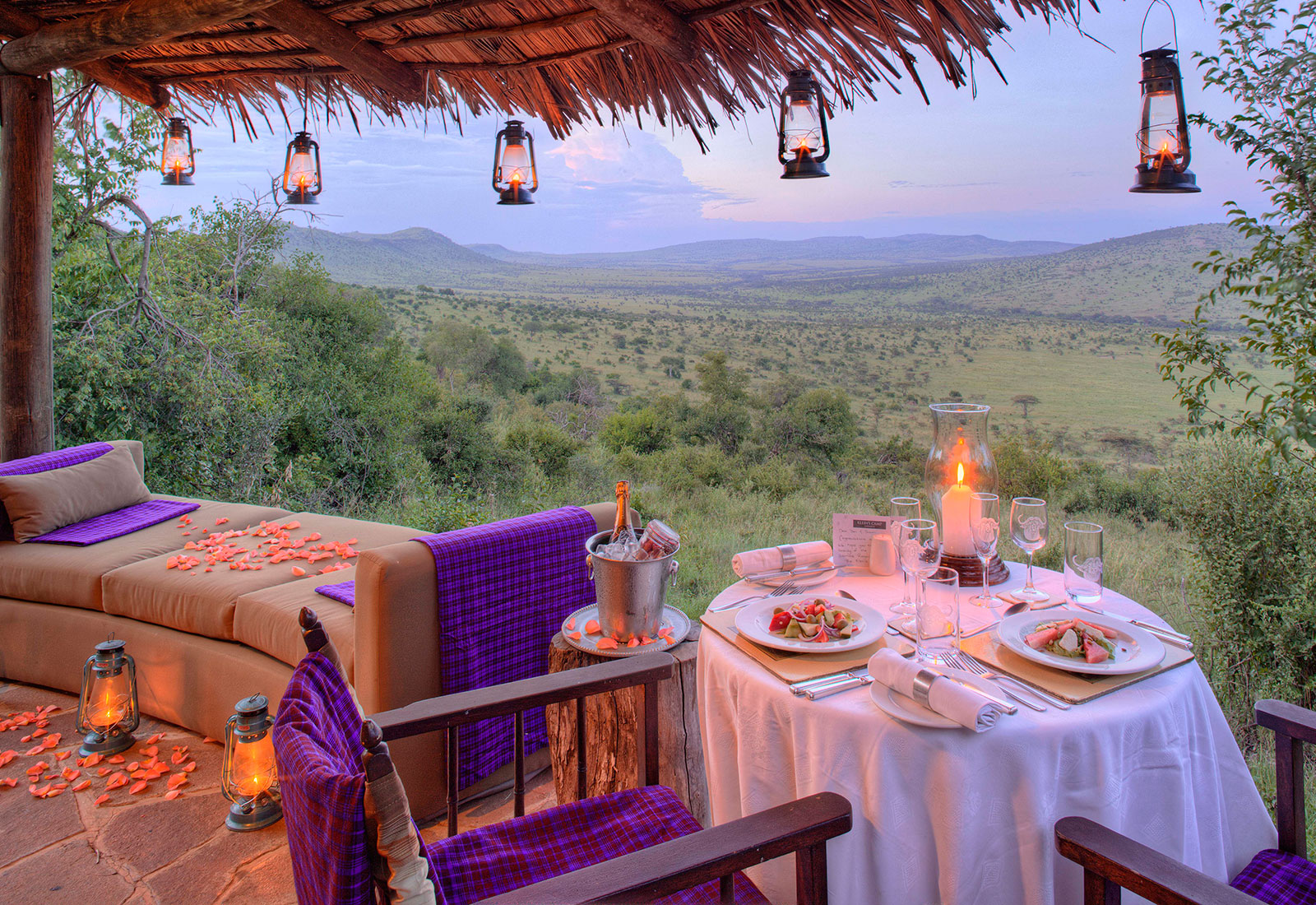 En egen stenhydda med vitputsade väggar och vackert trägolv och ljus inredning blir ditt hem här uppe på kullen. Från den möblerade uteplatsen är utsikten fantastisk och två gånger om året fylls dalen nedanför av miljontals djur i flyttartagen. Snacka om att sitta på första parkett till allt på savannen.