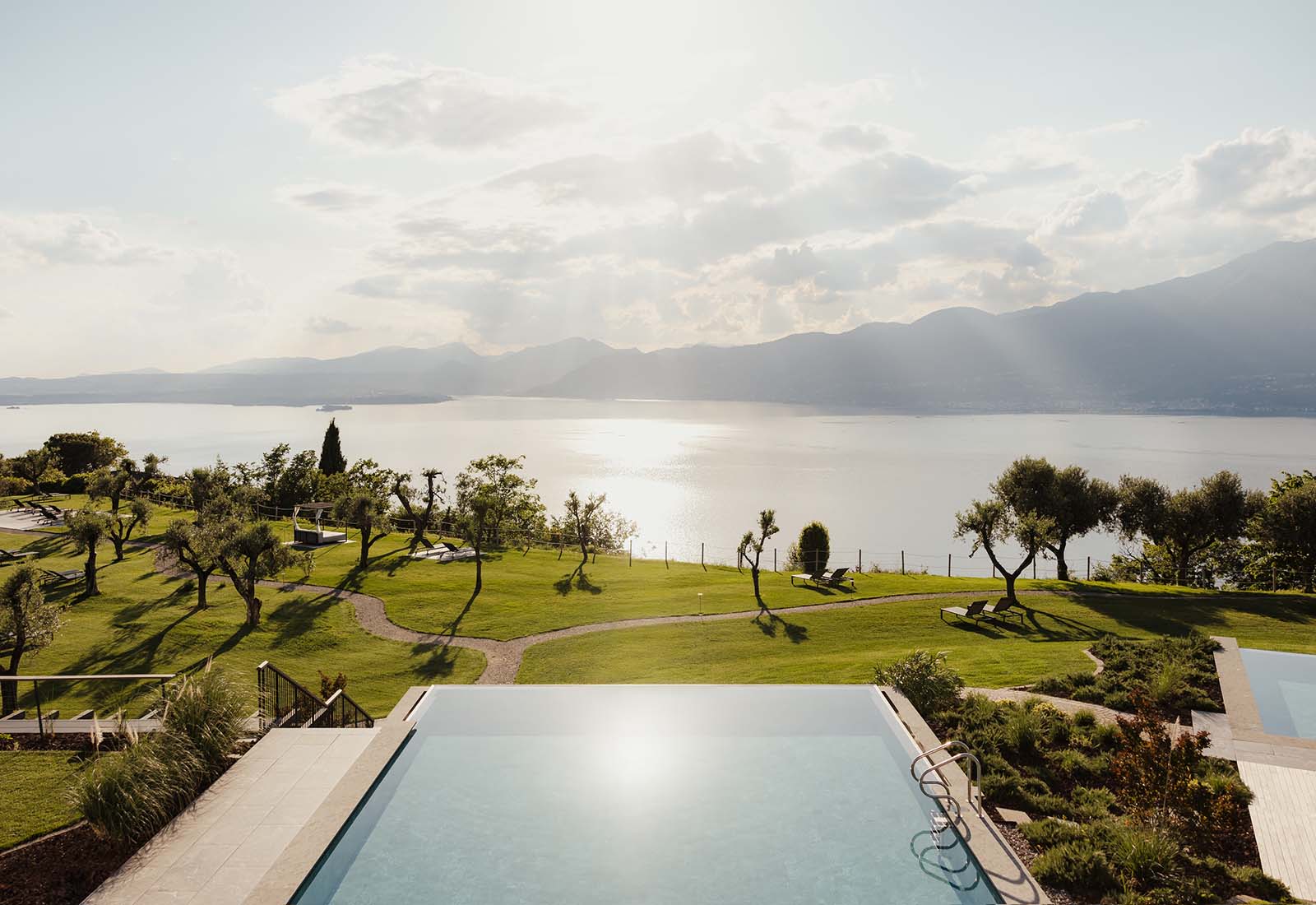 Spaområdet är bra utrustat, även om själva receptionen där är liten och ibland obemannad. Den uppvärmda inomhus‑/utomhuspoolen är särskilt härlig vid solnedgång, och det finns även en 25‑metersbassäng för längder (dock ouppvärmd). Utöver detta finns ångbastu, en stor panoramabastu och gott om solsängar i trädgården bland olivträd och oleander. Hotellet erbjuder gratis wellnesspass som yoga, pilates och meditation. Gäster kan även hyra el‑Vespas, en eldriven Fiat 500 eller e‑bikes, och det går att boka vinprovningar på lokala vingårdar. Hotellet håller öppet året runt. Det finns två restauranger: Al Tramonto, som serverar gourmeträtter med utsikt över sjön, och Osteria La Pergola, som erbjuder italienska klassiker i en mer avslappnad miljö. Sommartid kan du även äta lättare rätter vid poolen. I loungebaren rekommenderas husets egen drink “Spritz of Senses”, inspirerad av sjöns solnedgångar.