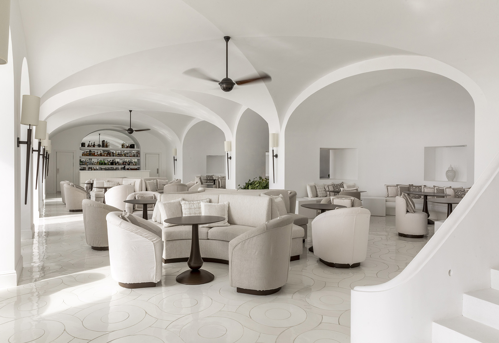 Den arkitektoniska signaturen präglas av ljusa naturmaterial, marmordetaljer och en palett av vita nyanser som speglar solljuset och ramar in havets färgskiftningar. Designen skapar ett harmoniskt samspel mellan inne och ute, där panoramautsikten över Amalfikusten alltid står i centrum. Furore Grand Hotel erbjuder cirka 35 eleganta rum och sviter, alla med havsutsikt, privat balkong eller terrass samt exklusiva materialval. Inredningen är sober och samtida, med rena linjer, handplockade textilier och italienskt hantverk i fokus. Vissa sviter har privata jacuzzis eller egna pooler, perfekta för gäster som söker maximal integritet och komfort.
