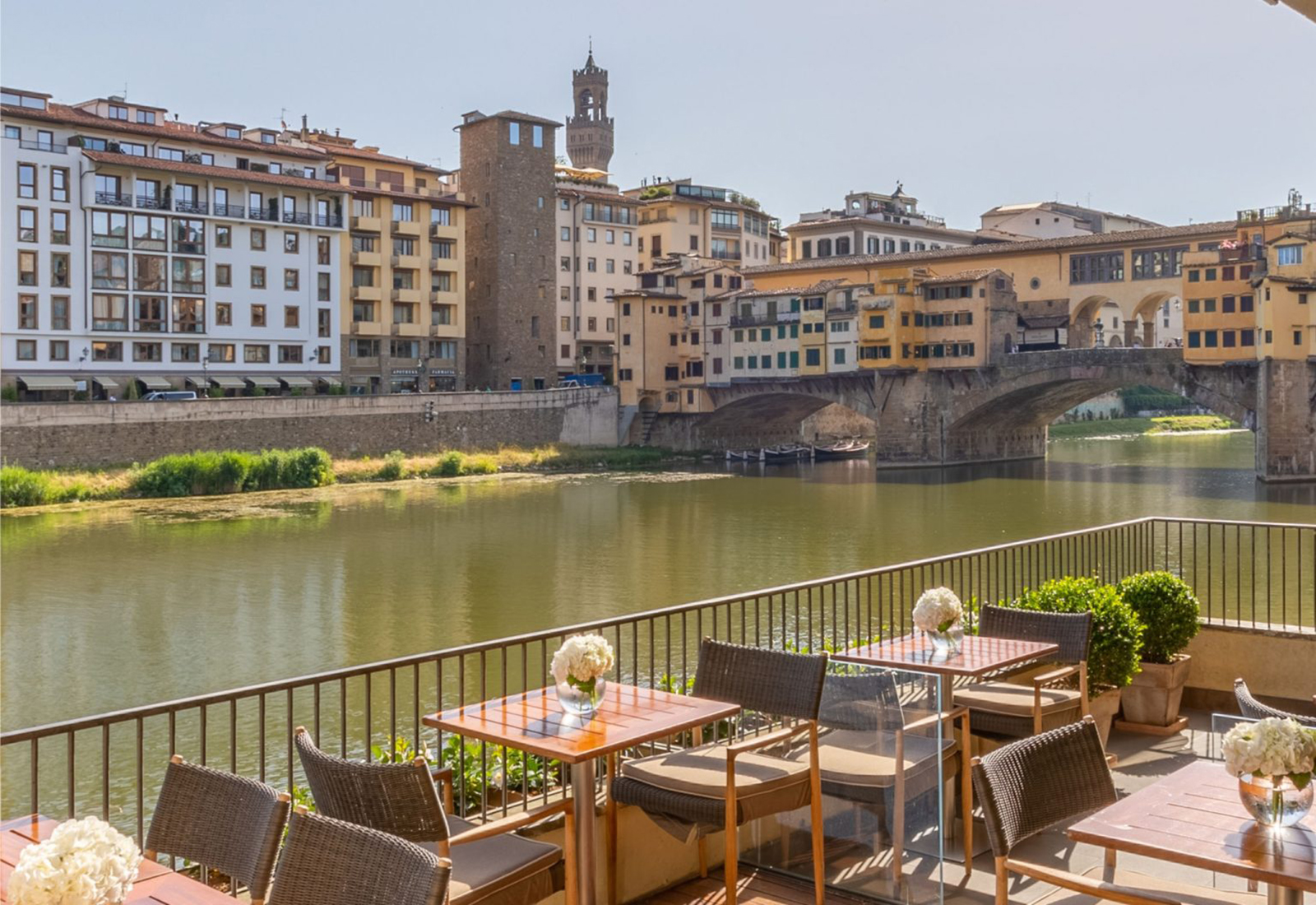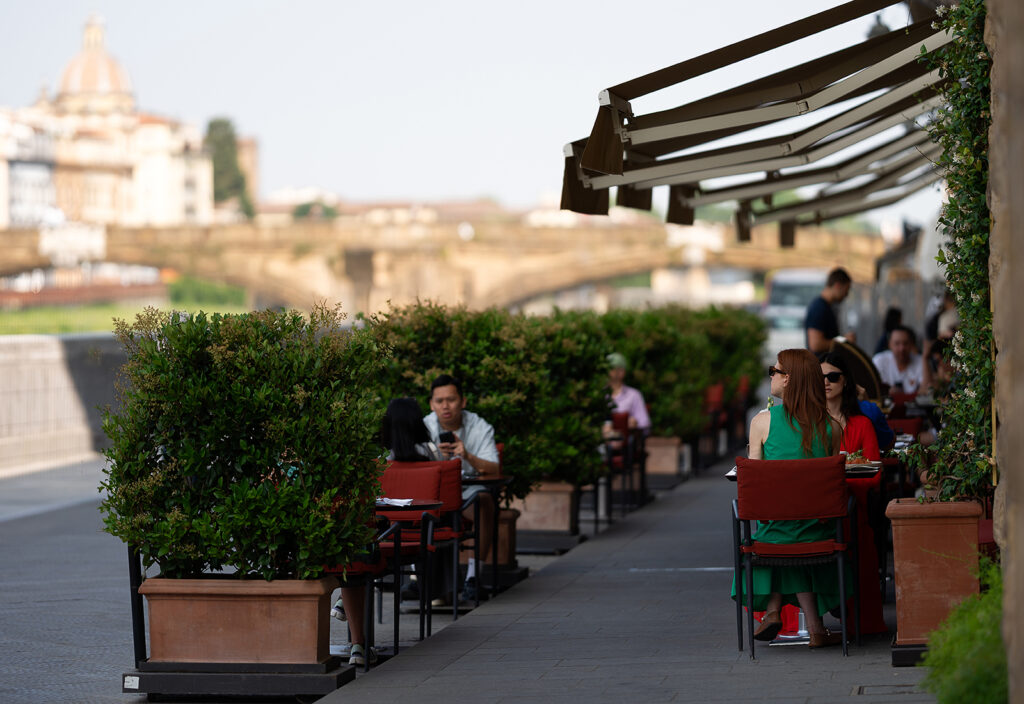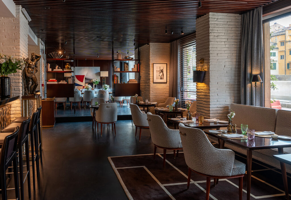 Exklusivt hotell med 37 rum och lyxsviter, inklusive en spektakulär taksvit och en penthousevåning på 273 m². De krusande vattnen i Arno och den tidlösa Ponte Vecchio, inramade av fönstren i ditt vardagsrum och sovrum, speglar samspelet mellan dåtid och nutid i interiörens design. Klassiskt och modernt smälter samman när varma träslag och dova grå toner badar i skenet från förgyllda detaljer och skimrande stål. Mjuka material och behaglig kashmir skapar en aristokratisk men samtidigt avkopplande atmosfär.