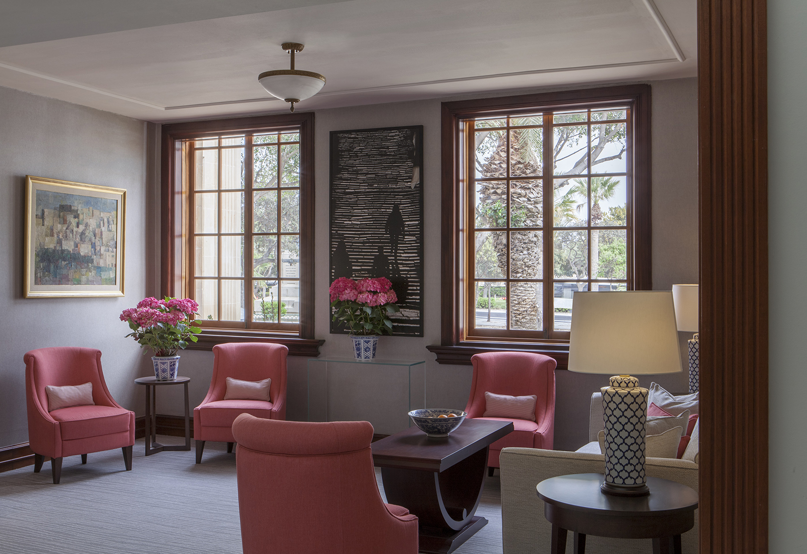 Hotellet erbjuder 132 rum och sviter, generöst tilltagna och designade i modern medelhavsstil med bevarade originaldetaljer såsom marmorgolv och balkonger med vyer mot staden, trädgårdarna eller Marsamxett Harbour. Interiörerna är framtagna i samarbete med designern Peter Young. Höjdpunkter i rummen: Stora panoramavyer, moderna tekniska lösningar, svala färgpaletter i vitt och blått samt lyxiga textilier och lokalt tillverkade möbler. Inget är lämnat åt slumpen.