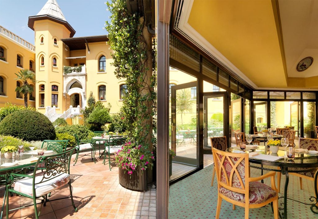 Du bor i Gamla Stan och rummen ligger runt en välskött innergård med fågelsång och doftande kryddörter. Alla rum är olika men lyxigt utrustade och bekväma; stilen är klassikt elegant med turkiskt tema. Två utmärkta restauranger finns: Seasons och St. Sophia Terrace med makalös utsikt mot Blå Moskéen!