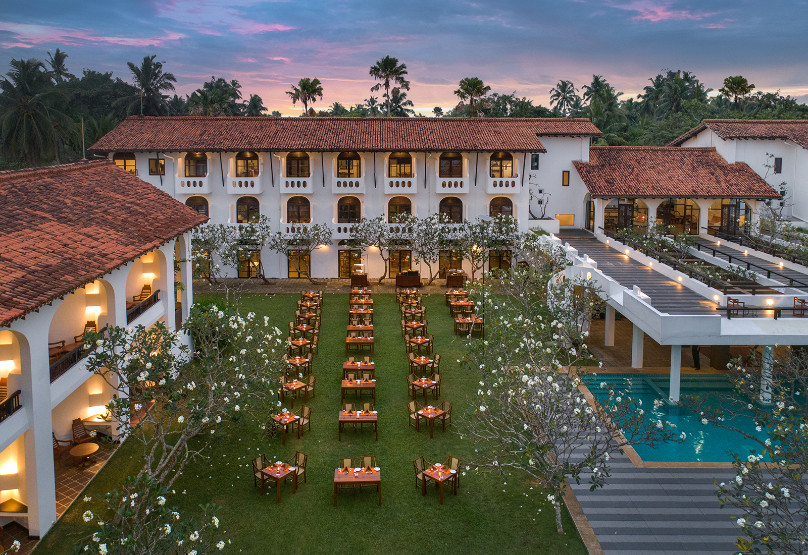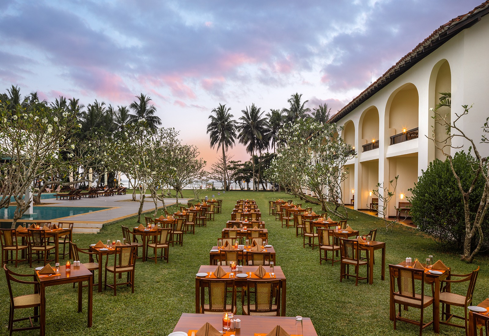 Fullt ayurvediskt kostspår med måltider komponerade av resortens egna läkare för att förhindra obalans och hjälpa till med hälsa och välbefinnande. Stor vegetabilisk buffé kompletteras med bantad mängd fisk eller kyckling, örtdrycker och färska frukter – allt enligt din individuella dosha-balans. Ayurveda Center med ljudisolerade behandlingsrum, örtträdgård och egen apotek/sjukvårdsenhet för Ayurveda. Pool & strand med utomhuspool med solstolar, direkt tillgång till stranden. Fitness & avkoppling: Gym, lugn lounge, bibliotek och souvenirbutik.
