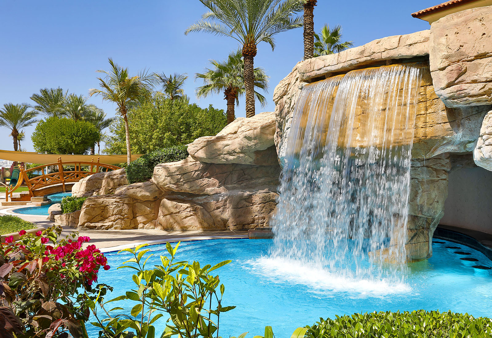Utsikt över trädgård, pool eller hav; soffgrupp, balkong eller terrass, marmorbad, ljuvligaste sänglinne; du bor som en sultan, vi lovar. Flera restauranger och barer lockar; lova att du provar Amaseena där du äter i beduintält på stranden med stjärnhimlen över dig och vågorna som frasar mot sanden.