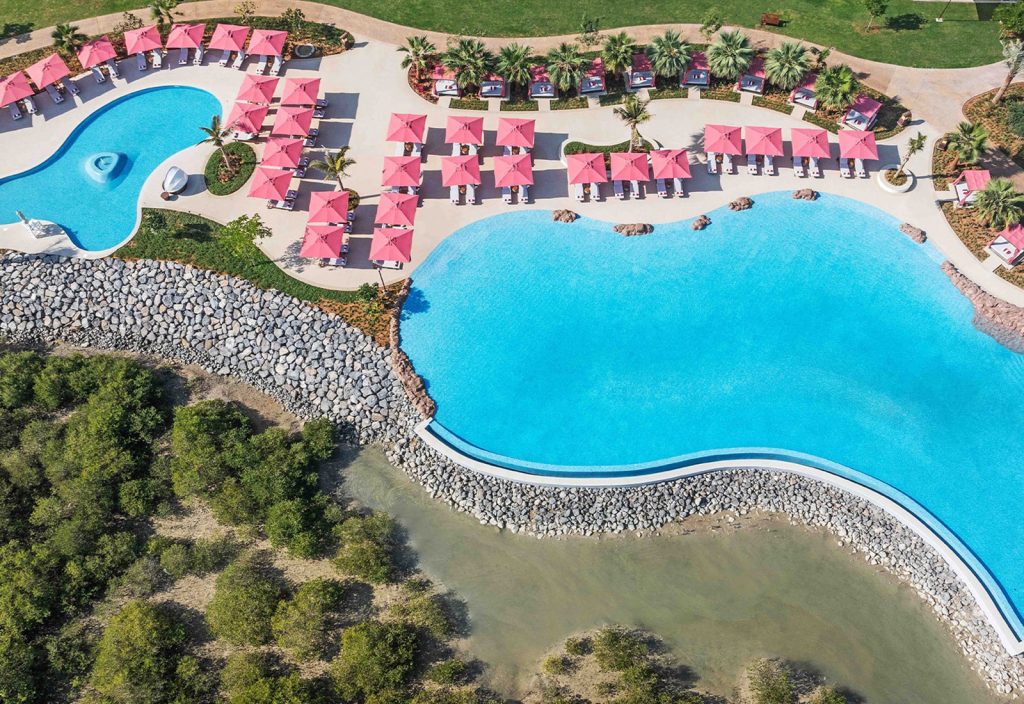 Här är det vattensporter och strandliv som gäller! Härliga pooler, vita stränder och en blå lagun. Paddla kajak i mangroven, spela padel, börja dagen med yoga eller bränn lite kalorier i gymmet. Och inte att förglömma – ett riktigt bra spa! I förväg genom oss eller på plats, kan du boka spännande utfärder i emiratet, såsom ballongflygning, zipline, övergivna byar och annat spännande. Flera olika restauranger gör det lätta att variera måltiderna och man använder i möjligaste mån lokala råvaror. Men vill du hellre äta på stranden, på din altan eller någon annanstans, fixar din butler såklart det också.