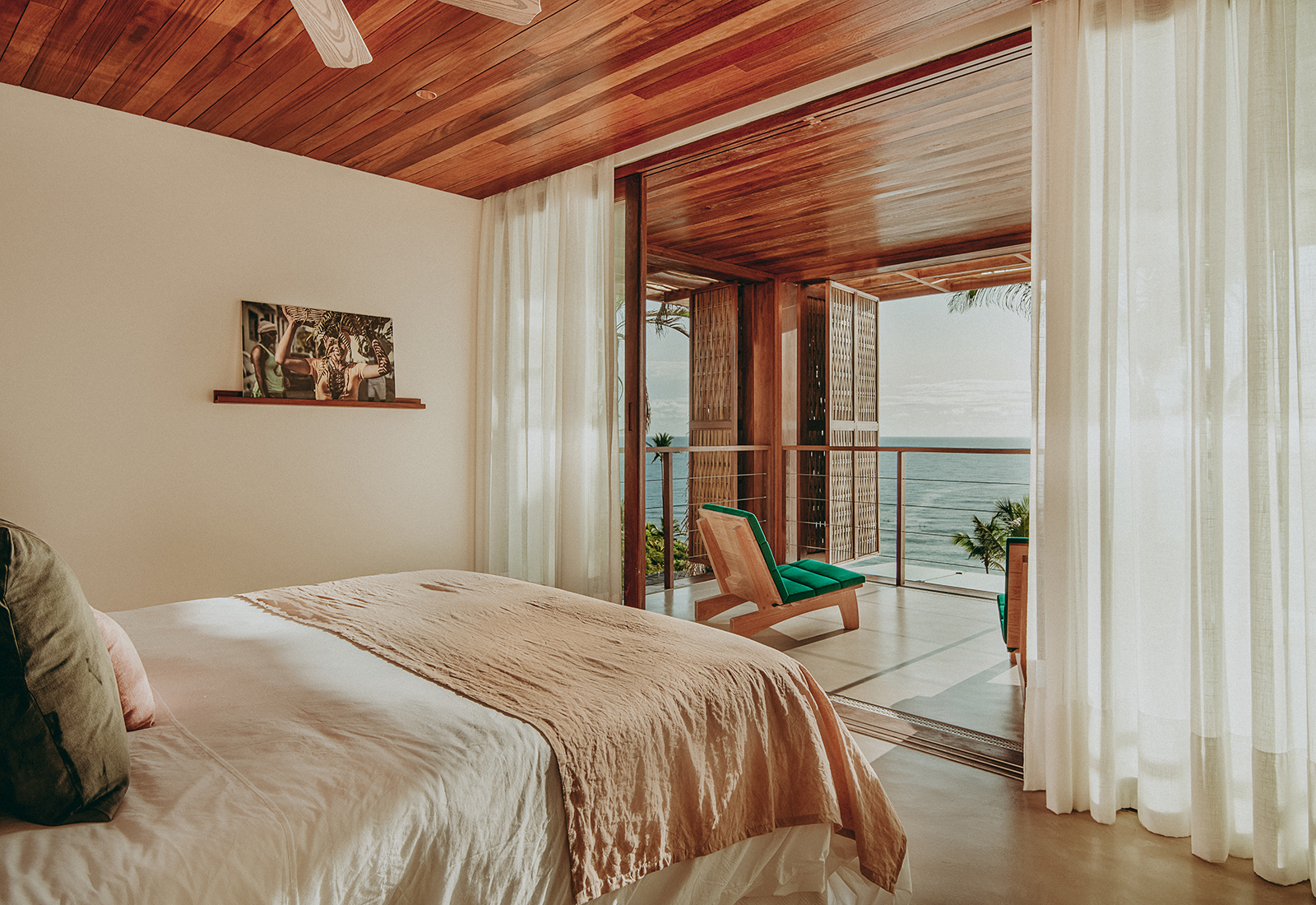 I huvudbyggnaden väntar 17 sviter med rena arkitektoniska linjer, polerade betonggolv, träpanel i taket och möbler skapade av lokala hantverkare. De flesta har privata verandor med utsikt över havet; alla pryds av vita gardiner från golv till tak som fladdrar sensuellt i brisen. Villorna, fristående och generösa, bjuder på extra utrymme, egna kök och privata infinitypooler – perfekta för den som vill ha sitt eget paradis.