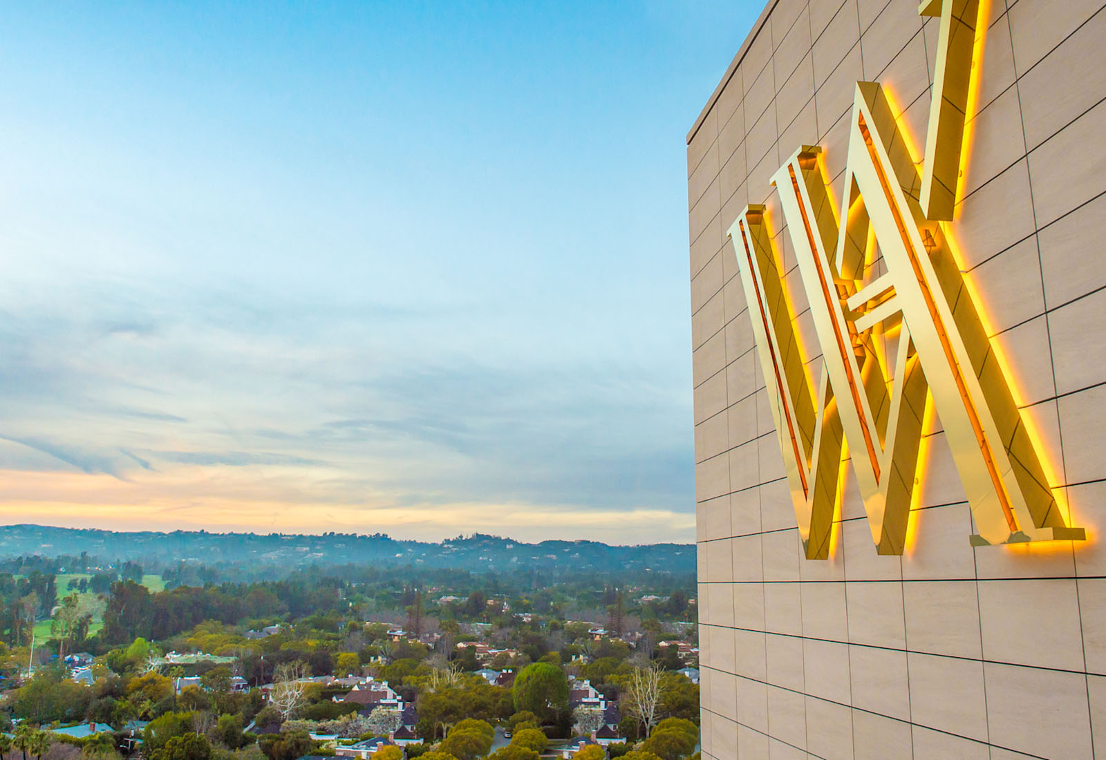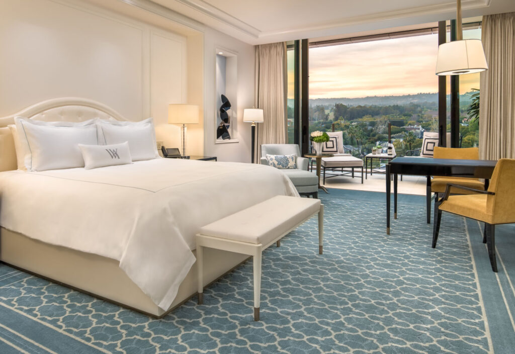 Här finns 170 nybygga boenden – 119 rum och 51 sviter – och samtliga har golv‑till‑tak‑fönster och egna terrasser. Materialpaletten är varm vit sten, rika träslag och italiensk marmor; tekniken är toppmodern så att du styr ljus och miljö med fingertoppskänsla. Storlekarna spänner från ca 537 kvadratfot upp till den 3 215 kvadratfot stora Presidential Penthouse Suite. Balkongen är som din privata “regissörsstol” – perfekt för att insupa solnedgångar över Century City eller smygstudera Rodeo Drives catwalk i verkligheten.