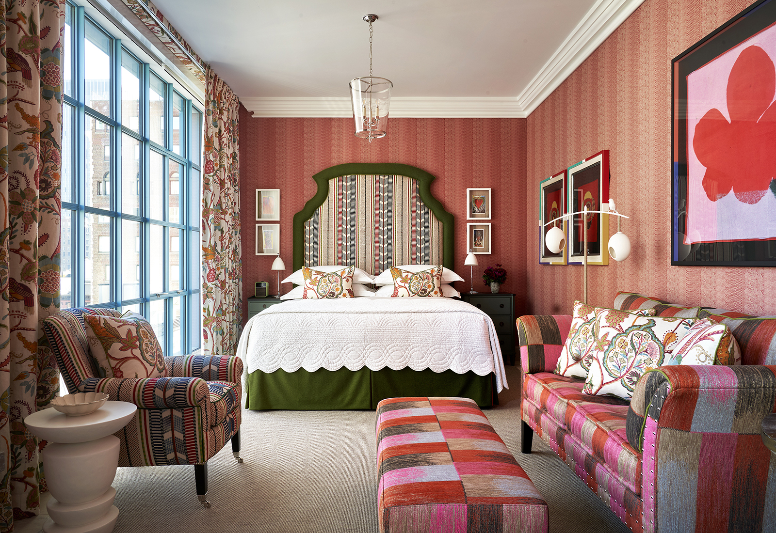 Rummen är ljusa och luftiga med stora panoramafönster som bjuder in både himmel och skyline, medan den lekfulla designen kombinerar klassiska inslag med oväntade detaljer. Saknar du din uteplats hemma, så bokar du såklart en Juniorsvit med terrass.