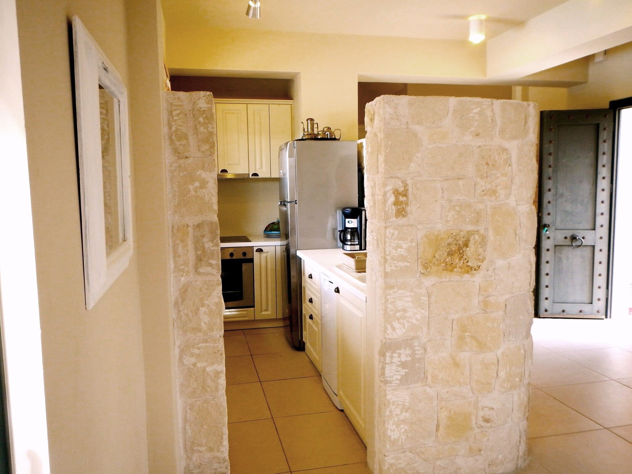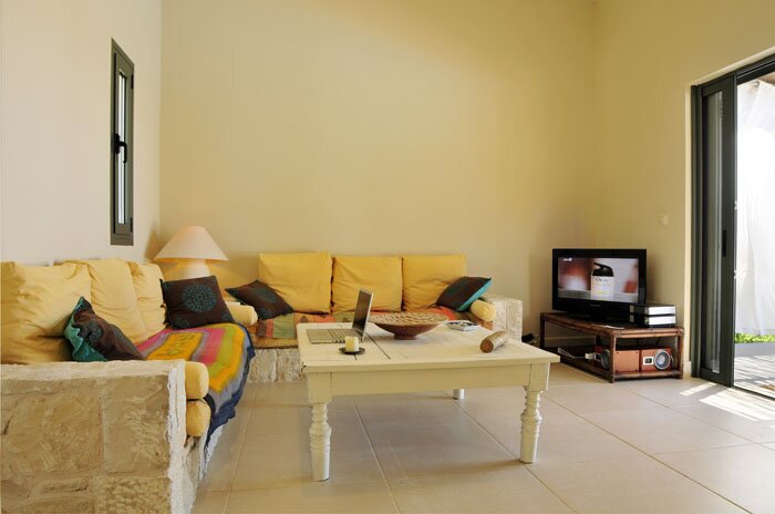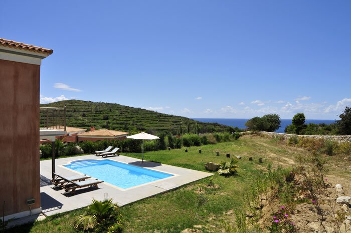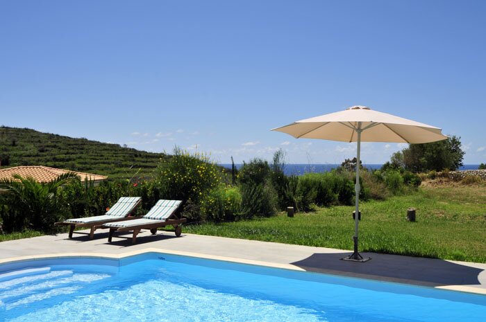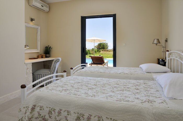 With young palms screening its poolside lawns, a barbecue and shaded terrace for al fresco meals, and probably the best views on the private estate from its elevated setting on the hillside above the sea, this airy villa is ideal for a holiday of pure relaxation. Just 450 metres from the lovely cove on Paliolinos bay, a walk downhill from the property, and 2km from the sands and village tavernas of Spartia, its peaceful country setting is reflected in comfortably casual décor, uncluttered but sprinkled with personal touches and character features in local stone.