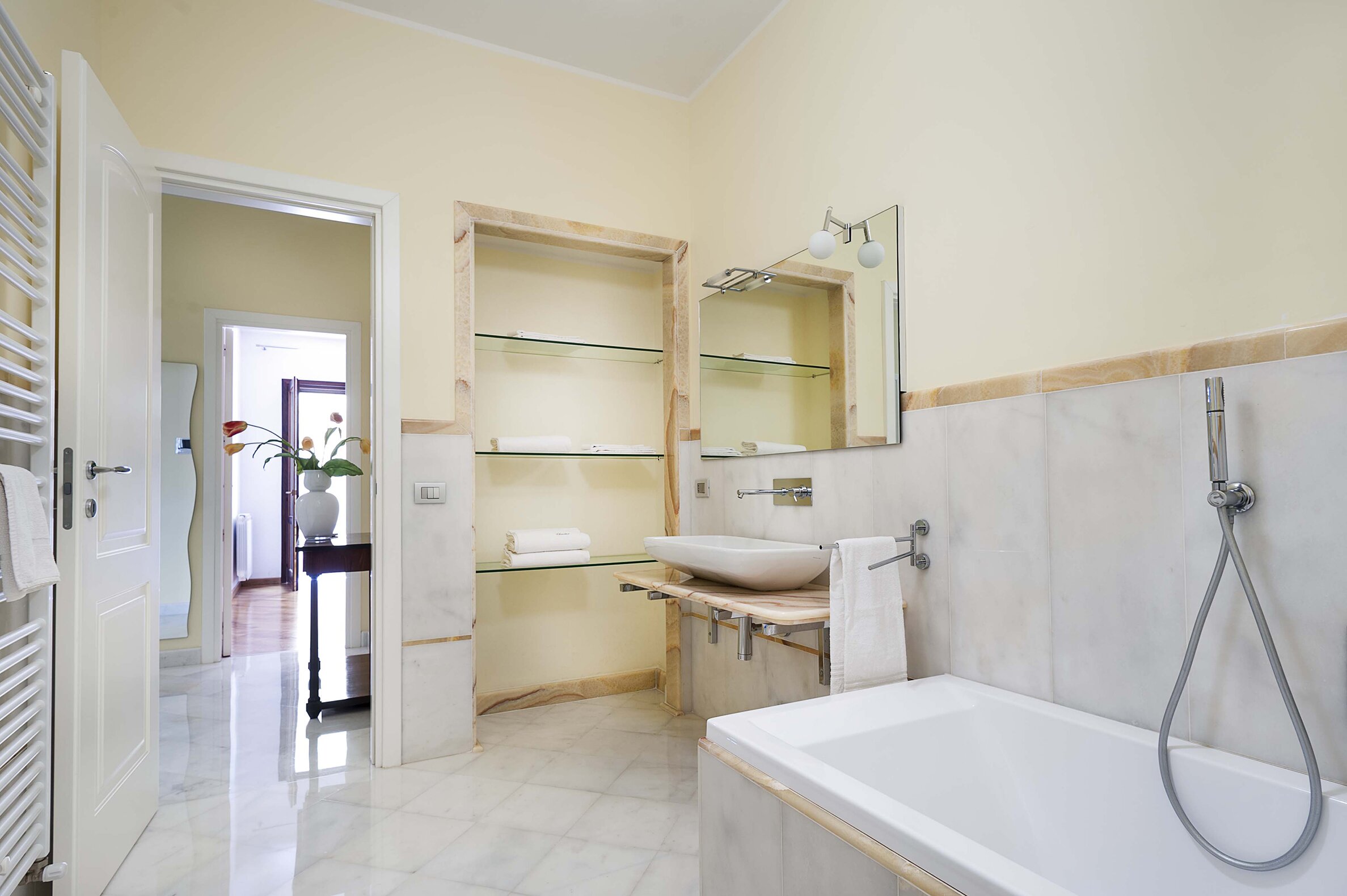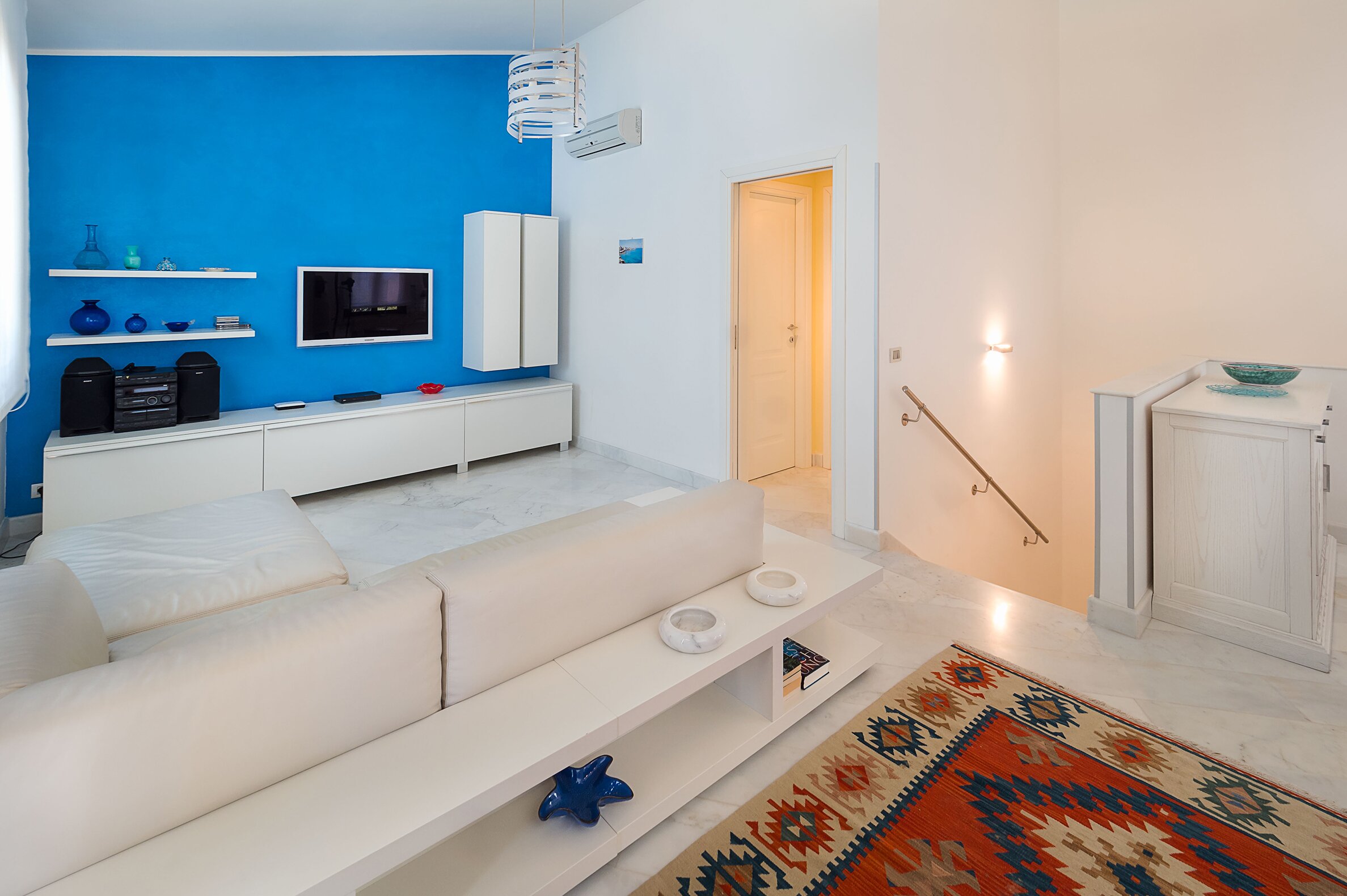 This superbly located villa is just a 200m walk away from a beautiful sandy beach and nearby restaurant, while further local restaurants and shops are a short drive away in charming Custonaci. Inside the villa is bright and airy, with cool marble floors and pops of colour in feature walls and chic soft furnishings. The living space is large and open plan, with a comfortable corner sofa and large screen TV, while the fully-equipped kitchen also has space for dining indoors should guests desire. On the lower ground floor there are three spacious bedrooms, plus one bathroom and shower room at this level and a shower room the ground floor.
