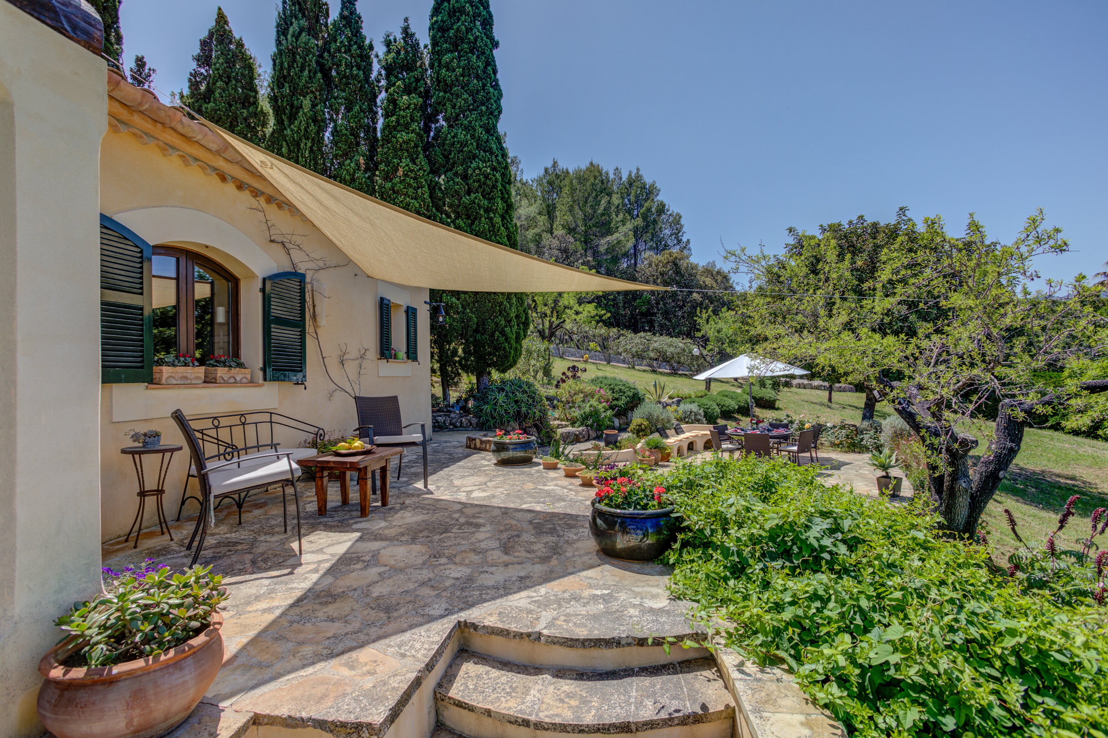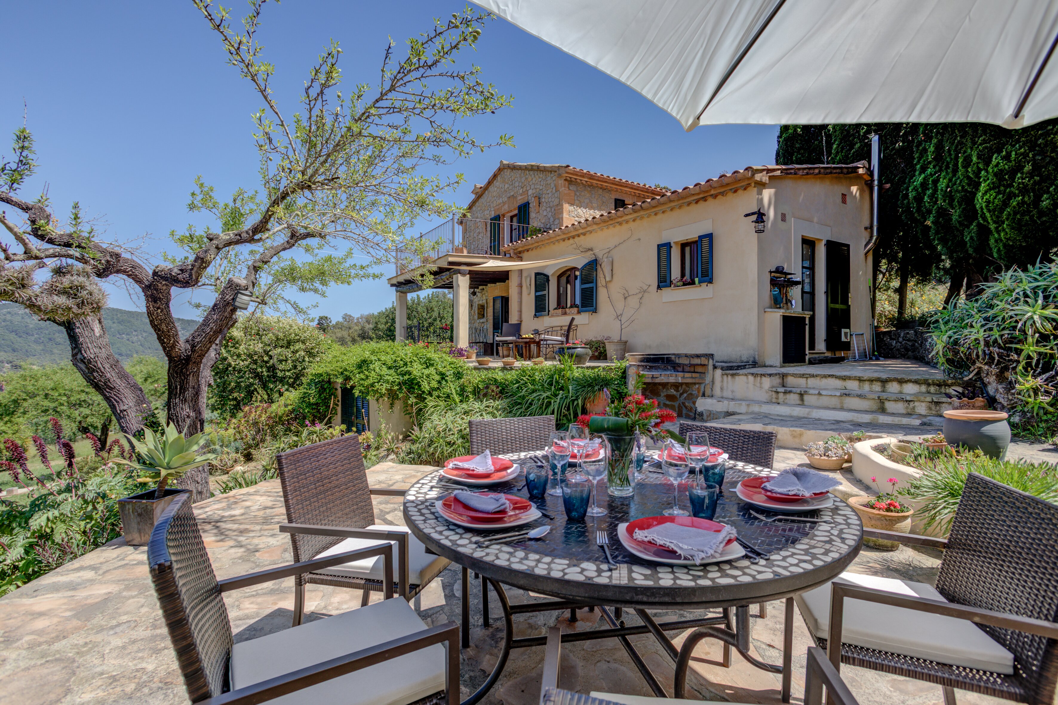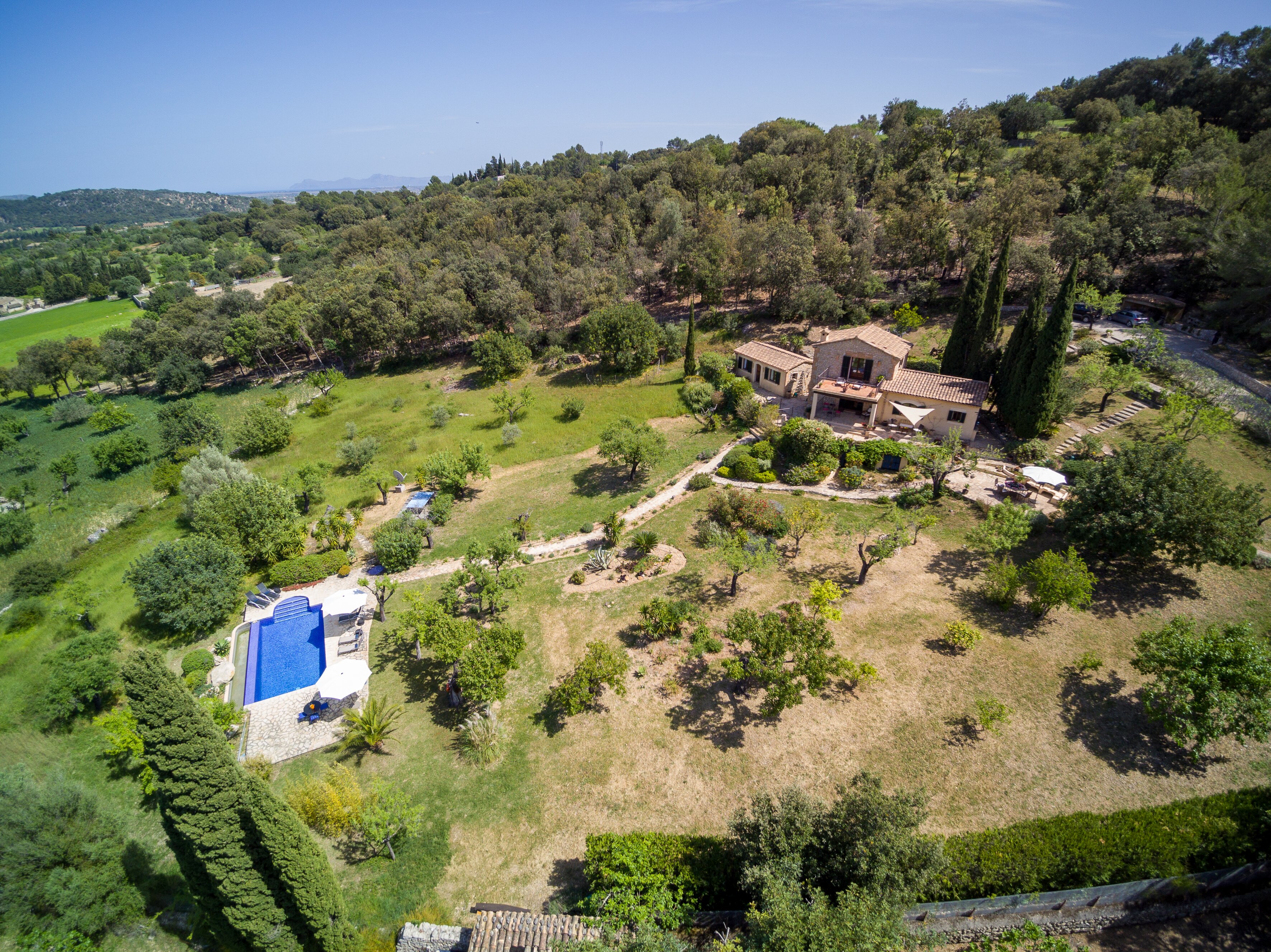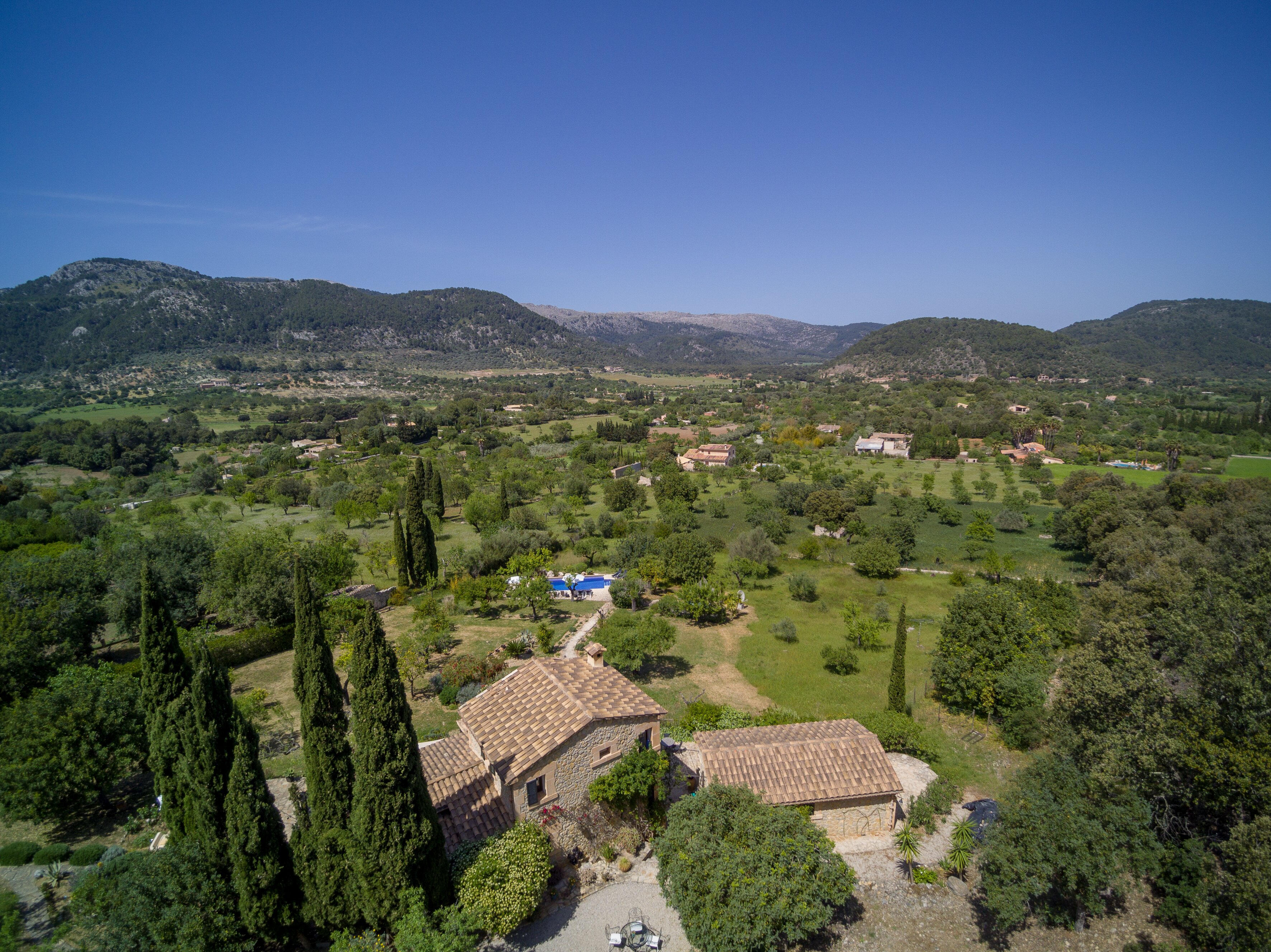 A romantic retreat for two, or a comfortable family villa, this secluded finca is a fine choice either way. Set in extensive gardens with superb views, and just 1 km from Campanet.