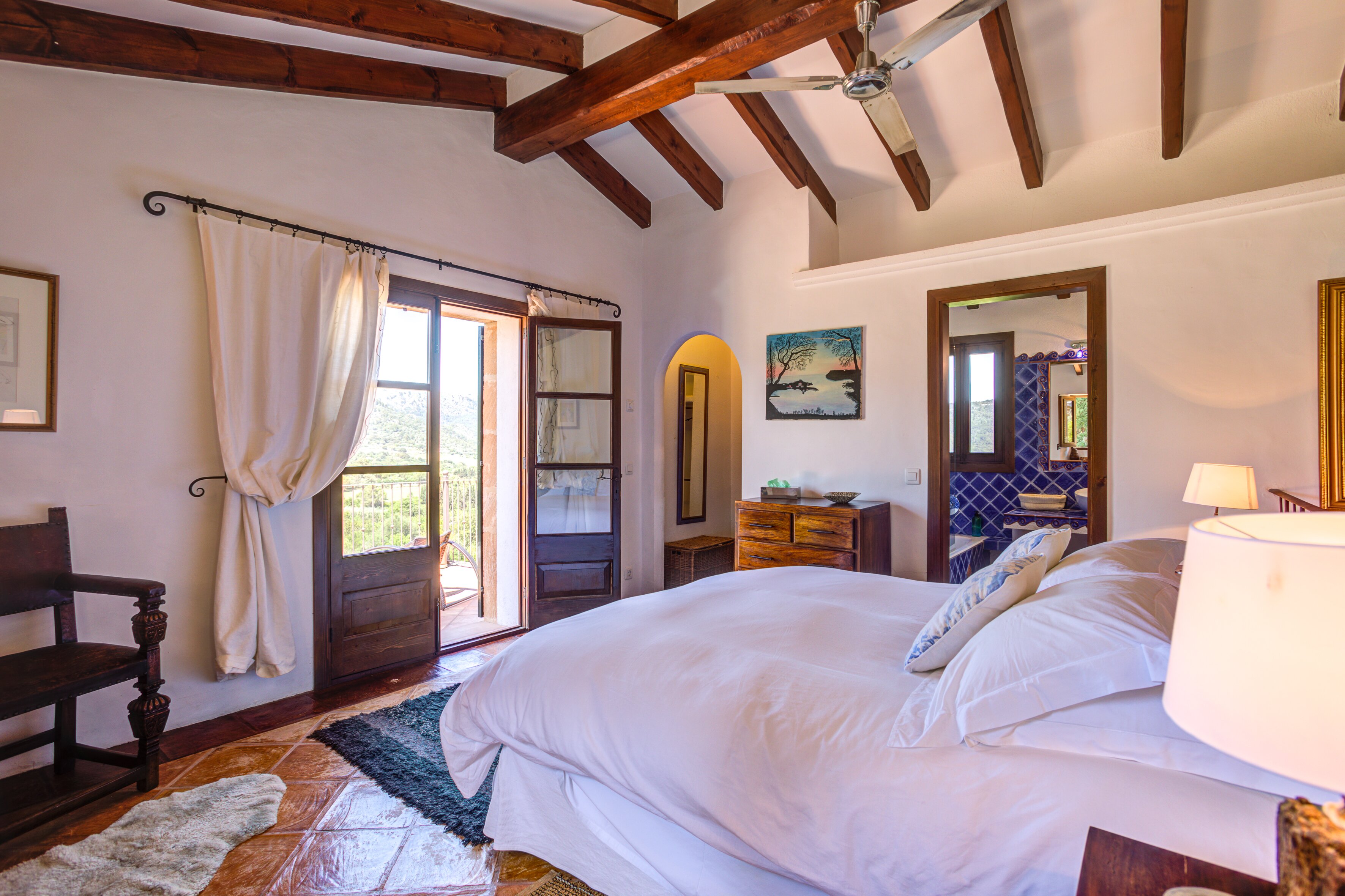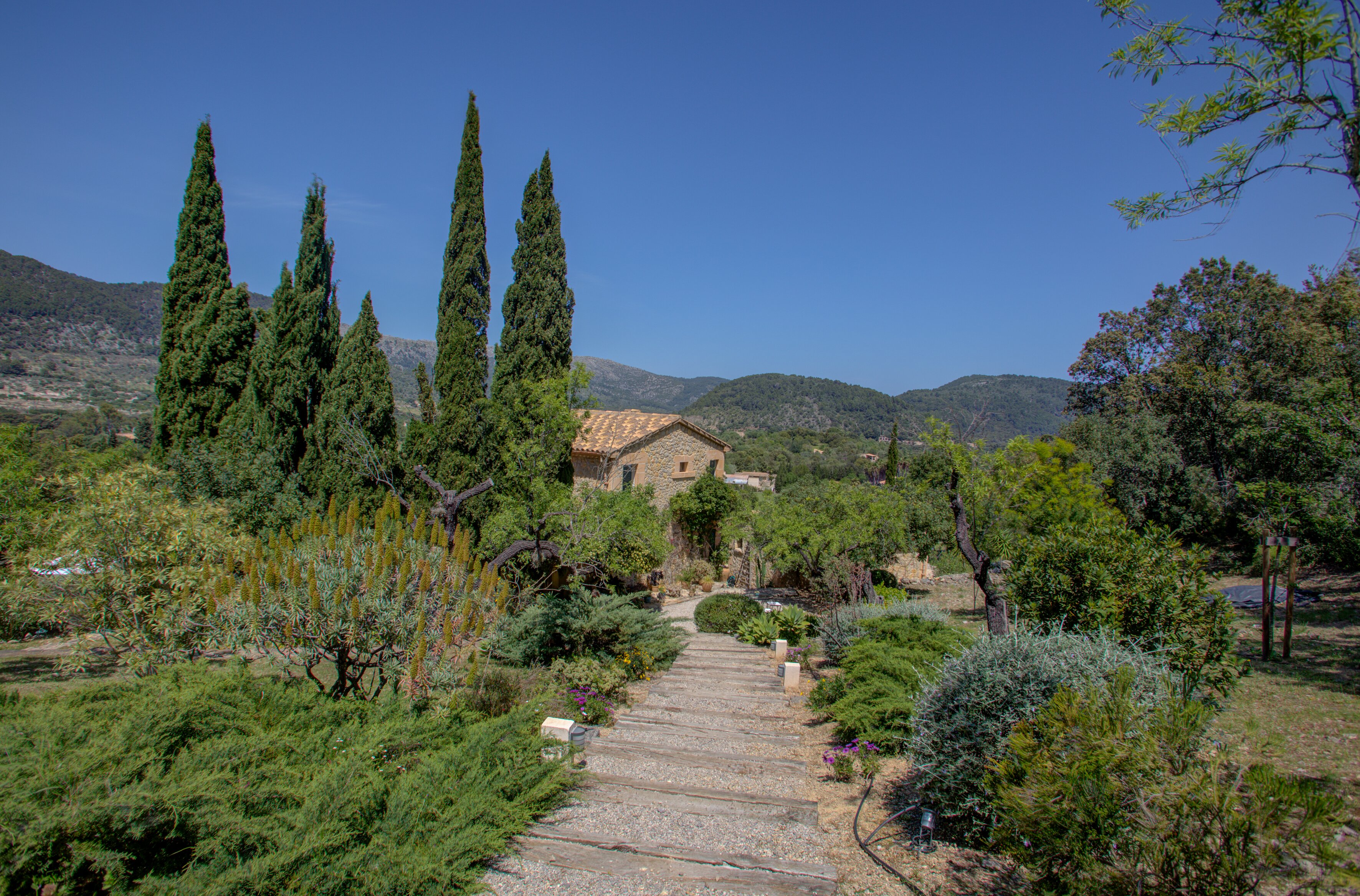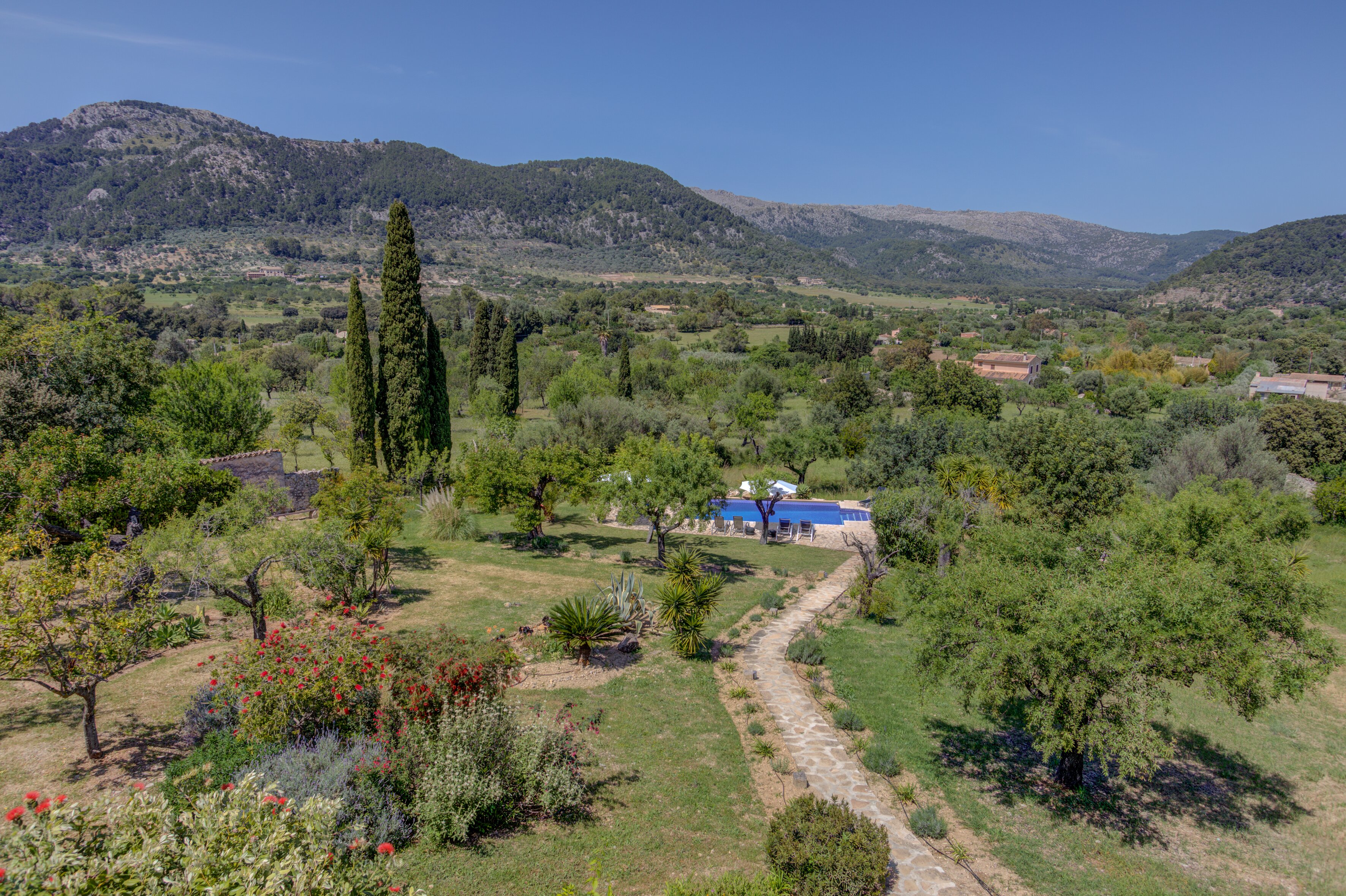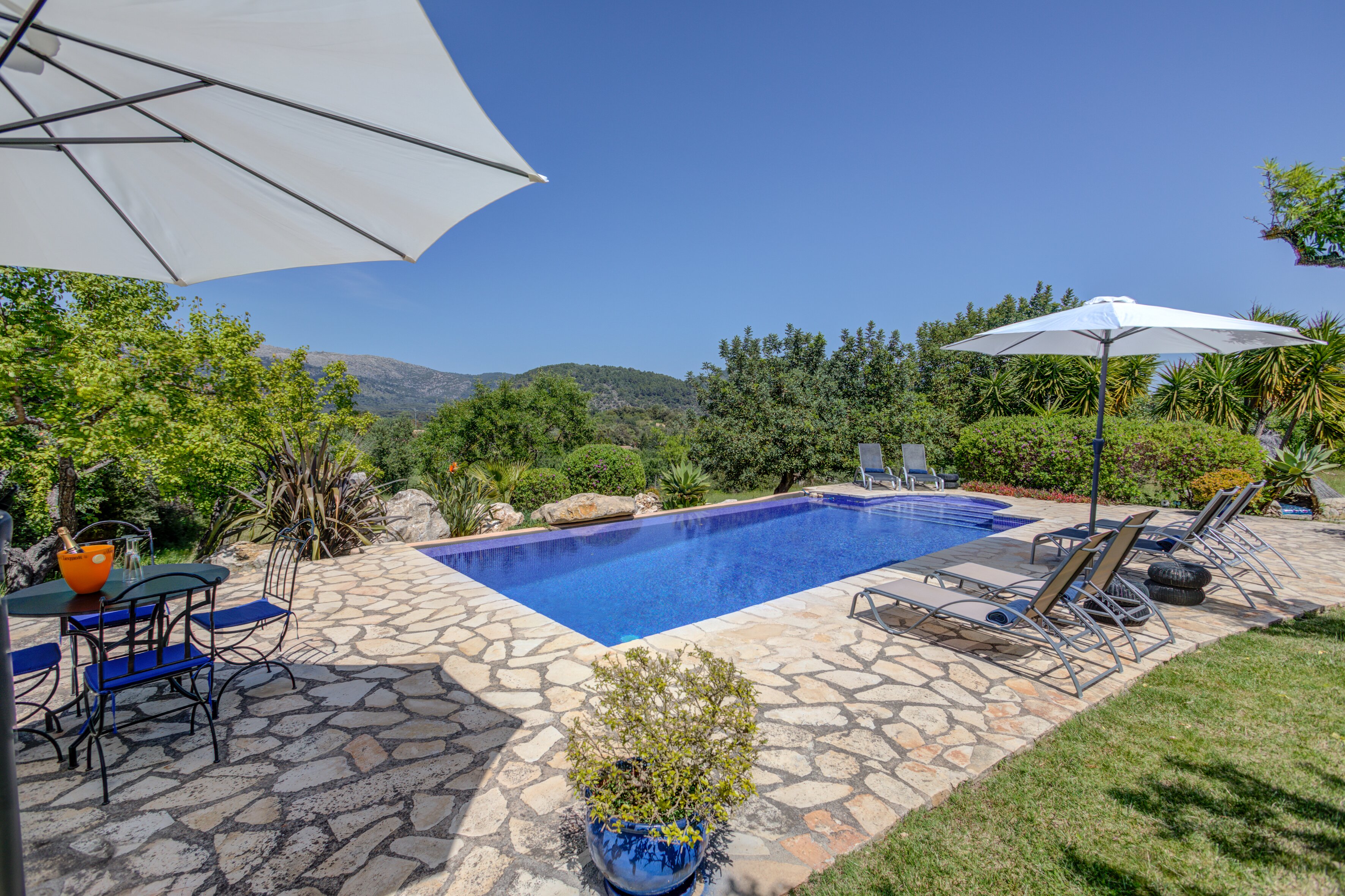 A romantic retreat for two, or a comfortable family villa, this secluded finca is a fine choice either way. Set in extensive gardens with superb views, and just 1 km from Campanet.