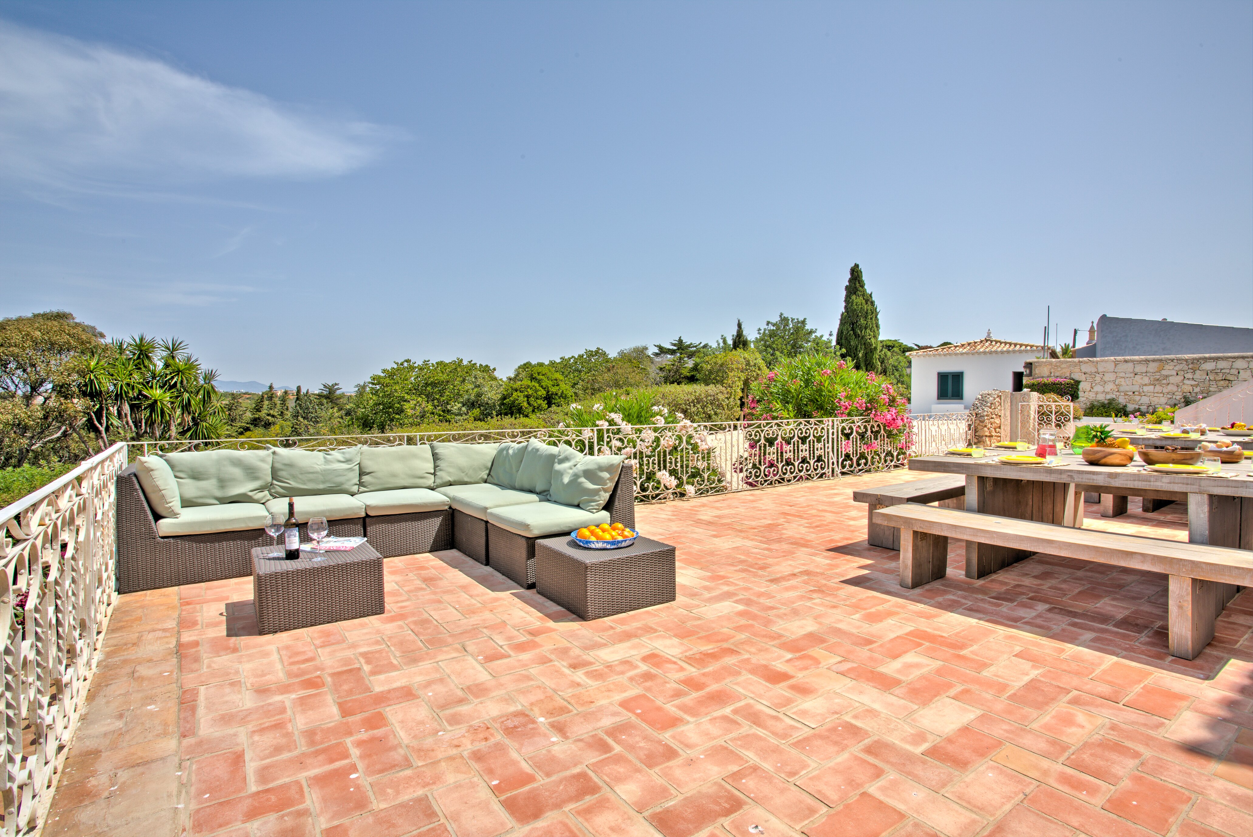 Recent additions include additional soft seating and built-in seating on the main terrace in addition to the existing tables and chairs. The beach with a selection of simple beach restaurants in season, is accessed by steps directly below the property or via a more gentle pathway through the gardens and a gate. Although the property feels very separate and private, it is actually just 1km from the quiet charming fishing village of Ferragudo and 6km from busy Portimao with good shopping and all facilities. We strongly recommend a walk along the beach to the small restaurants quayside where you can get delicious grilled fresh fish. Golf, tennis and water sports and horse riding are all a very short drive away. There are further renowned restaurants within a short drive. A superb choice for an informal family holiday or special celebration.