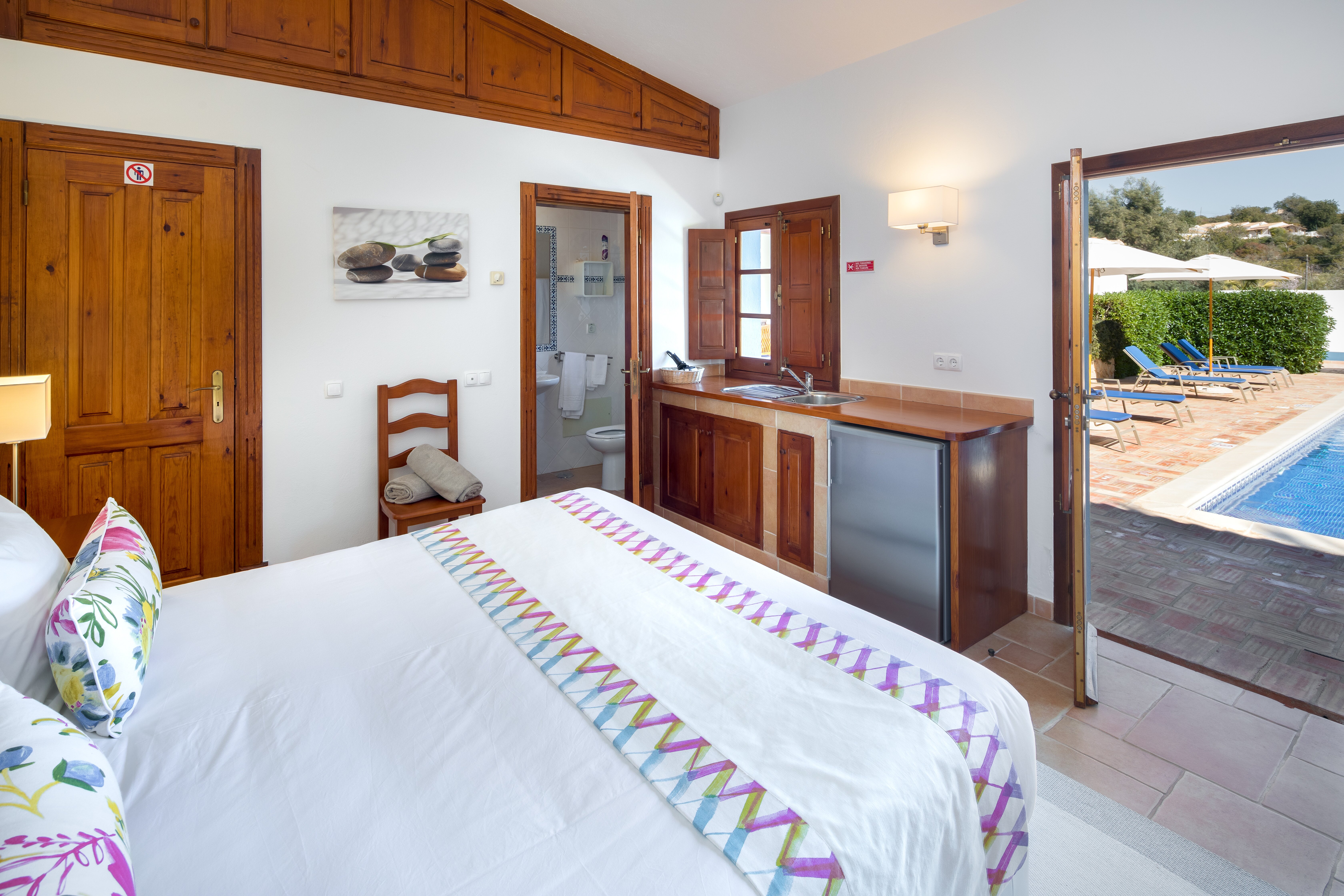 Master double bedroom with bathroom and separate shower en suite opening to terraceAnnex