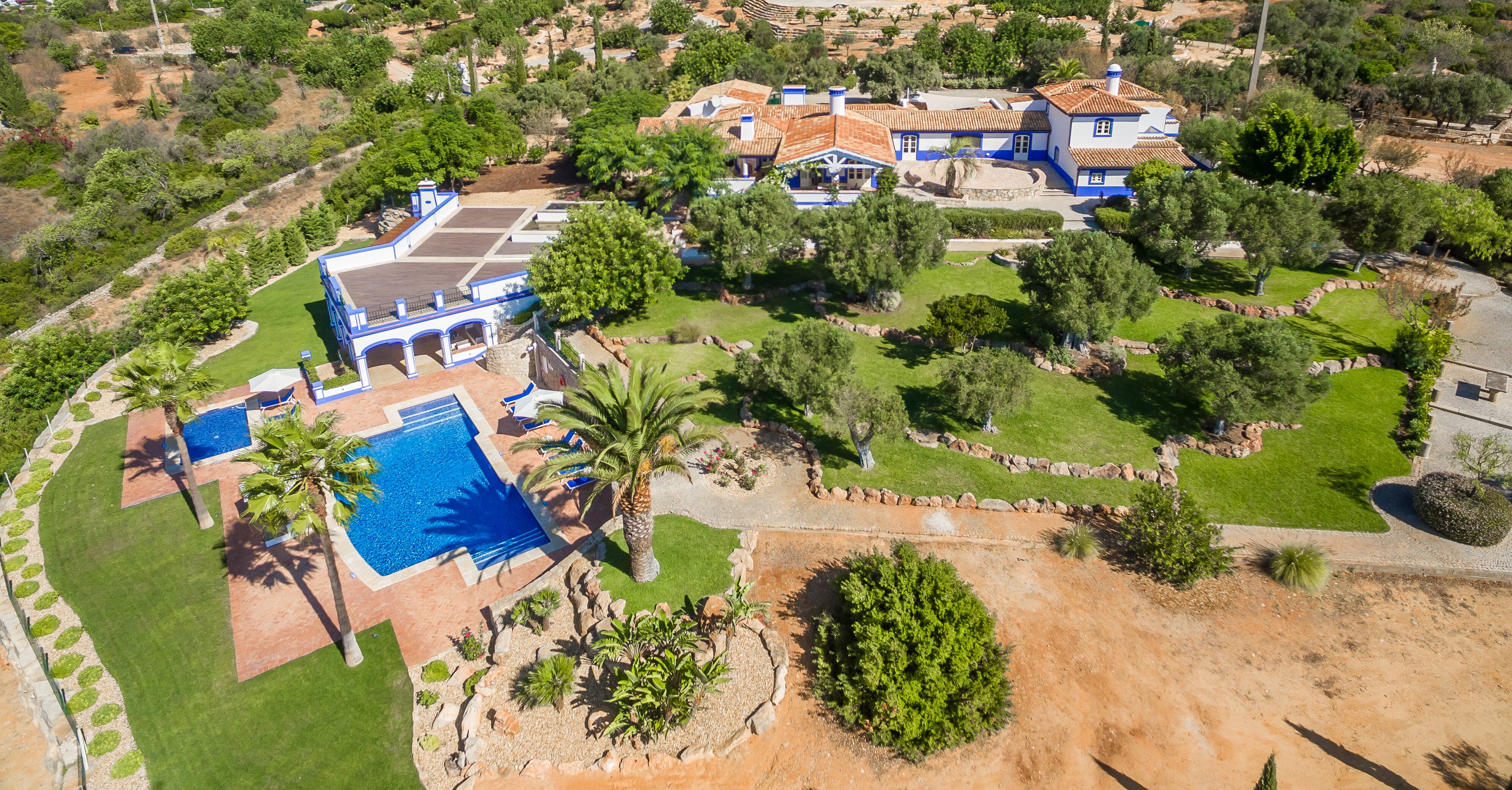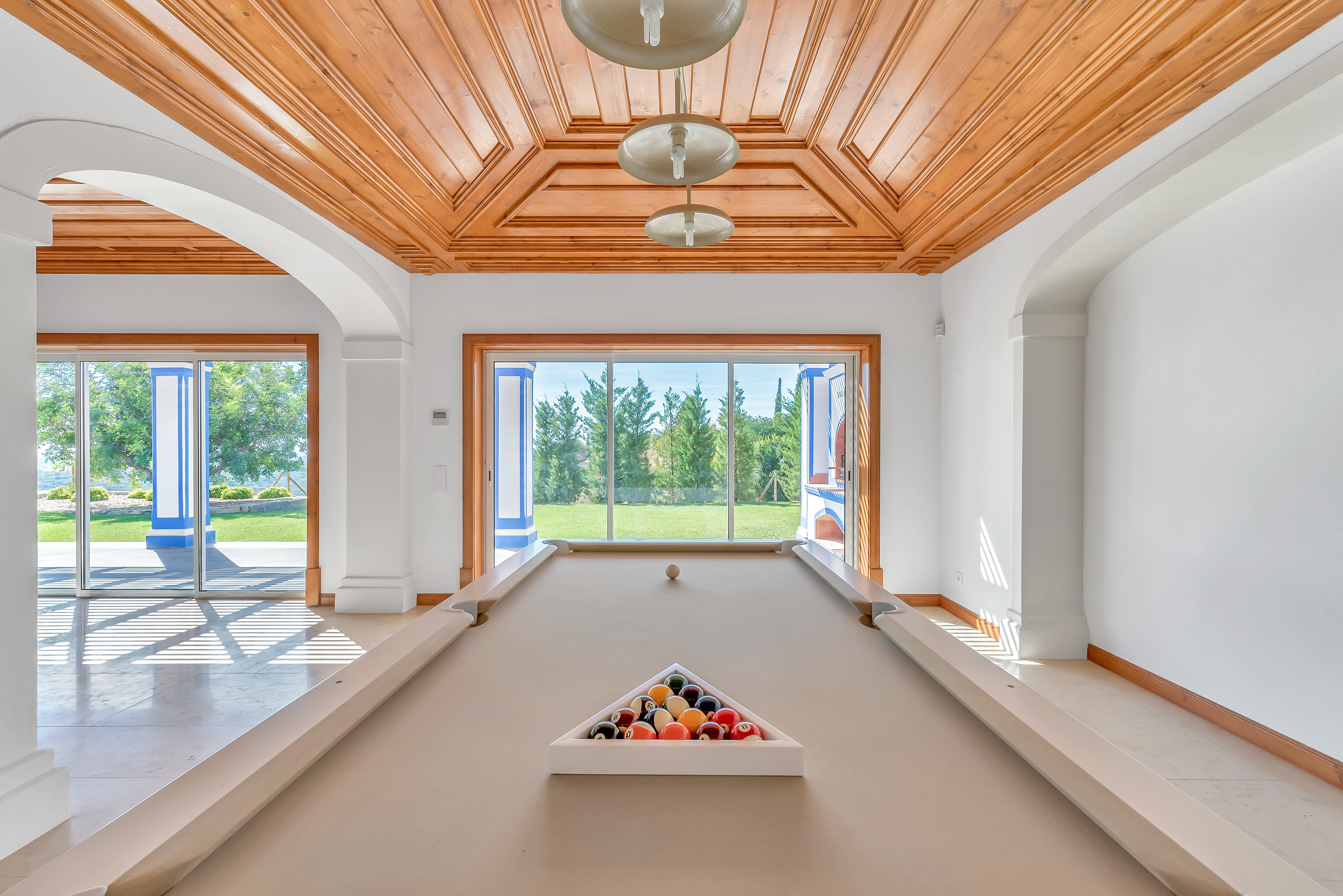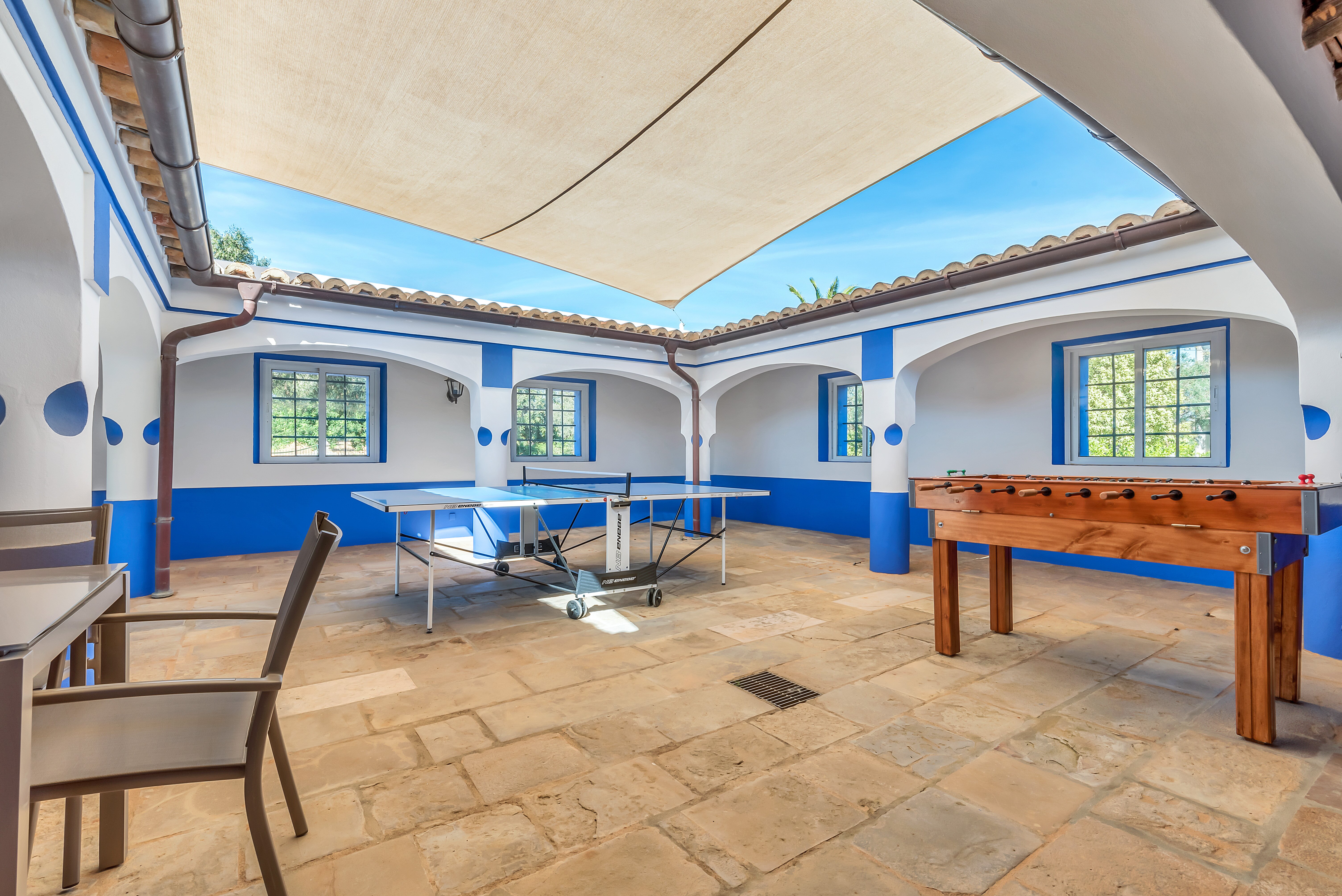 The ground floor opens out to a partially covered courtyard with table football and table tennis, a fun spot for keeping cool in the midday heat. Steps lead to terraced gardens dotted with trees providing ample shade and down to the pool patio edged with flat lawns. Perfectly designed to make the most of the panoramic countryside views, here you’ll find a large private pool and a separate kids’ pool, as well as a pool house with a living/dining area, pool table, shower and barbeque. Casa Malhao is just a 16km drive from the beaches, shops, restaurants and nightlife of Vilamoura and Albufeira, while Boliqueime is only 4km away.
