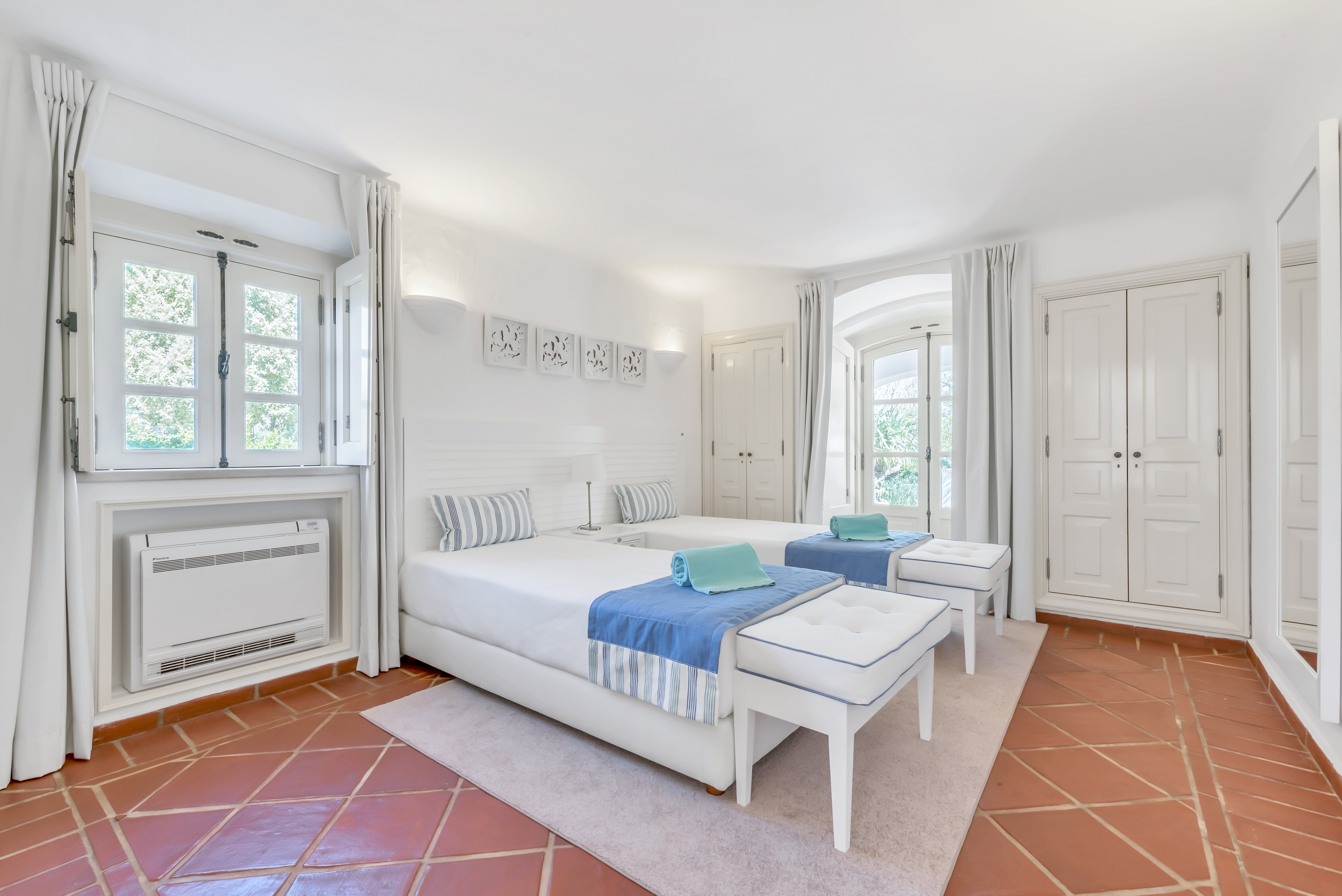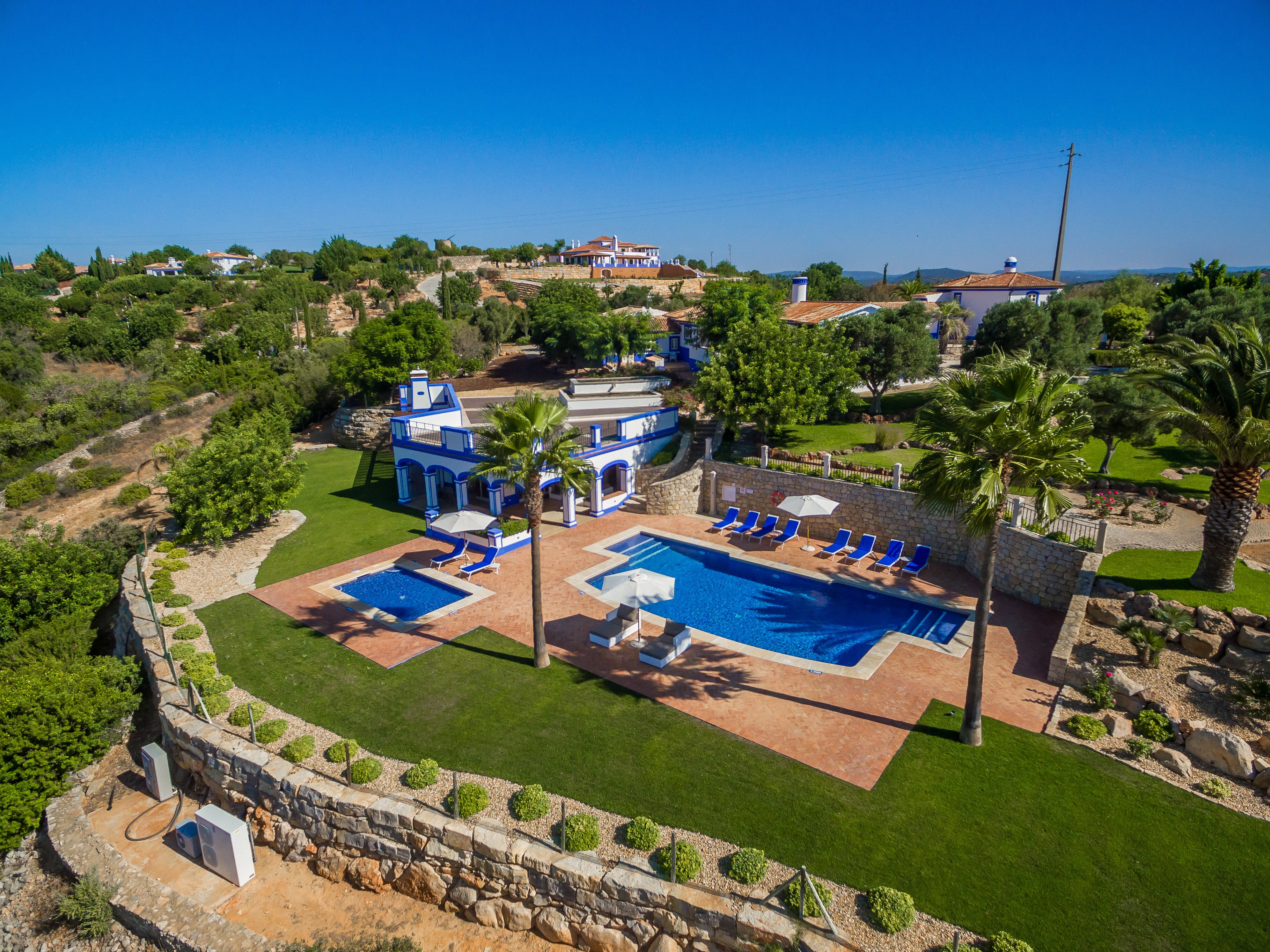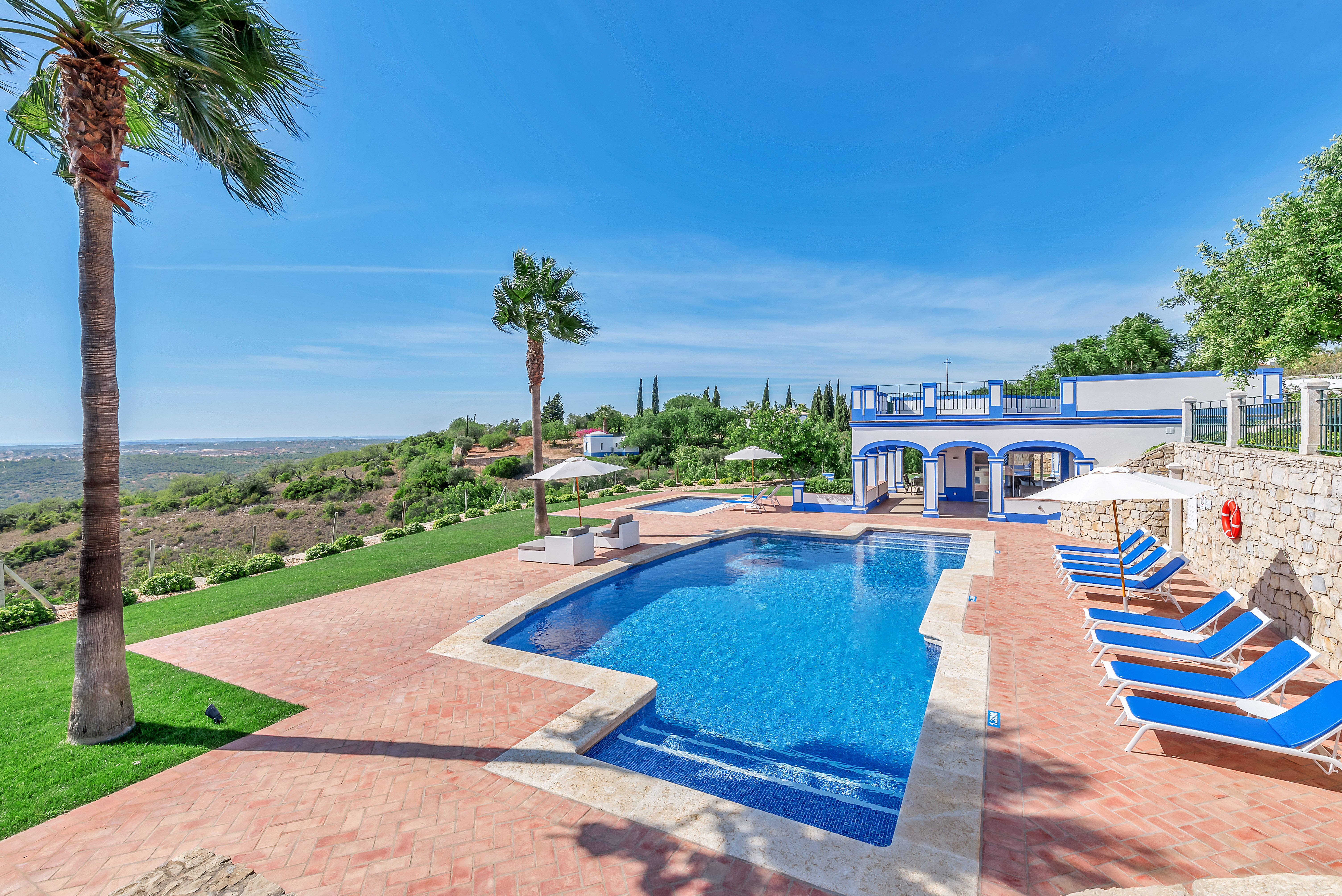 The ground floor opens out to a partially covered courtyard with table football and table tennis, a fun spot for keeping cool in the midday heat. Steps lead to terraced gardens dotted with trees providing ample shade and down to the pool patio edged with flat lawns. Perfectly designed to make the most of the panoramic countryside views, here you’ll find a large private pool and a separate kids’ pool, as well as a pool house with a living/dining area, pool table, shower and barbeque. Casa Malhao is just a 16km drive from the beaches, shops, restaurants and nightlife of Vilamoura and Albufeira, while Boliqueime is only 4km away.