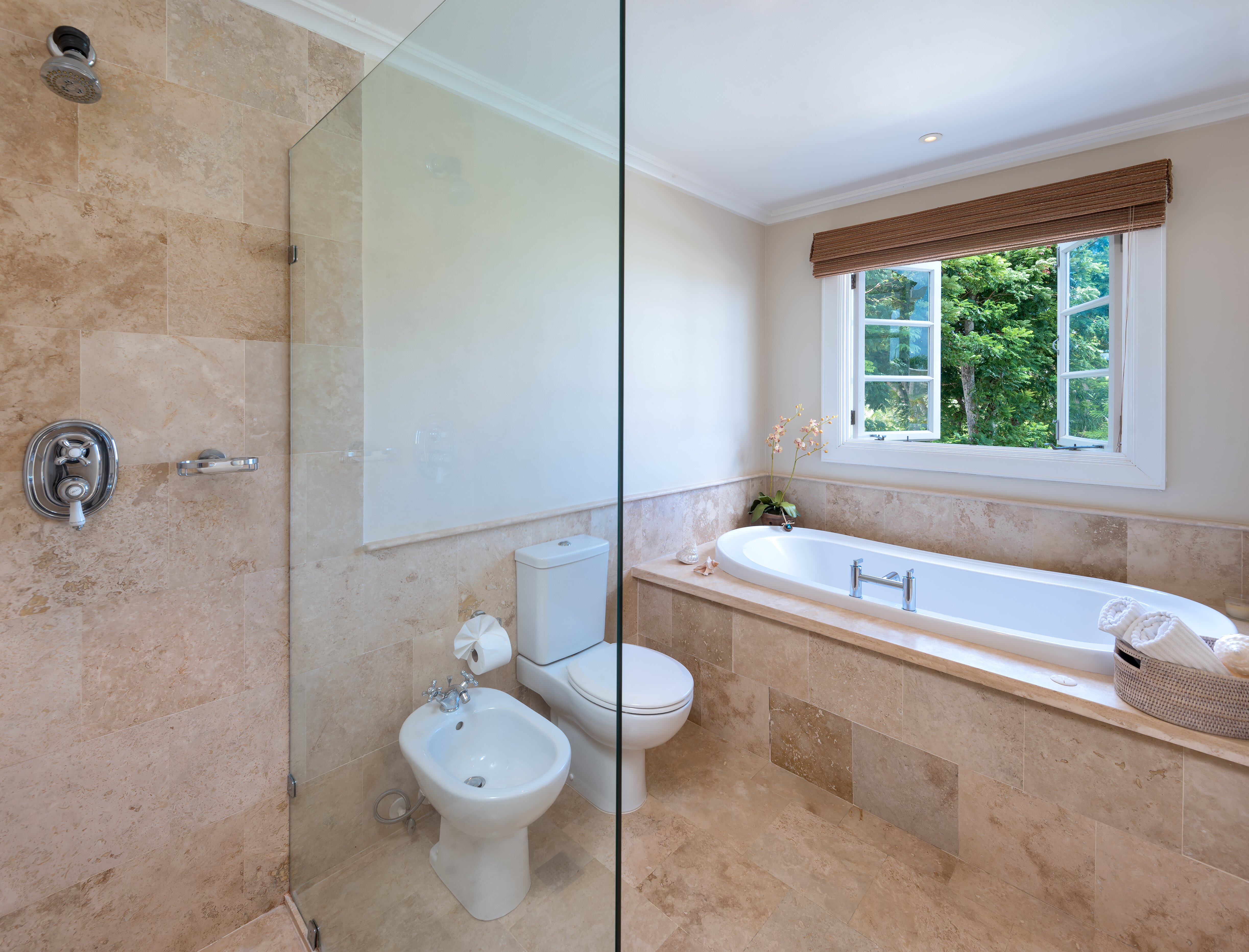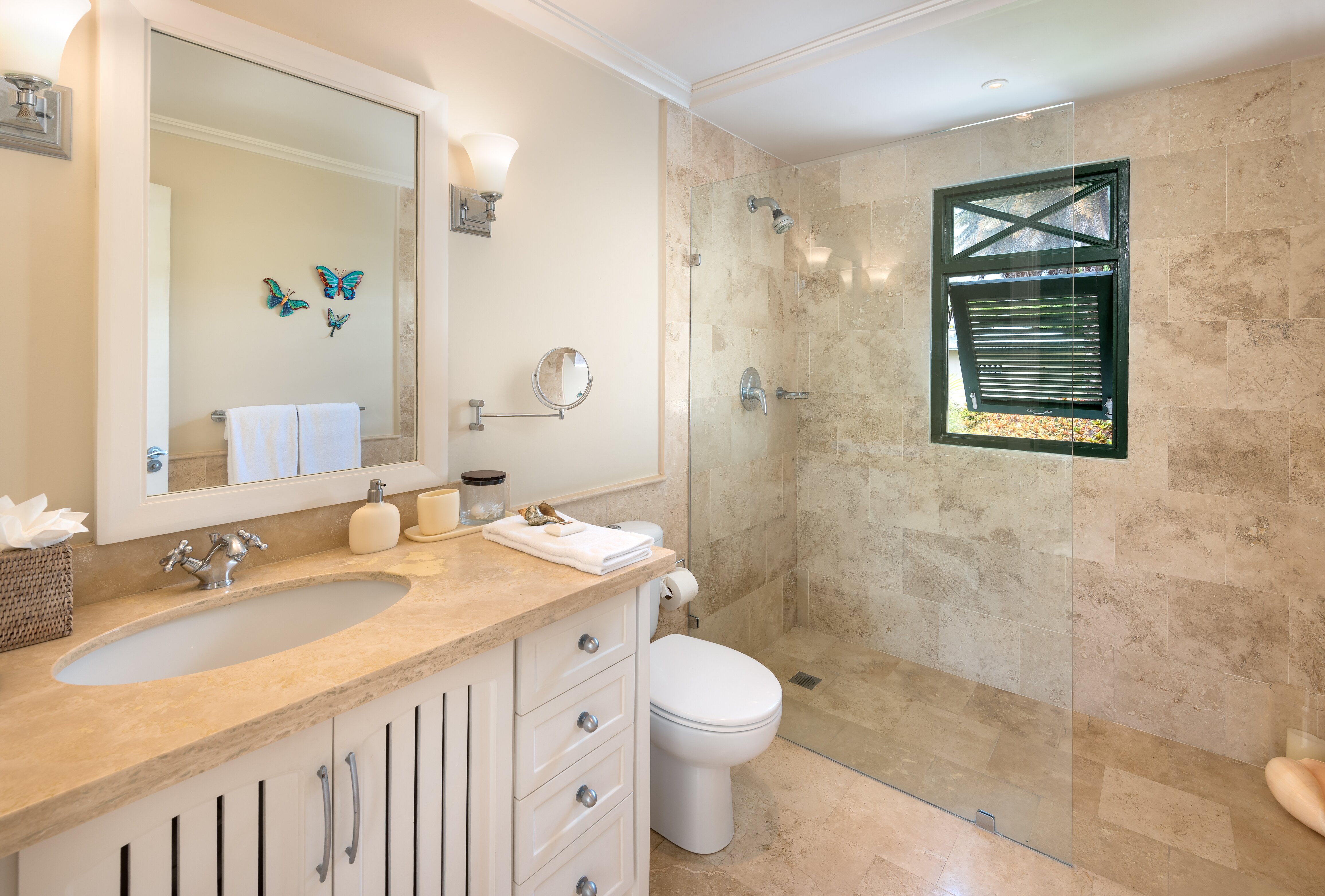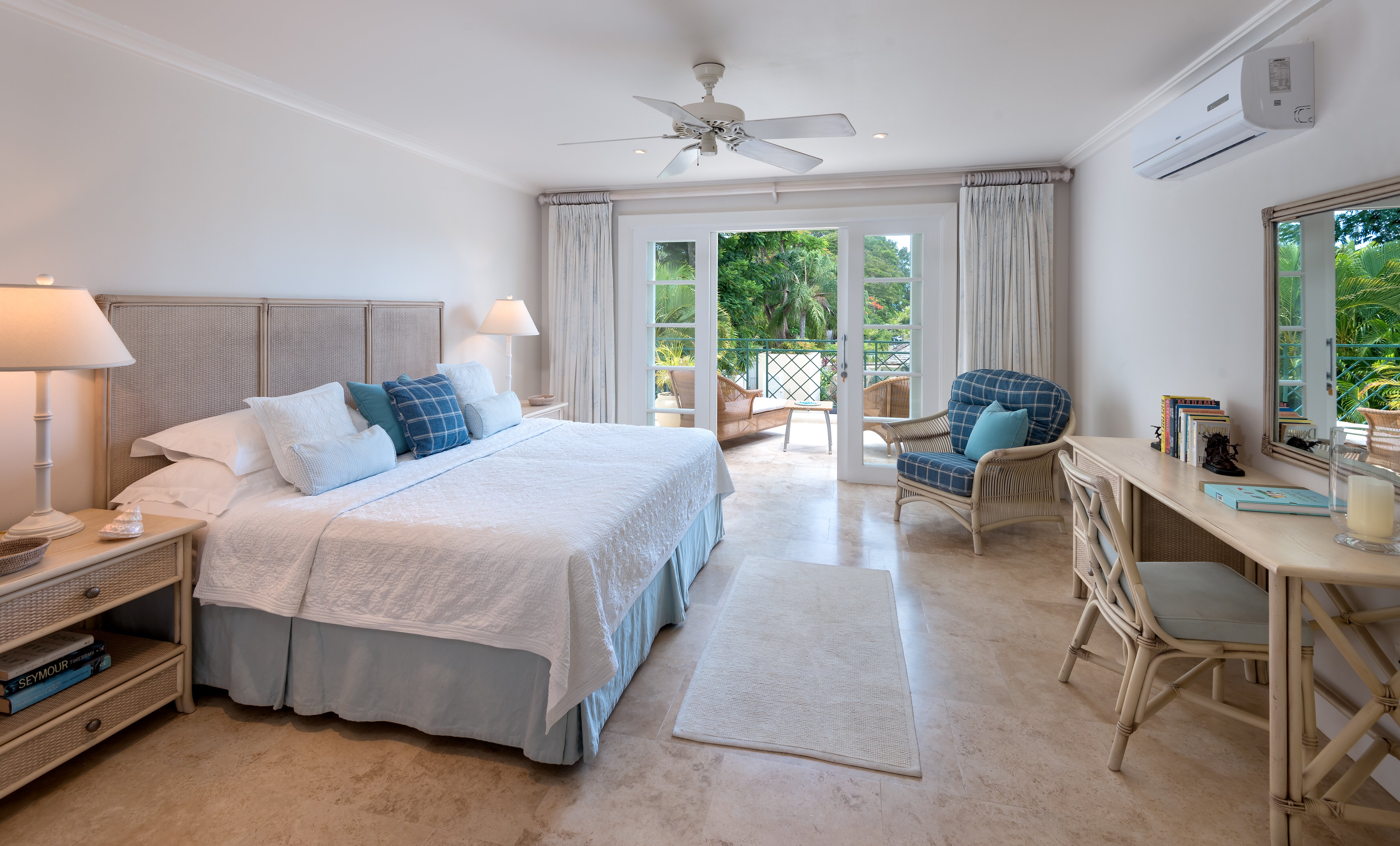 Completed to the highest standard with many coral stone features the house incorporates; air conditioning throughout, and a superbly equipped Miele kitchen with granite countertops. Coconut Bay has been interior designed to the highest standard by the award winning Jenny Blanc Interiors. The house has an airy tropical feel and exudes charm and sophistication. The spacious terrace and nearby trees provide plenty of shade. Three of the bedrooms have terraces overlooking the pool area.