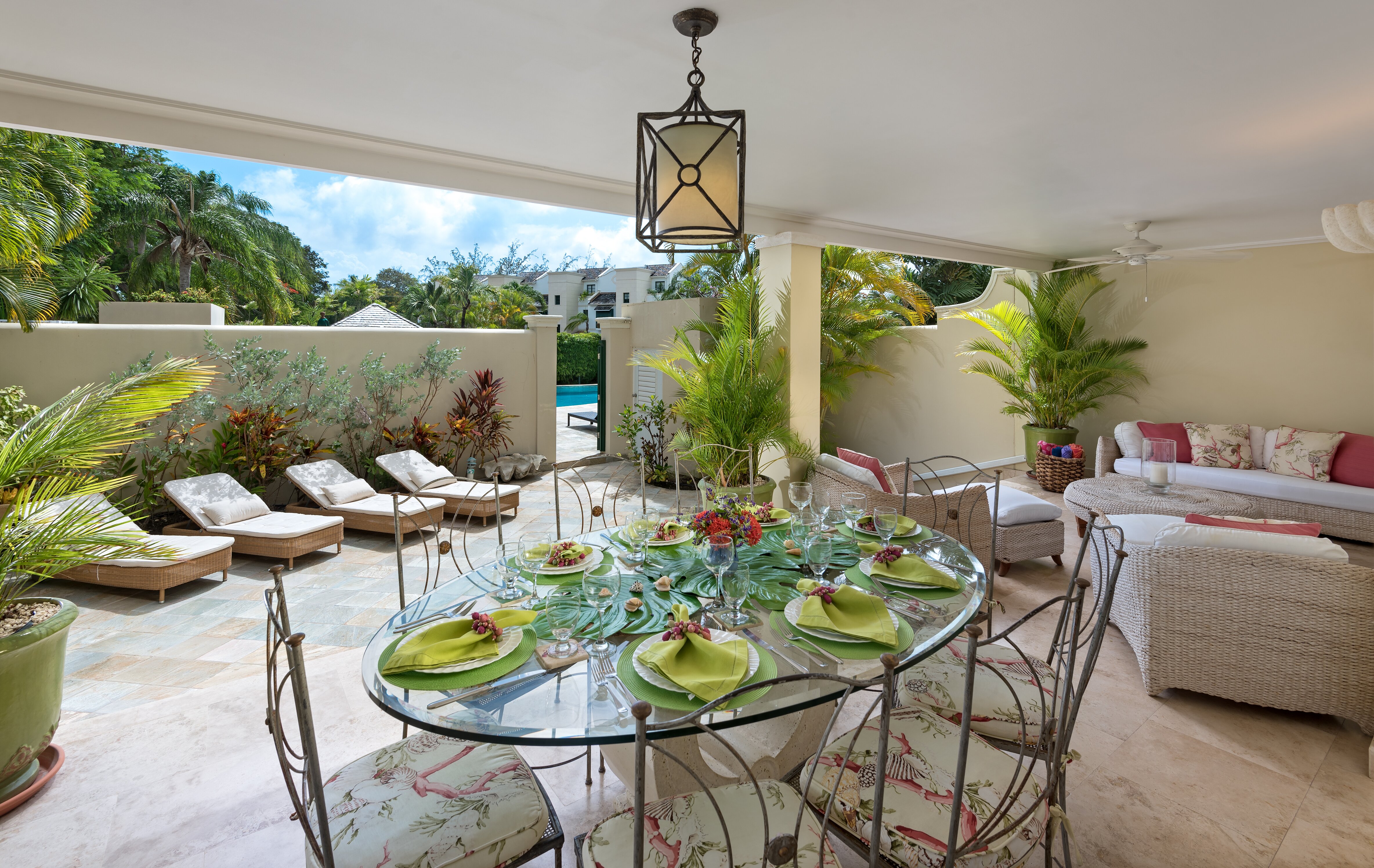 The large outdoor terrace comprises a dining and seating area ideal for entertaining. The garden leads out to a large communal free form swimming pool with cascading waterfall. A short stroll takes you down to the Royal Westmoreland beach club and restaurant which is yours to enjoy throughout your stay, the new Sea Shed restaurant and a convenience store. Membership of Sugar Hill is also included. A 10 minute drive takes you to this wonderful development with fantastic views. You will have access to complimentary tennis and the use of an infinity pool. Restaurant and bar available. World class golf is also available locally at Royal Westmoreland and Sandy Lane.