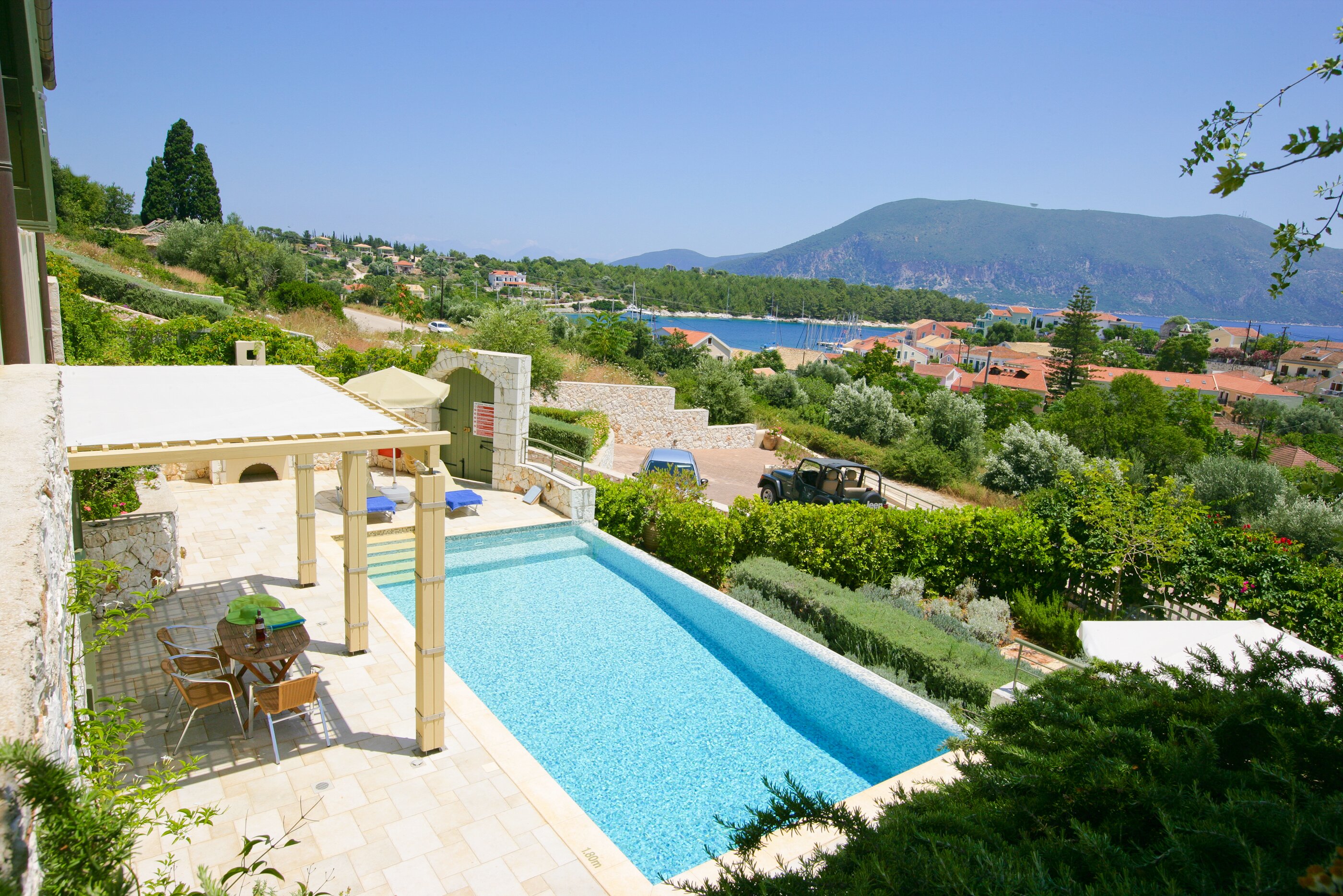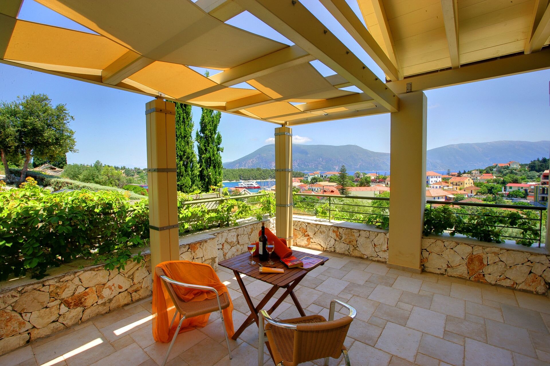 In an ideal spot on the outskirts of Fiscardo, Delia is a short walk from the thriving waterfront restaurants, cafes and shops of Fiscardo.
