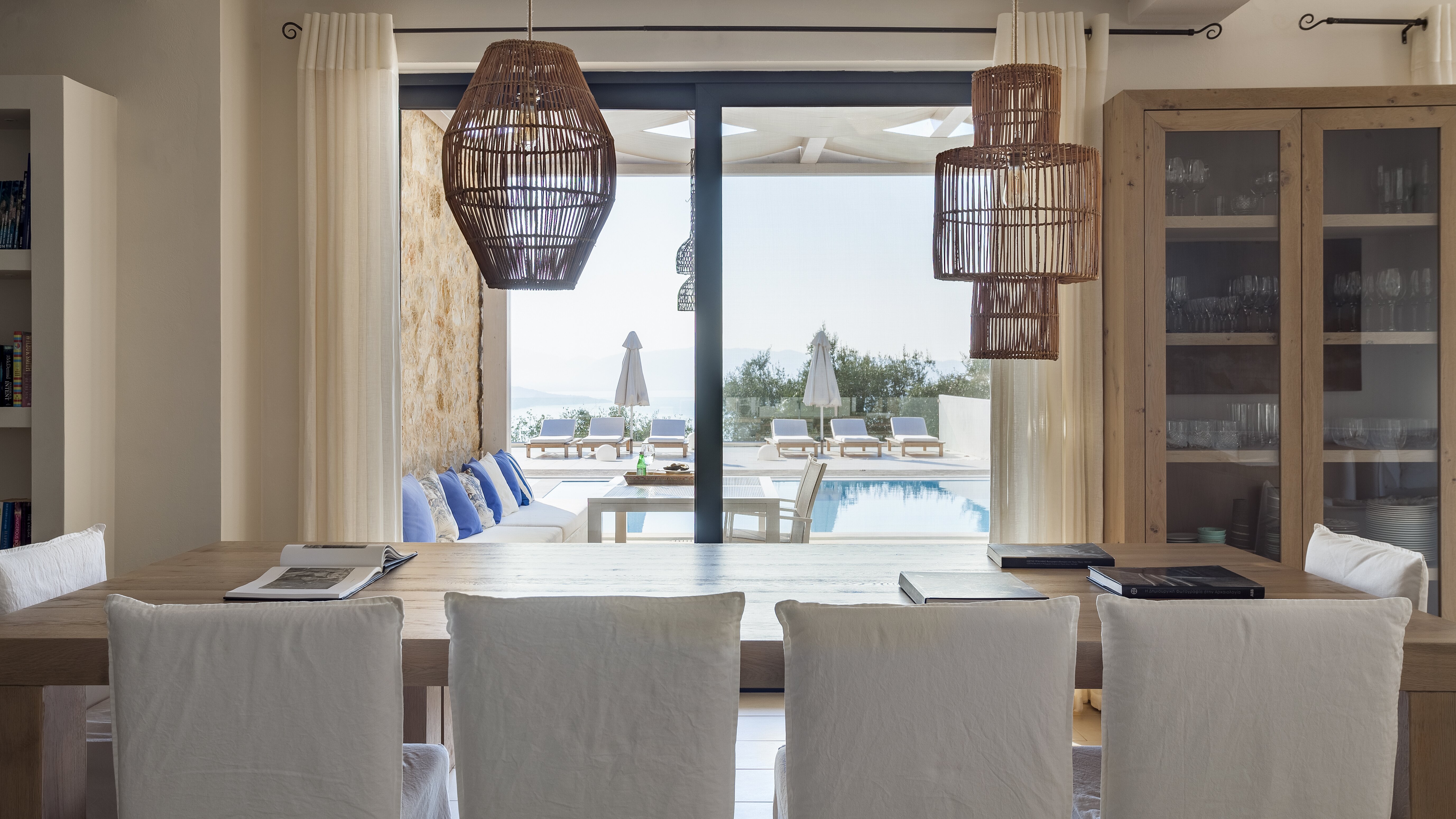 A fabulous choice for a group of friends, this very contemporary villa is smartly furnished in neutral colours with an air of uncluttered simplicity. The villa has three double and three twin bedrooms, the master suite complete with a two-person hydro-massage bath. The spacious living/dining room incorporates an island-style kitchen, and opens out to al fresco sitting and dining areas on a shaded veranda overlooking the ten metre pool. And with loungers on the poolside terrace, cushioned cane seating on the timber sundeck, a well-equipped barbecue area and a dining pergola elevated to enjoy the views, outdoor living is very comfortably catered for.