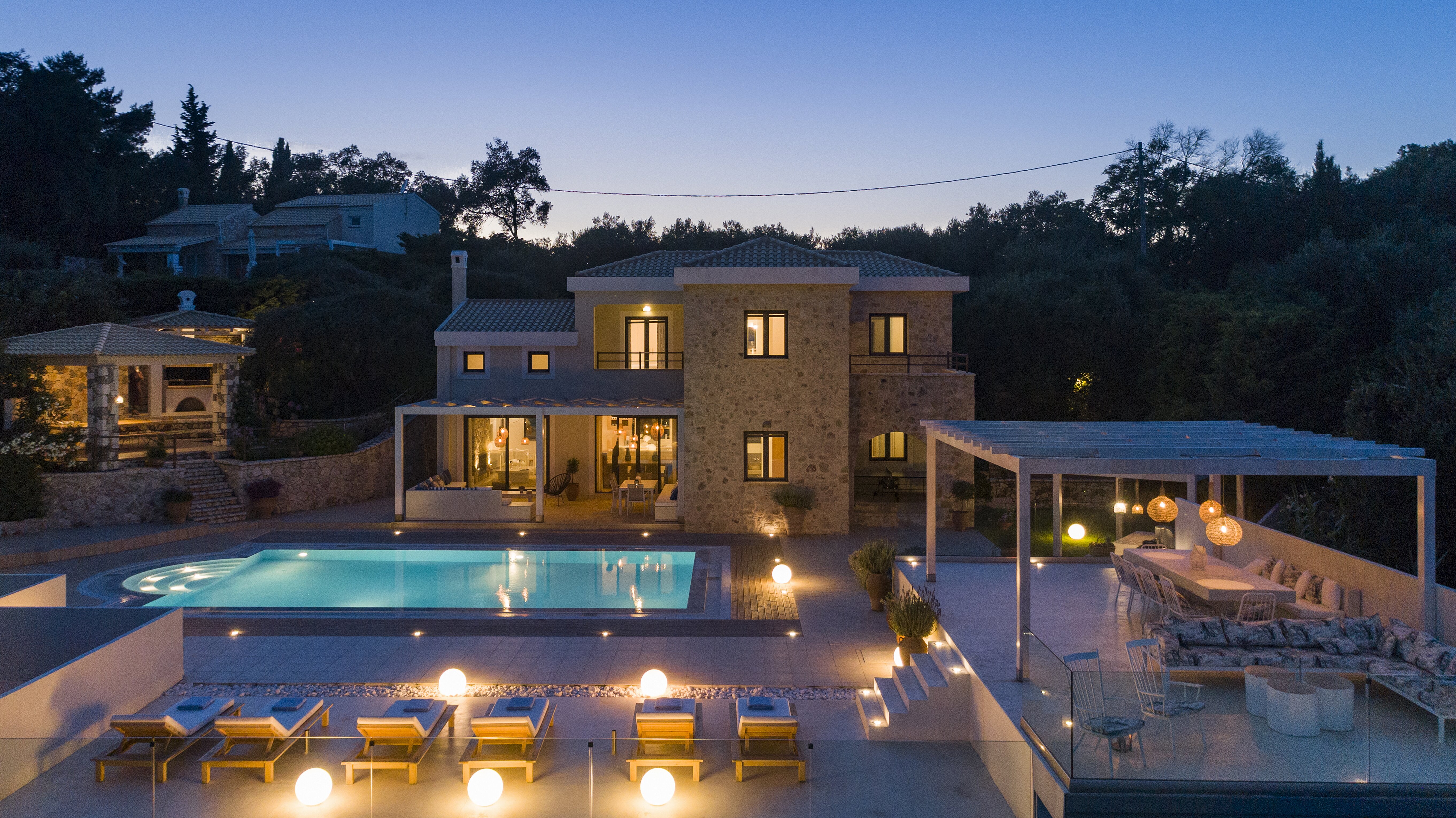Peacefully positioned just off the country road that winds down to St. Stephano, Electra nestles amid cypress and olive trees, gazing over the water to the mainland mountains beyond. Shops and tavernas in the village are 2km away, as are sailing and windsurfing from the beach at Avlaki. Kassiopi’s nightlife is also within easy reach.