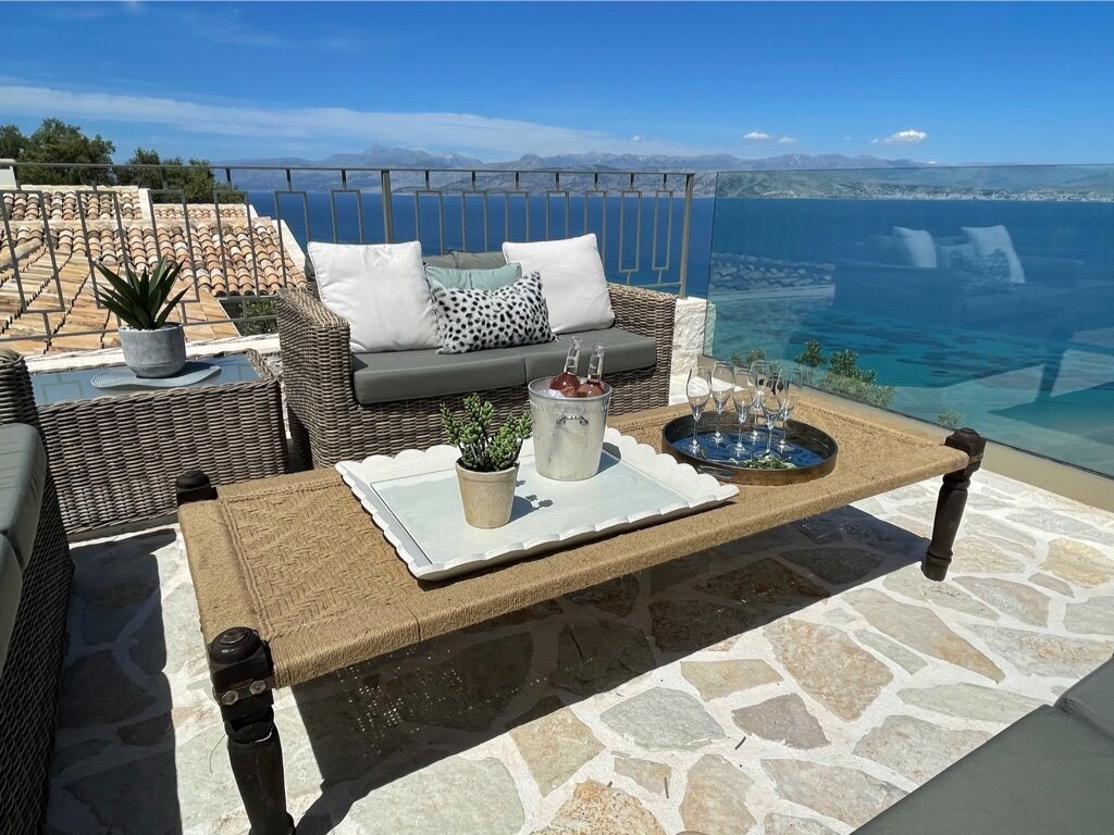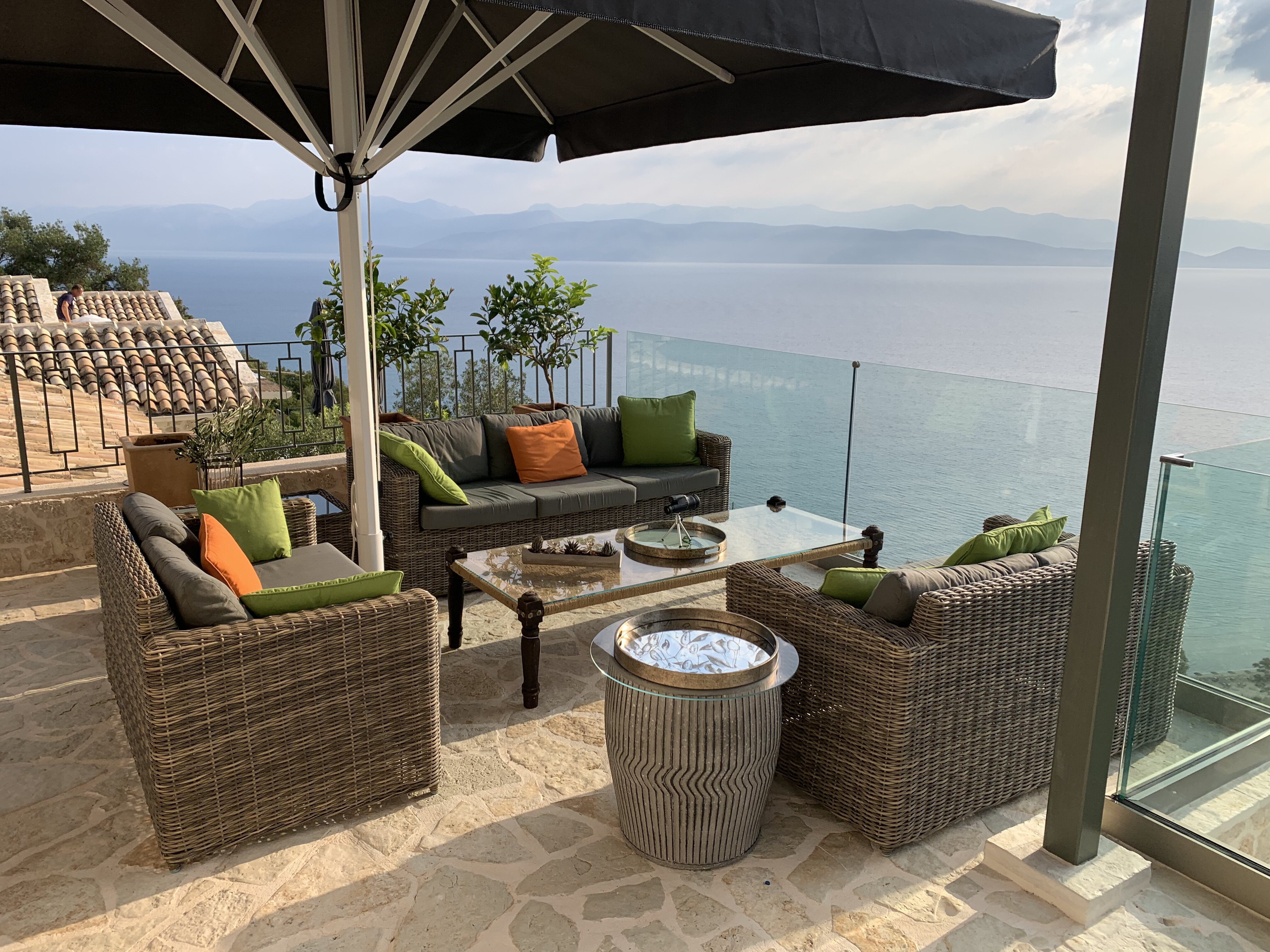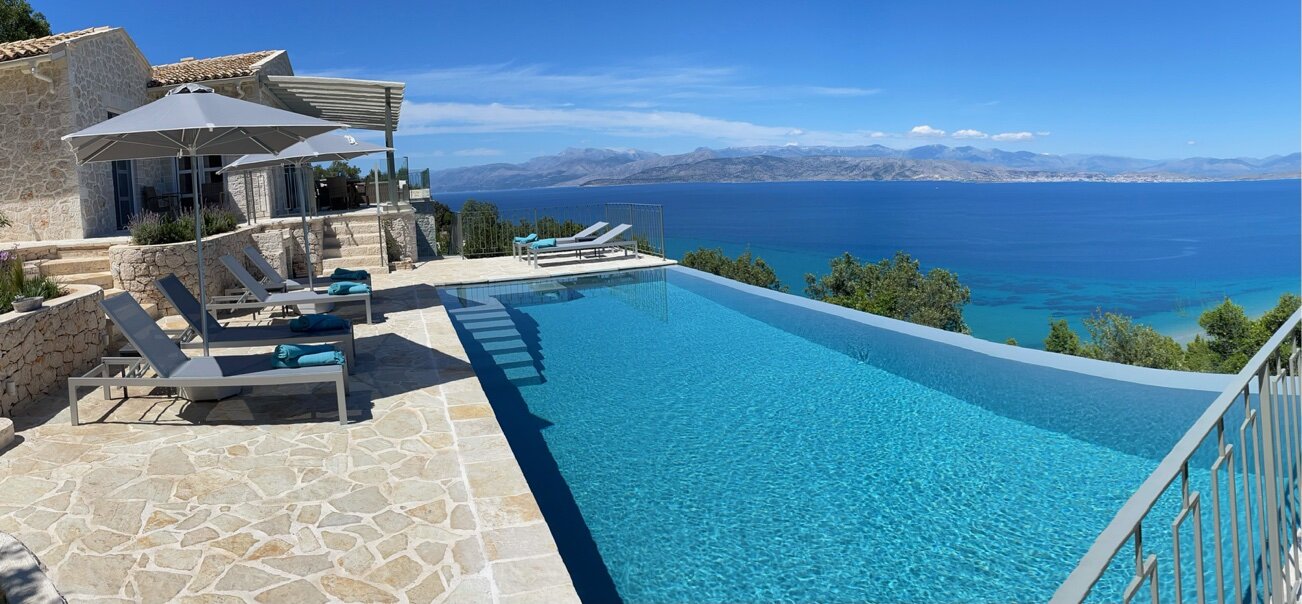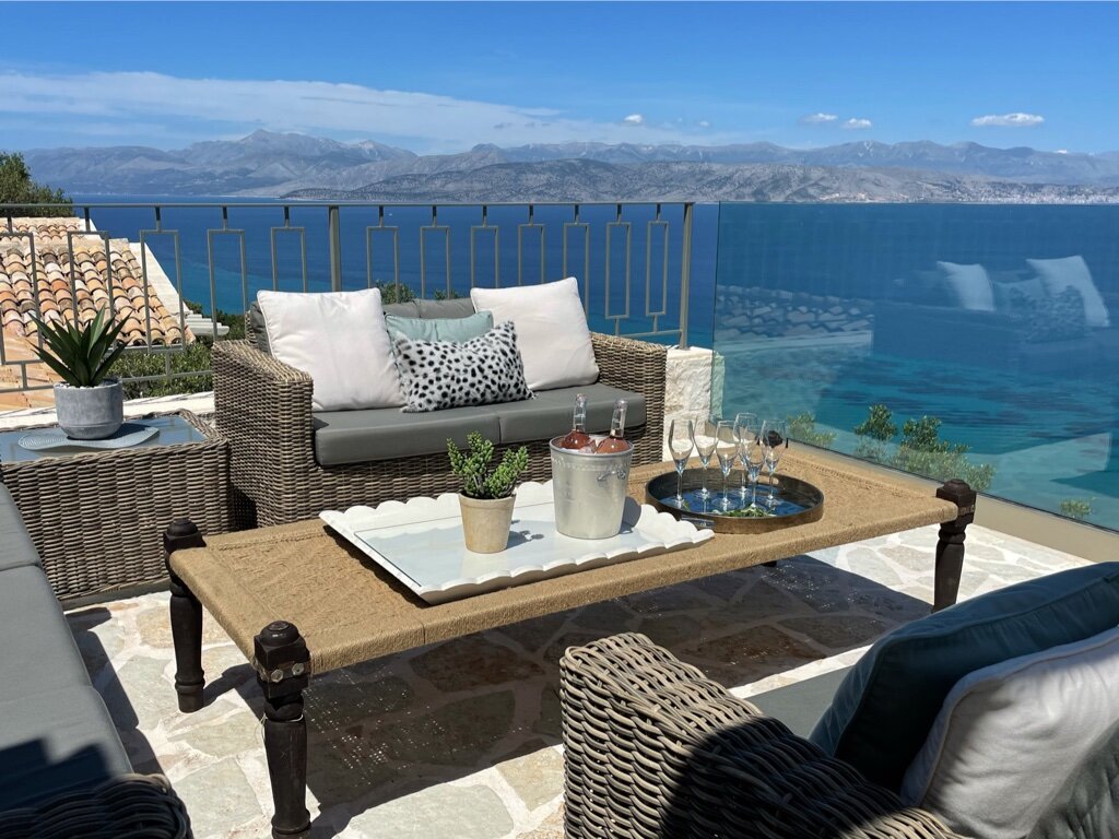 Its hard to beat location is just one of many reasons why we love Gaia; just a 5 minute drive away from Kalamaki’s wide sandy beach, and only 10 minutes from a wonderful selection of restaurants and boat hire. Uninterrupted views lead down a lush green hillside straight to the sea below and onwards to the majestic mountains of Albania. One of the finest spots to enjoy the view is most certainly the poolside terrace, where the infinity pool edge seemingly merges with the sea and sky blues. The terrace expands the length of the house with an area for dining in the shade, and a separate space for relaxing al fresco with comfortable rattan seating - perfect for curling up with a good book or a sundowner.