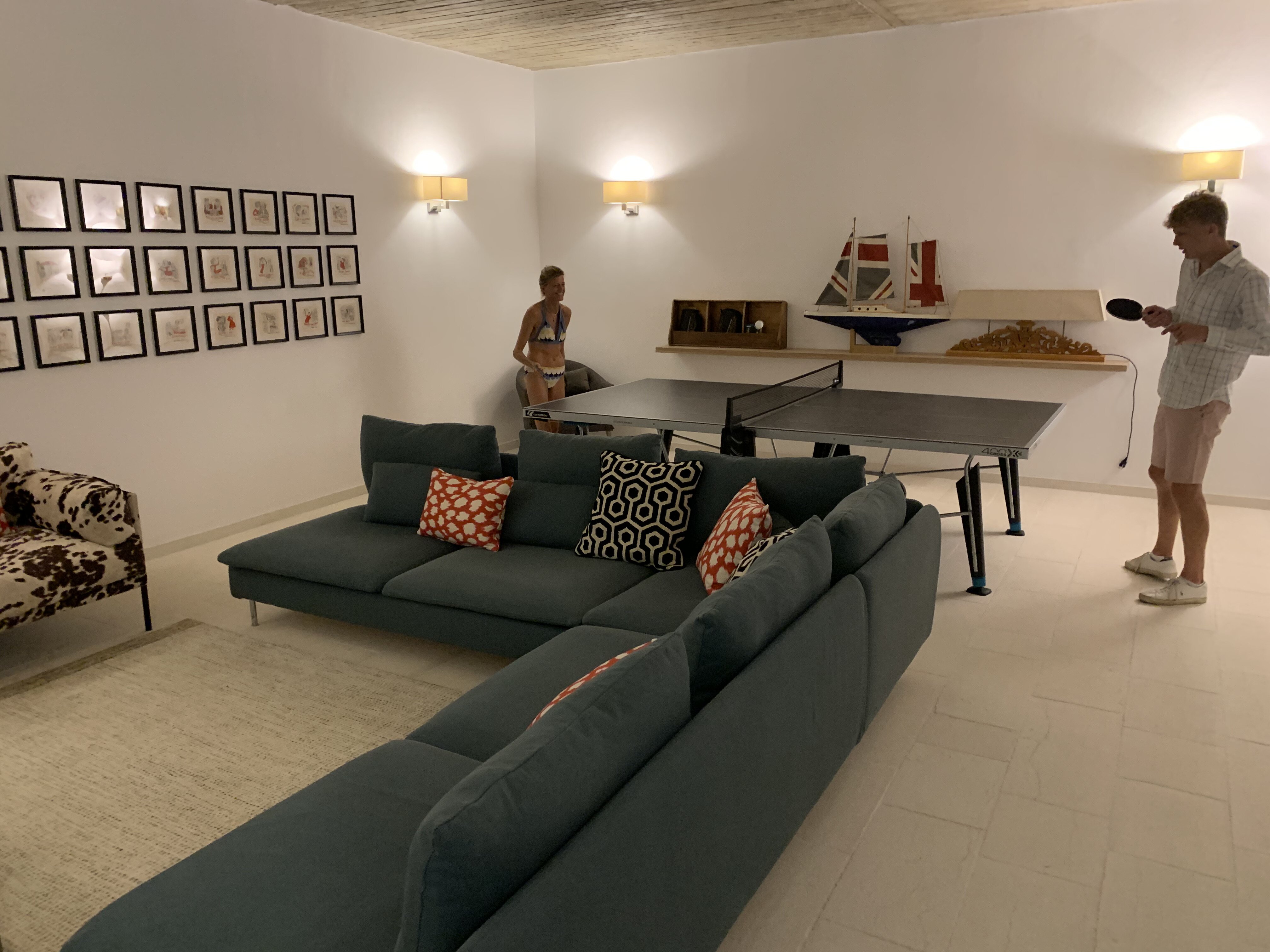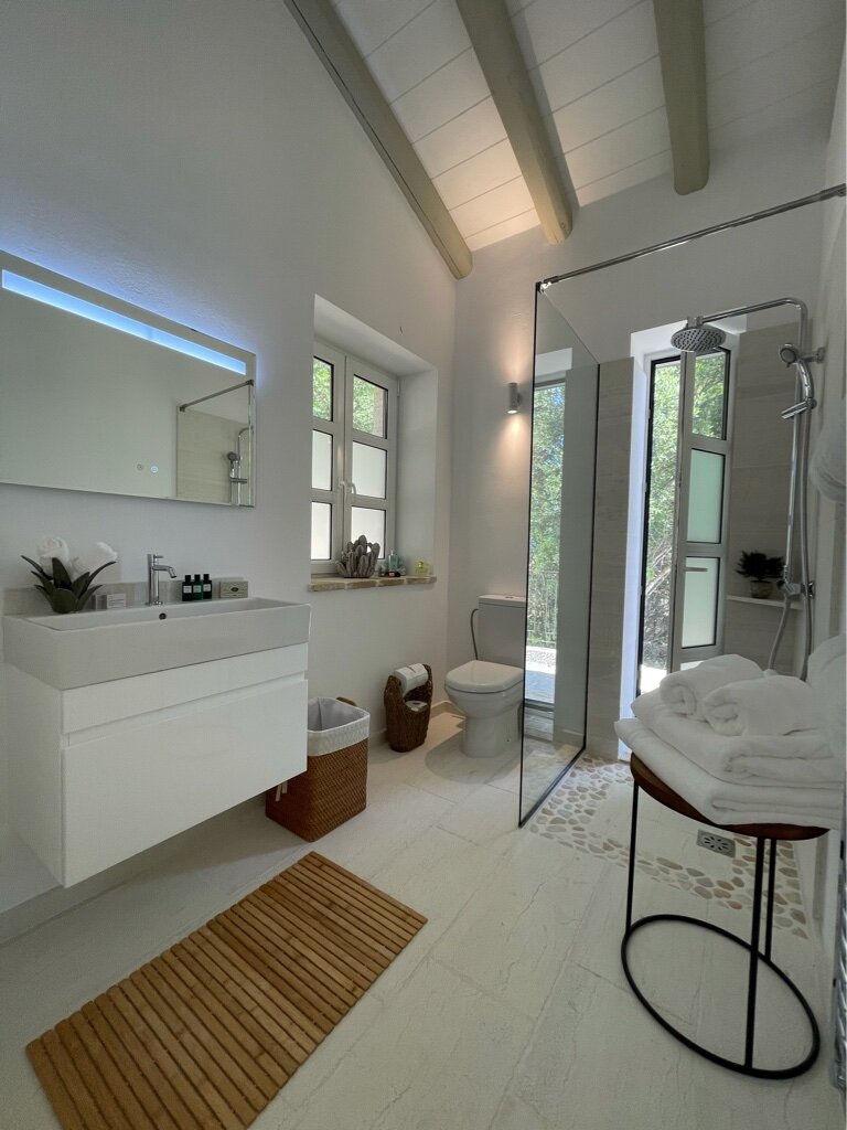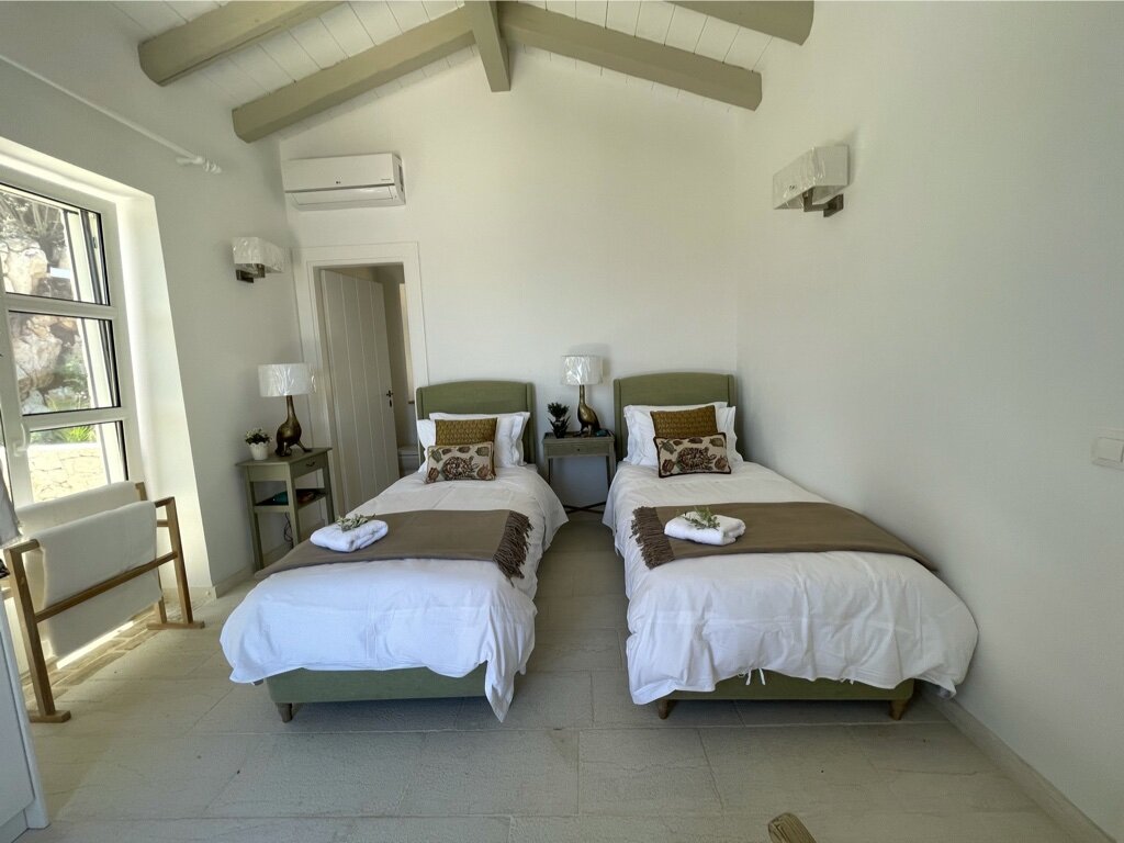 Inside Gaia is superbly designed for a group of six, with style and comfort supplied in equal measure. Guests will enjoy open plan living with comfortable seating and indoor dining in a shared space, alongside a fully equipped kitchen. Two en suite twin bedrooms are located on the ground floor, while the master suite is on the lower ground floor with the games room. Concierge service is an added luxury at Gaia, where an incredible team can arrange a selection of additional extras and to ensure that guests are very well looked after. What’s more, this house can be booked with sister house Eos to sleep 10 and together with Kalamaki Bay House for groups of up to 20, the “Kalamaki Bay Estate”, benefitting from a large central dining terrace to seat groups of 20+ and Jacuzzi. This is a perfect set up for large group celebrations or intimate weddings, please ask us for more details.