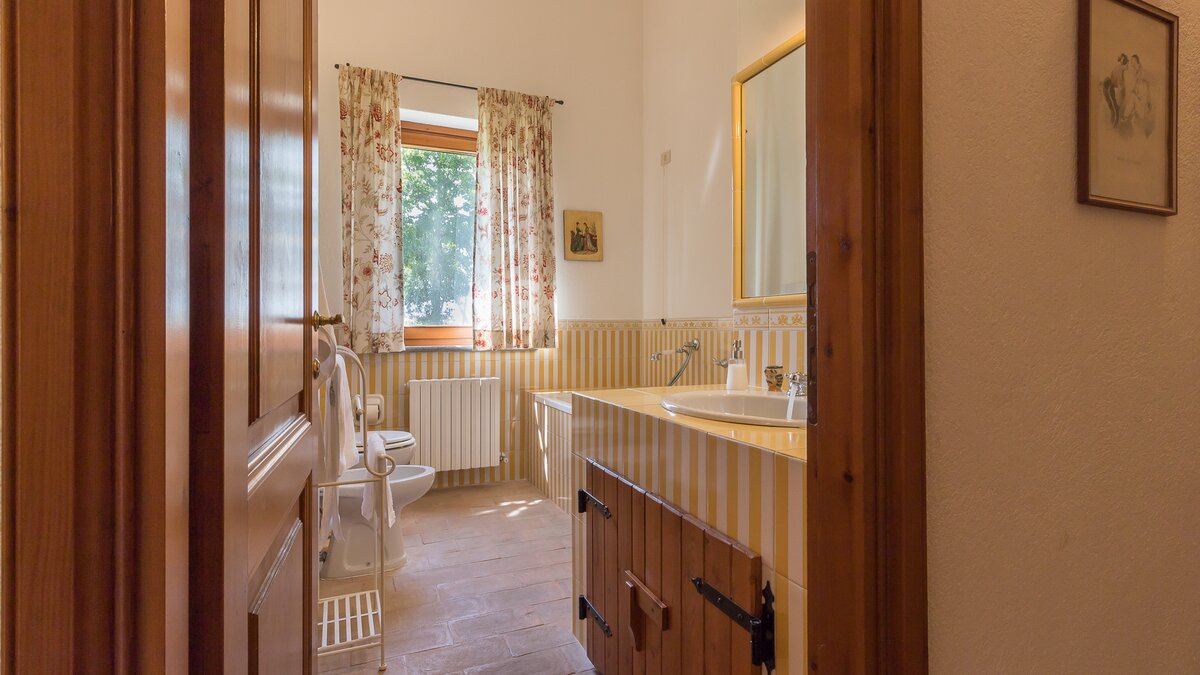 Set in the unspoilt countryside of the Orvieto area, and looking out to a patchwork of hills, fields and forestry, this charming family villa has been restored to reflect its pastoral position. Furnished with stripped timber cupboards and warm country colours, the house feel like a much loved home, its kitchen a convivial place with a big breakfast table, complemented by a charming dining room and the cosy sitting room with its large log fireplace. There are five attractive bedrooms in the main house and a further two in the annexe, each with its own bath or shower room.