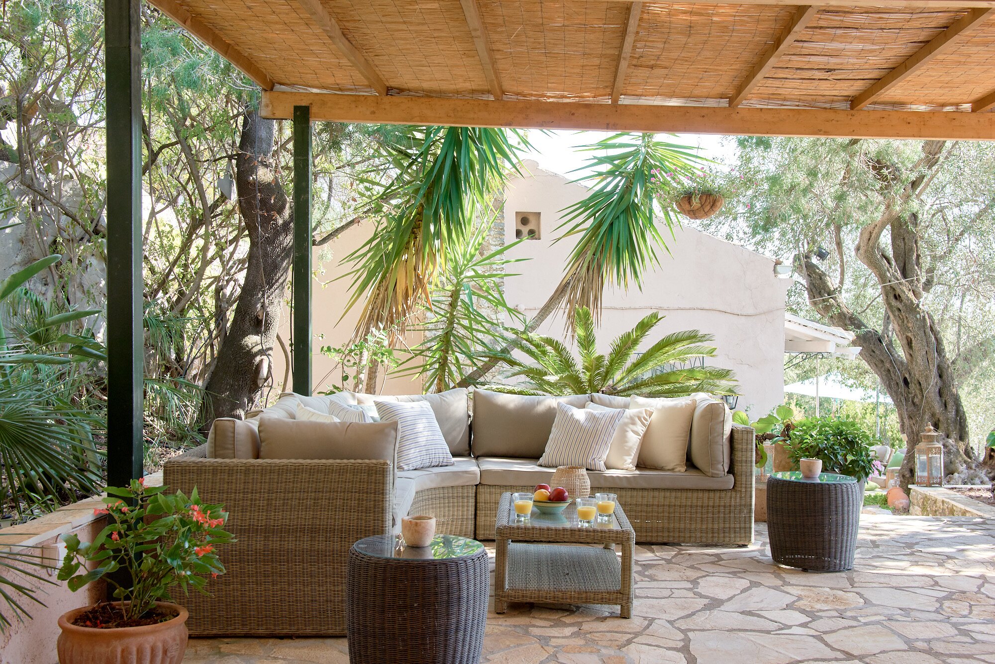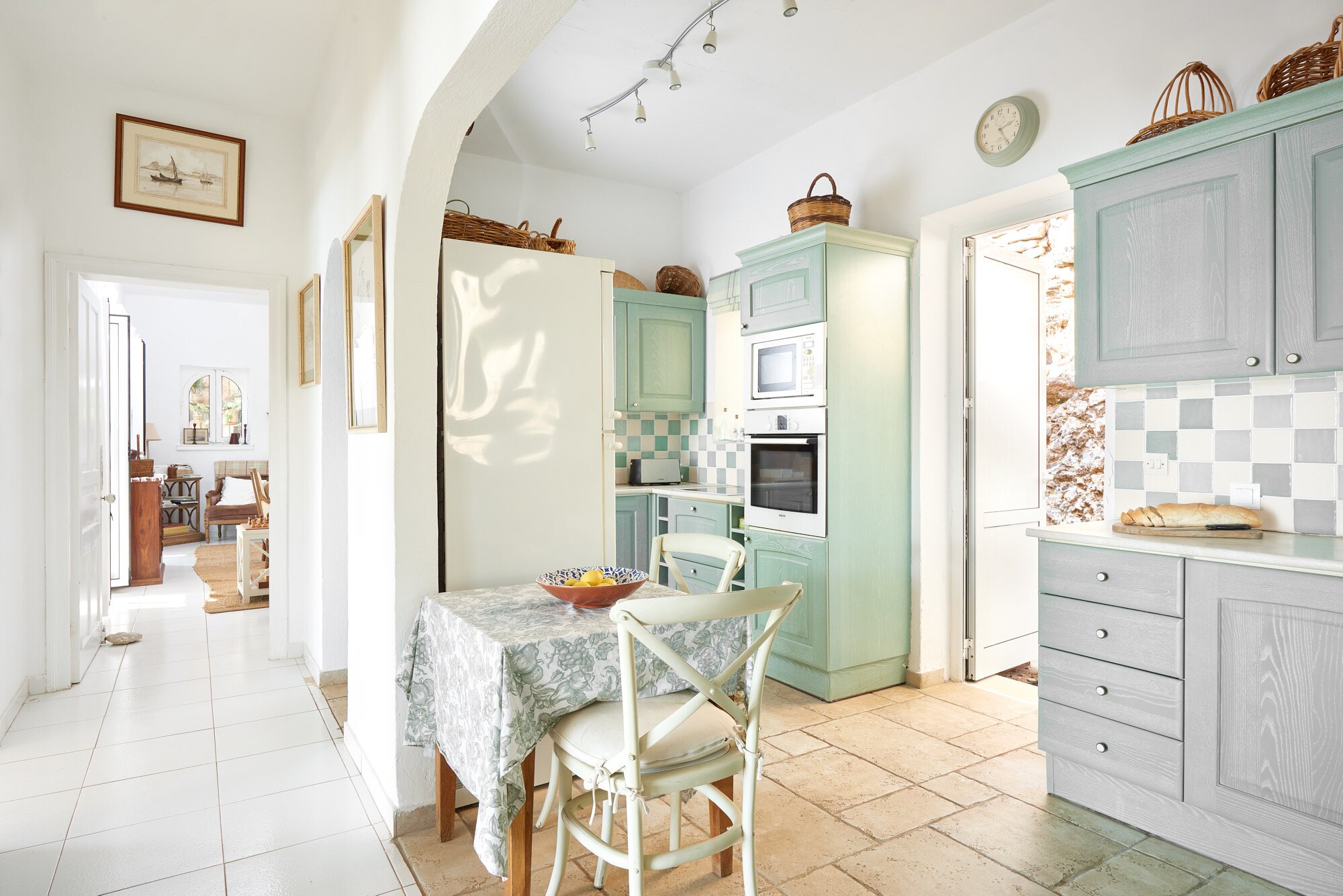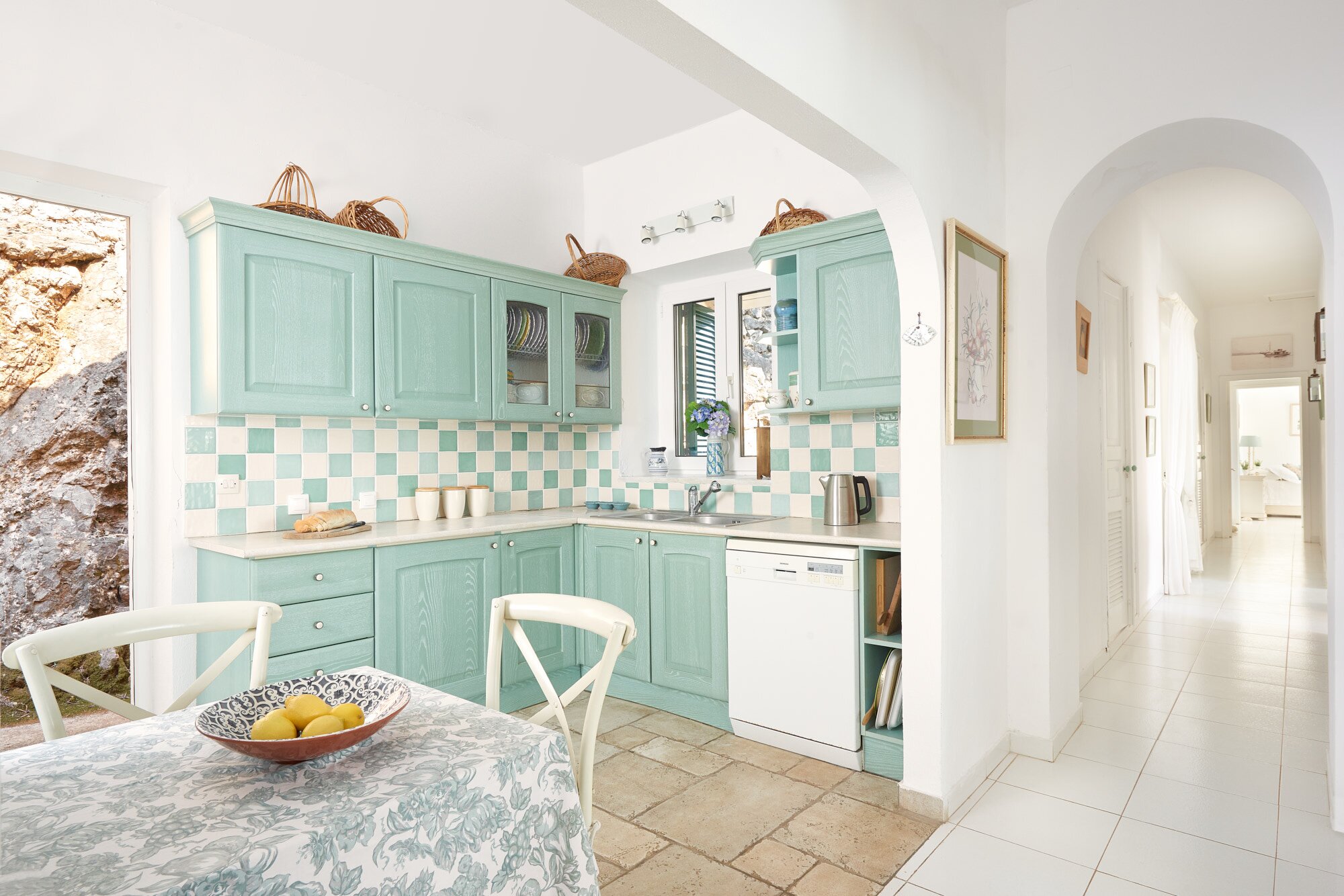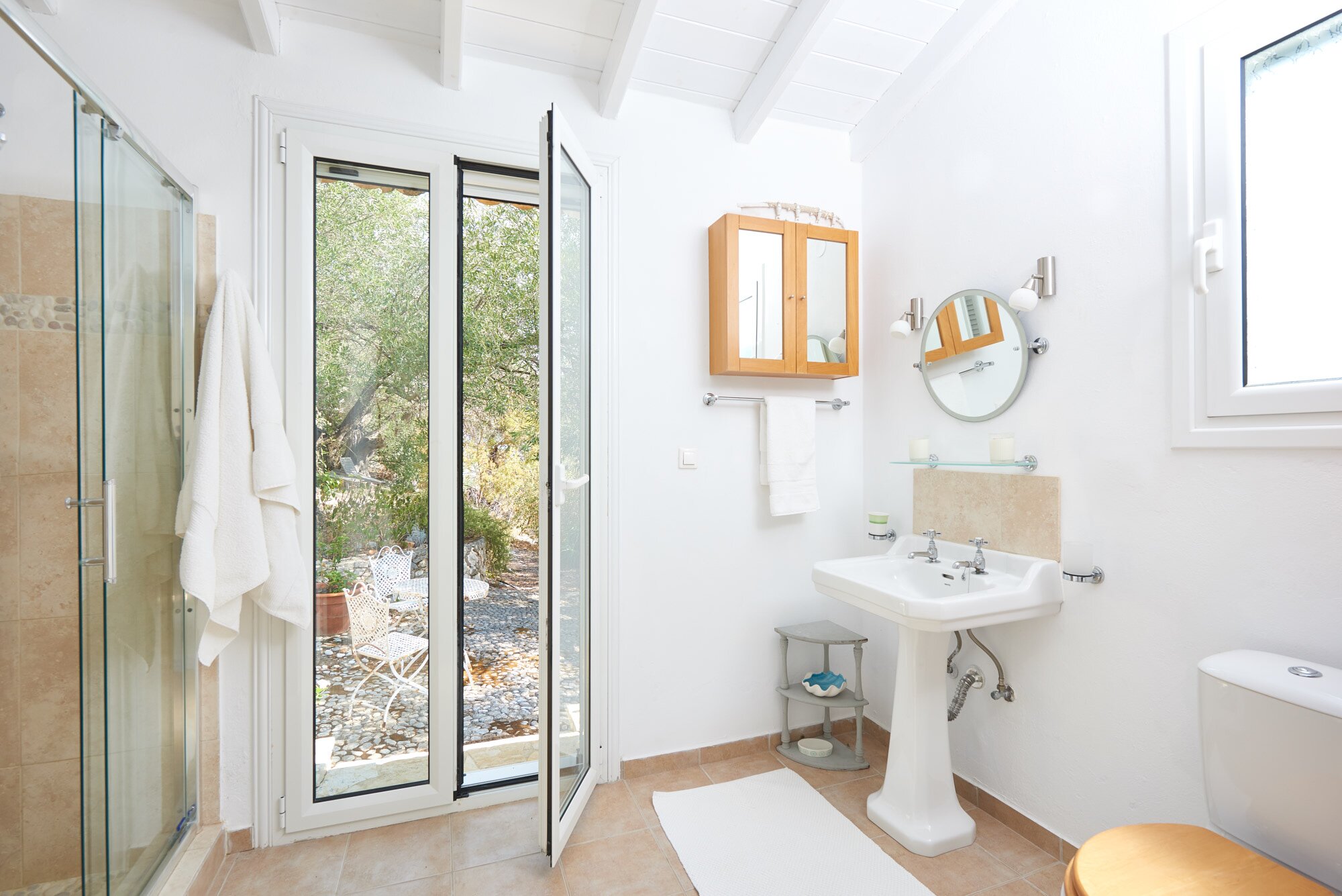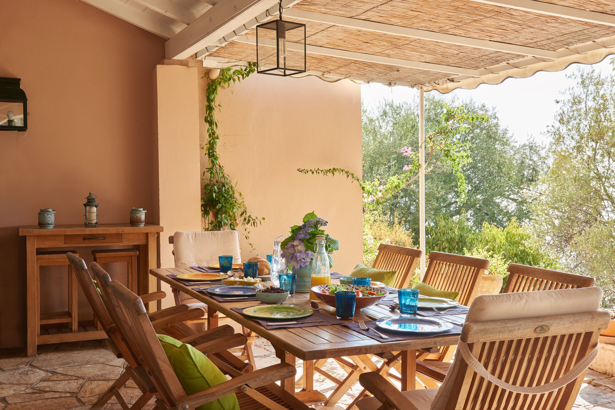 This is a very pretty villa in colourful gardens by the sea. An elegant sitting room sets the style of the house, furnished in white with elegant simplicity and opening out to a paved dining terrace. Perfectly placed for long leisurely lunches, with an awning for shade and the blue of the bay as a beautiful backdrop, this is adjacent to an al fresco ‘sitting room’, catching sea breezes and cooled by the dappled shade of mature trees. Kaminaki House has three charming bedrooms, each with air conditioning, and exudes an air of undisturbed idling which could be enhanced with (pre-bookable) cook service.