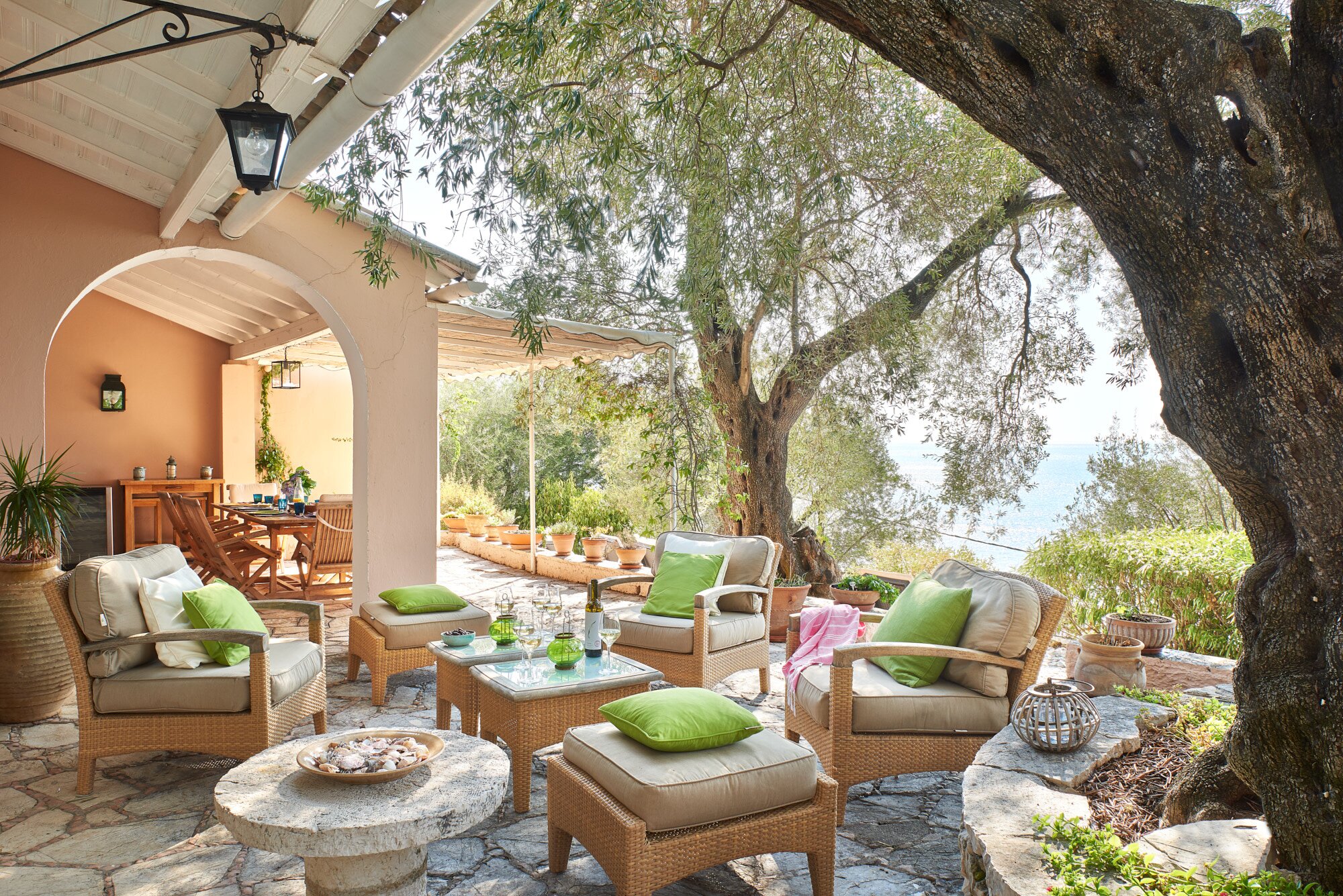 Set in flower-filled seafront gardens, this is a wonderfully comfortable family villa in Corfu’s unspoilt resort of Kaminaki. Its tranquil setting is just five minutes on foot from the beach.