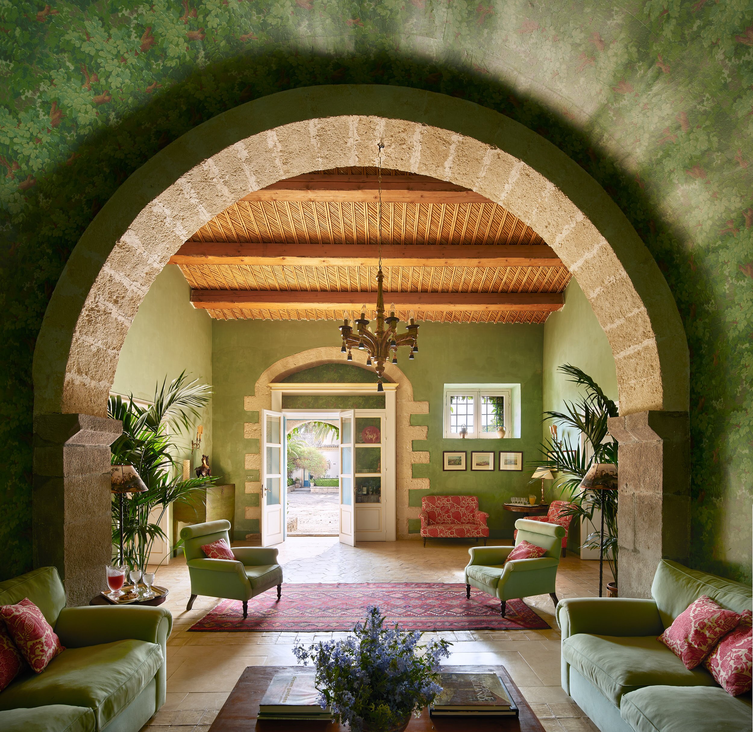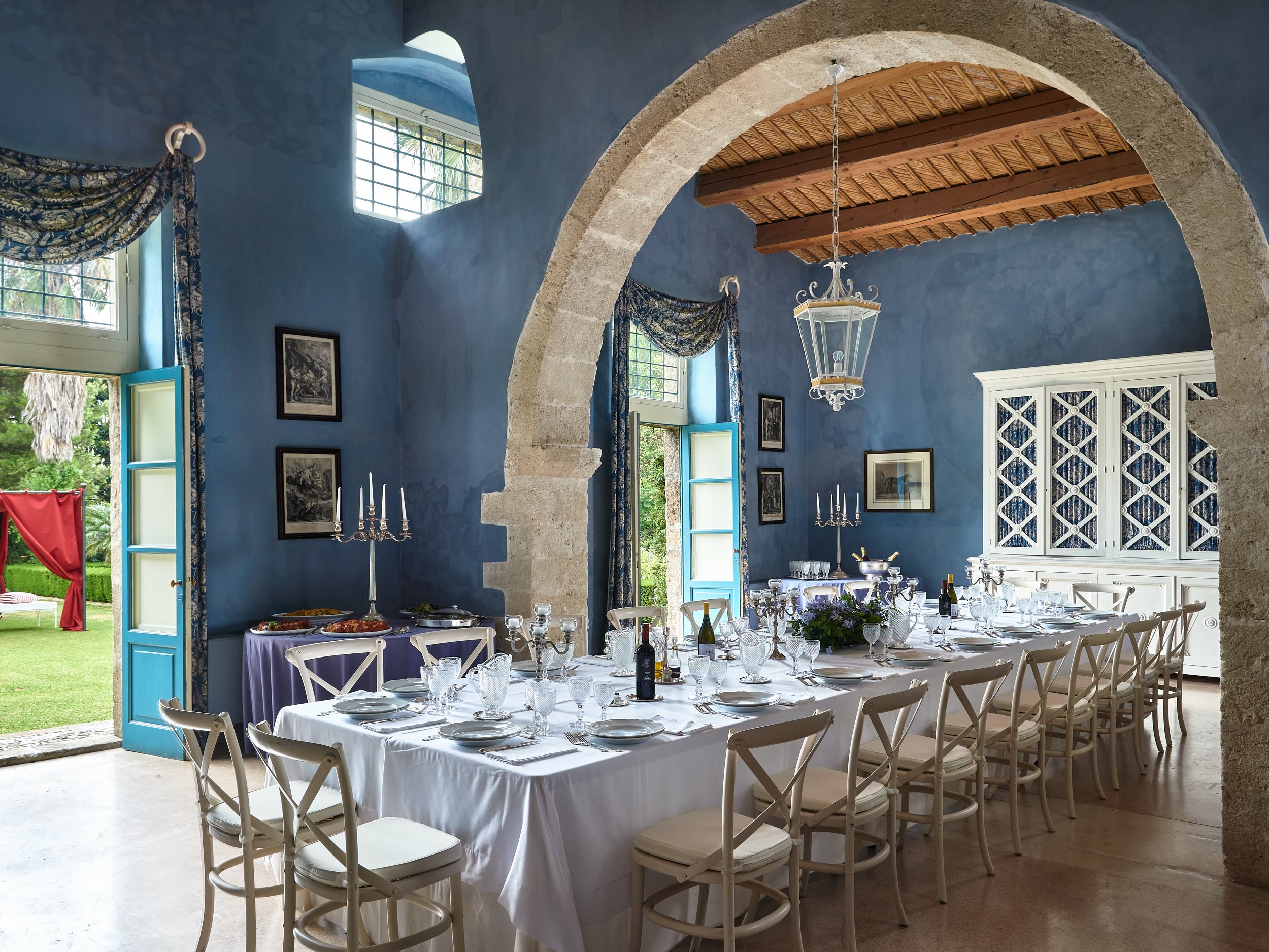 Tall palms cast their distinctive shadows onto the extensive lawns and walls of this historic house, which was built as an abbey in 1300, before becoming an important stately home for several centuries and, latterly, being restored as a magnificent choice for a special holiday. Quietly secluded in over a hundred private acres, its glorious gardens encompass ponds and a peaceful Indian pavilion, lawned paths through scented plants and splendid symmetry, cypress and citrus trees, and buildings ablaze with bougainvillea and climbing roses. They are also home to a twenty metre swimming pool set into a pretty garden courtyard, served by a pool house with bar, barbecue, shaded terrace and a spa area creatively built into a round tower with a hammam and sauna. Within the property, timber raftered ceilings and huge stone arches span timelessly elegant country house décor, where various social spaces complement ten bedrooms, while two special suites are privately placed off the garden courtyard.