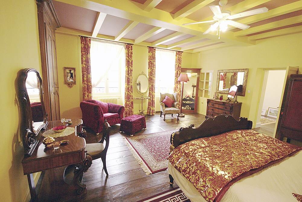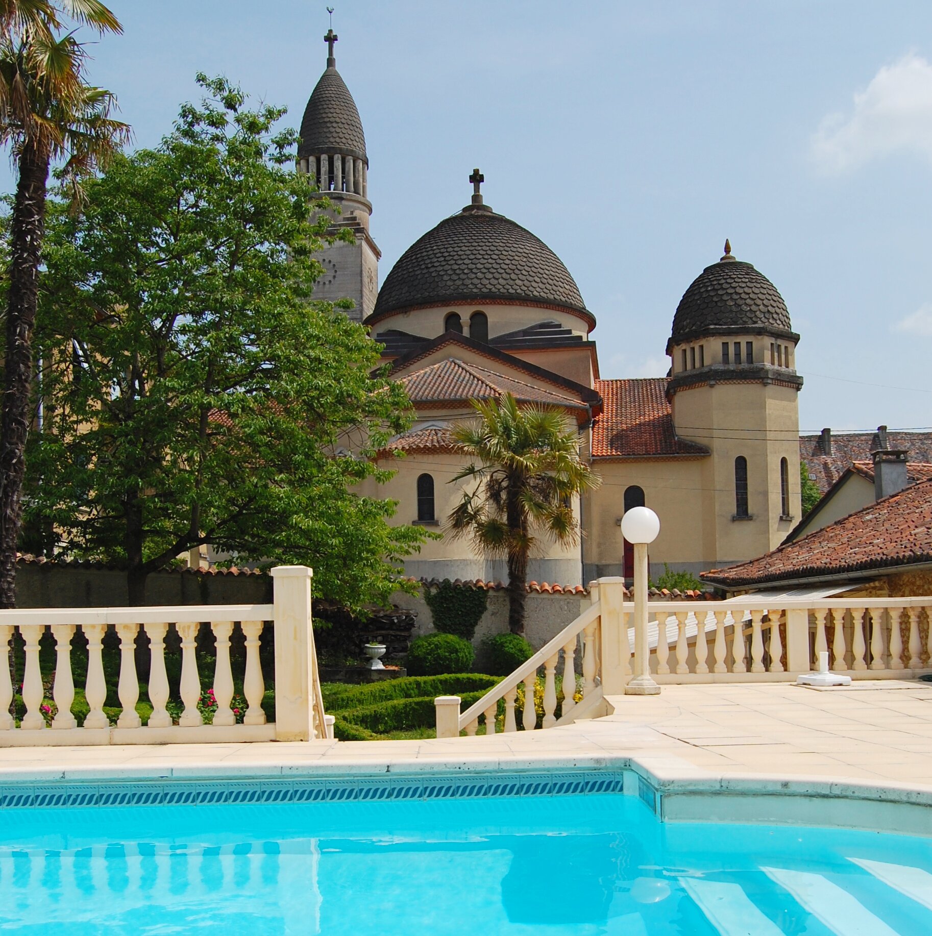 With steps straight from the pavement to its imposing double doorway, the façade of this intriguing townhouse is traditional and rather grand. To the rear of the villa are beautiful grounds with box-hedged rose beds, woodlands and winding pathways. A lawned and cobbled central courtyard makes a private spot for al fresco dining, a heated swimming pool fills a sunny corner above the rose garden, and there are lovely views over the picturesque market town and surrounding countryside. And within the innately welcoming house, spacious rooms are individually designed for comfort and character. Bedroom décor ranges from rich and romantic, to cool and uncluttered.The kitchen has a country style breakfast area, a comfortably informal sitting room contrasts with a handsome dining room, and a very contemporary TV snug complements a games room with table tennis. Thoughtfully equipped as a family home, Maison Lemaitre is also very well placed for activities and amenities. A cinema, tennis courts, shops and restaurants are within a five minute walk as is the lively Friday market, and the region’s capital, historic Perigueux, is just 15km away.