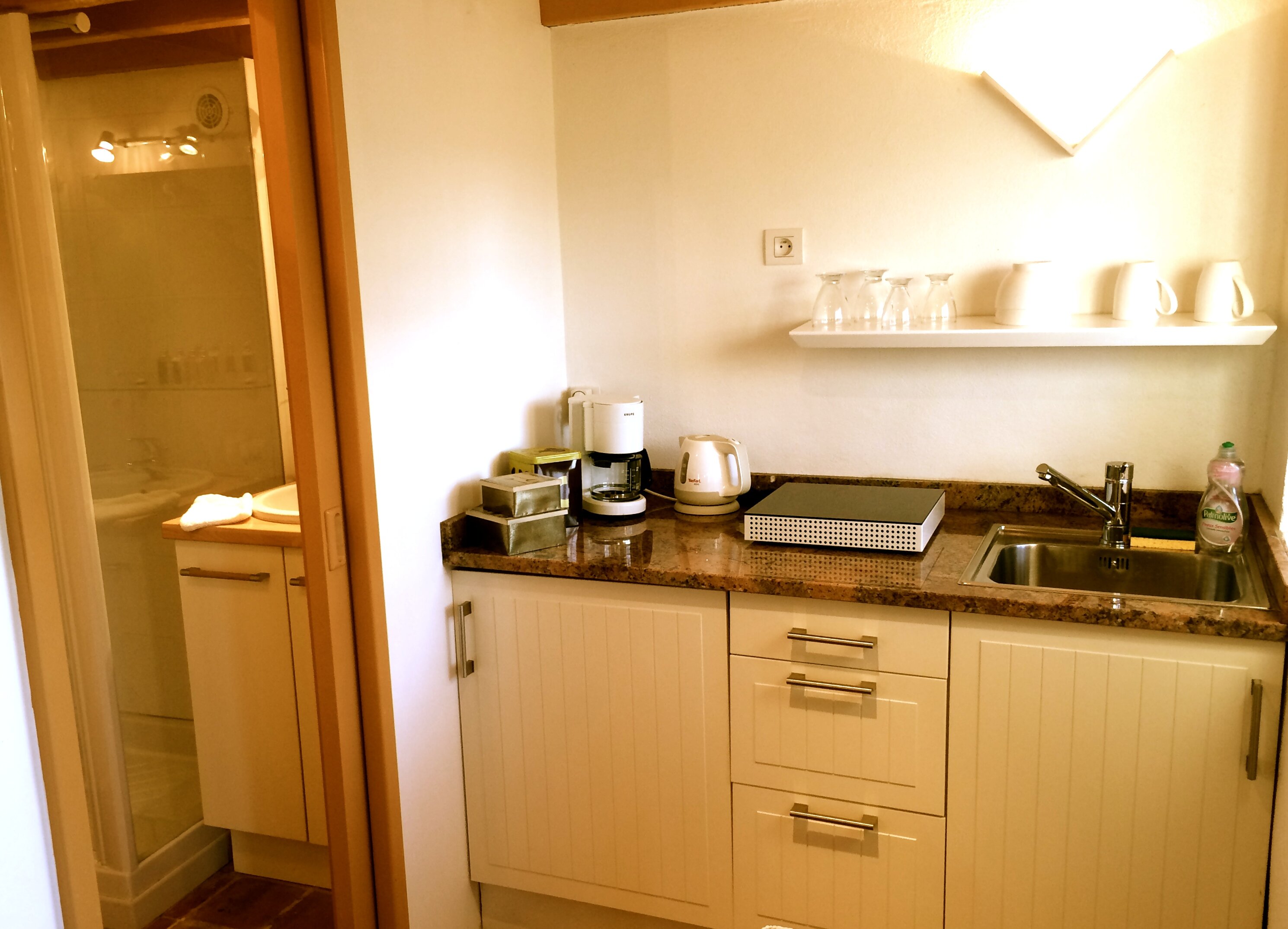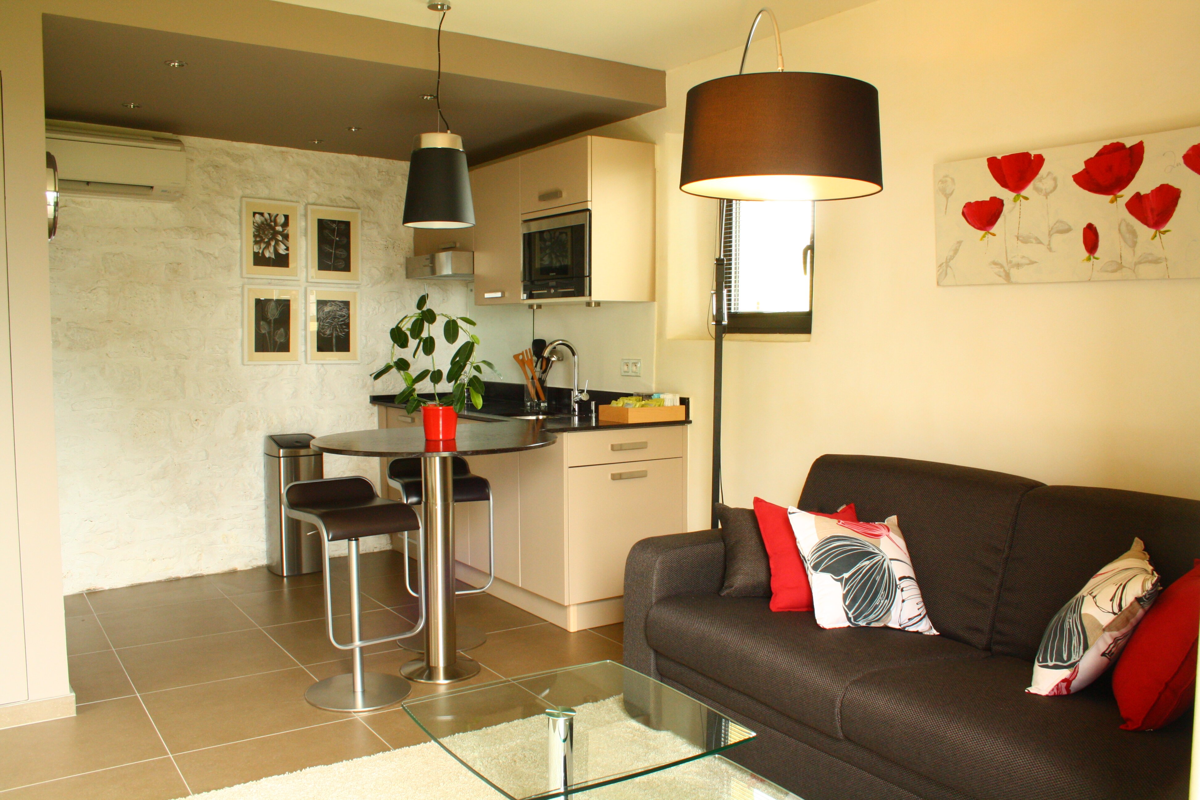 Open plan kitchen with dining areaSitting roomDouble bedroom (king size bed) with shower room en suite opening to terraceLa Balade - First floor