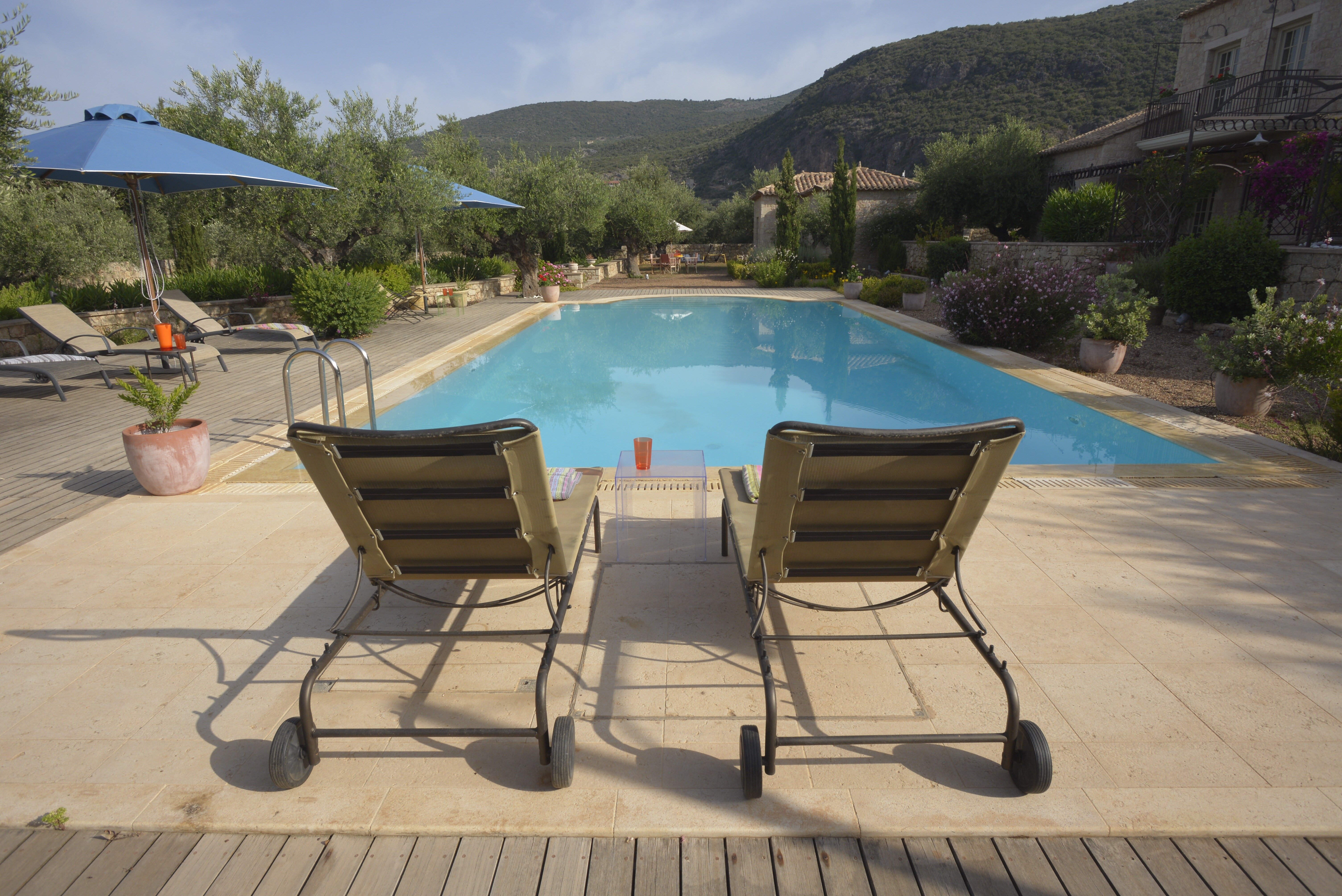 With its history dating back to Homeric times, its setting between the sea and the Taygetos slopes perfect for coast and country exploration, and its traditional tavernas sprinkled at the water’s edge, Kardamyli is an idyll for the Grecophile. A ten minute walk from the village centre and just a stroll through the grounds from Ritsa beach, Liodentra encapsulates the timeless charm of the area, while incorporating very contemporary comforts. The matching main villas, Ena and Thio (‘One’ and ‘Two’), are furnished individually, elegantly blending comfortable sofas and cool-toned décor with character and colour in Persian rugs and Swedish dowry chests.