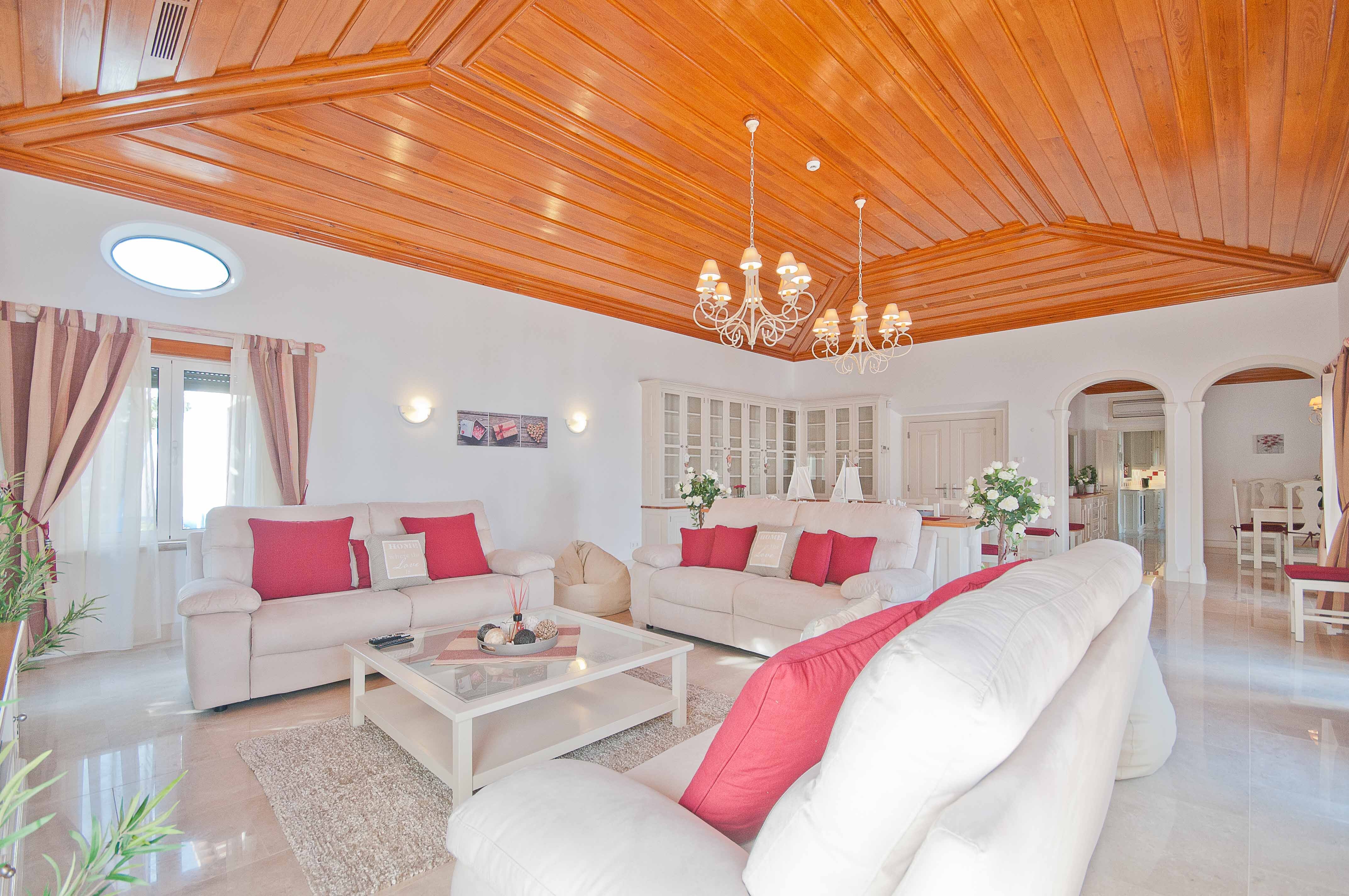 With sea views from upper terraces, and fabulous living space, indoors and out, for families and friends, this luxury villa is a short stroll from shops, restaurants and the beach in Olhos de Agua.