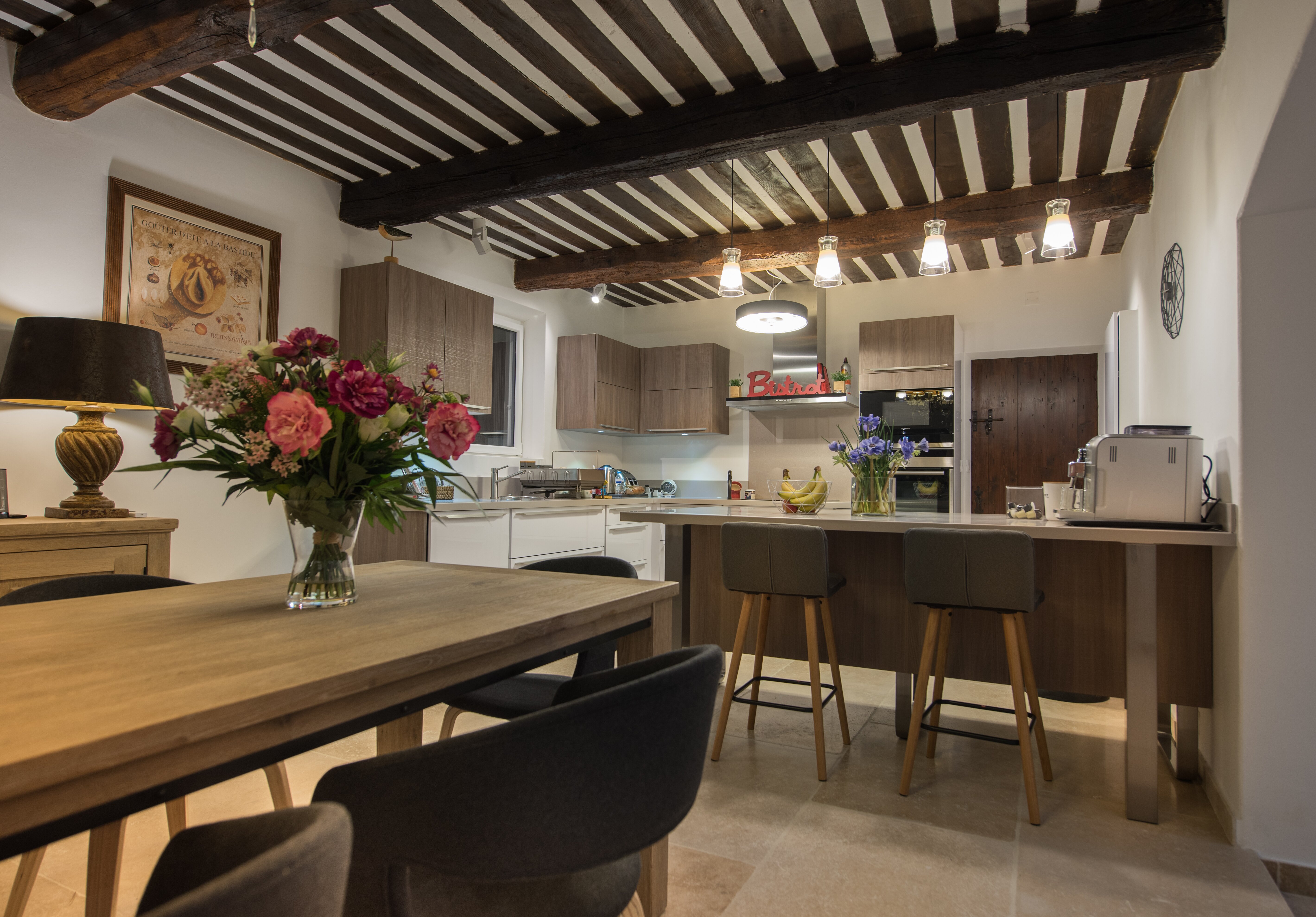 In a raised position with restful views of Lubéron countryside and Les Alpilles, this very comfortable family villa is a beautiful blend of old world charm and 21st century facilities.