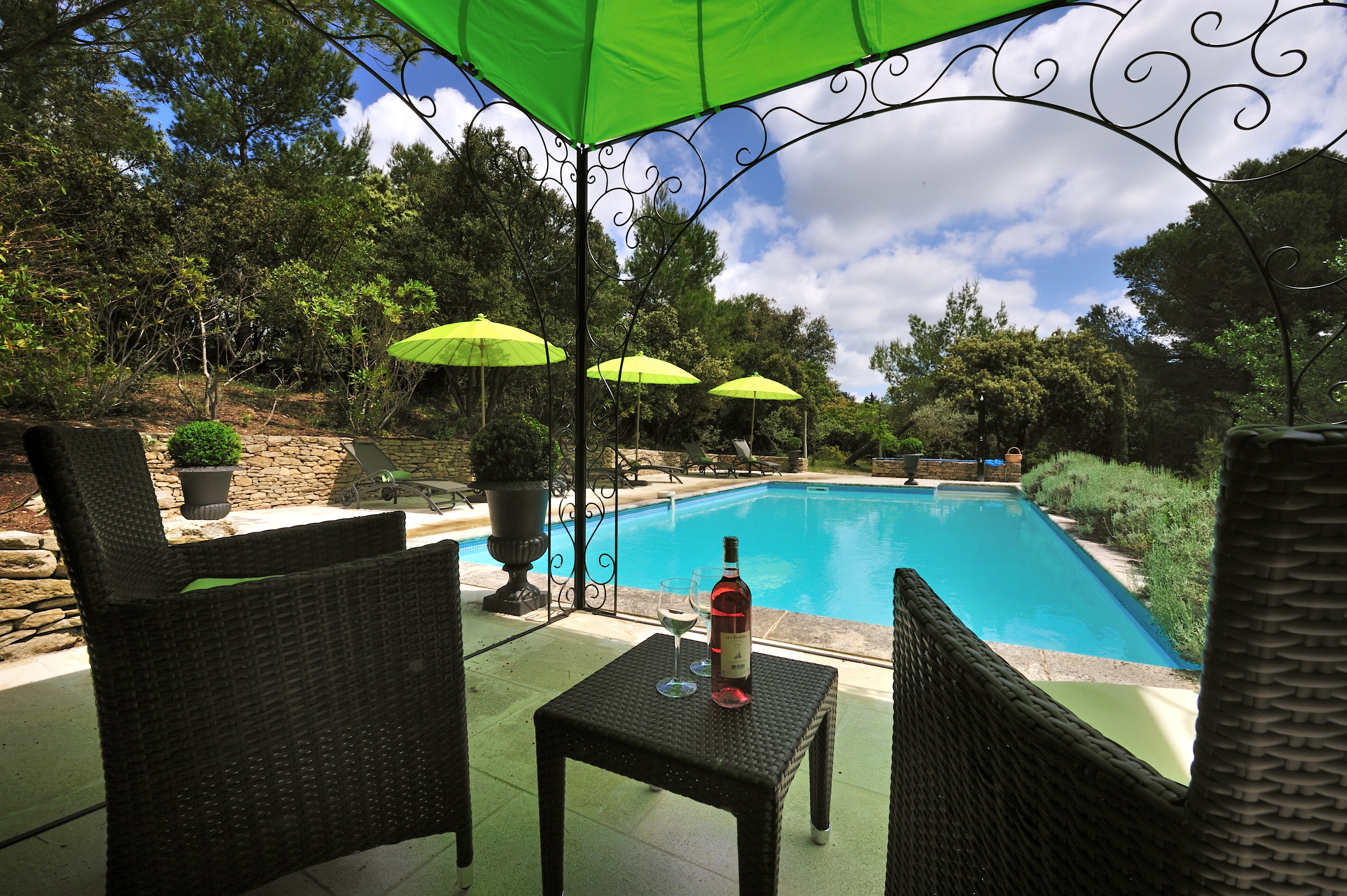 Peeping out from between mature trees and overlooking an olive grove, Maison l’Hirondelle is wonderfully welcoming, effortlessly elegant, timelessly traditional, but it is also very well equipped for contemporary living. Its three lovely bedrooms are unashamedly country-style, but all cooled with air conditioning; the kitchen comes complete with modern appliances; and, complementing a calm and comfortable living room, there is a TV room with large screen satellite TV, a surround sound system and Blue Ray/DVD player, and an HD video player and library of films. Within the grounds there is table tennis and a ten metre swimming pool that is set in a terrace surrounded by trees, with a vibrant gazebo and bright parasols along its paved poolside. And linking house and garden is a gorgeous pergola terrace, furnished for al fresco dining and draped in graceful wisteria. Cook service could be pre-booked here, to plan ahead for perfect leisure. A five minute drive leads to restaurants, shops and pretty squares in L’Isle-sur-la-Sorgue. And there are supermarkets and a golf course even nearer.