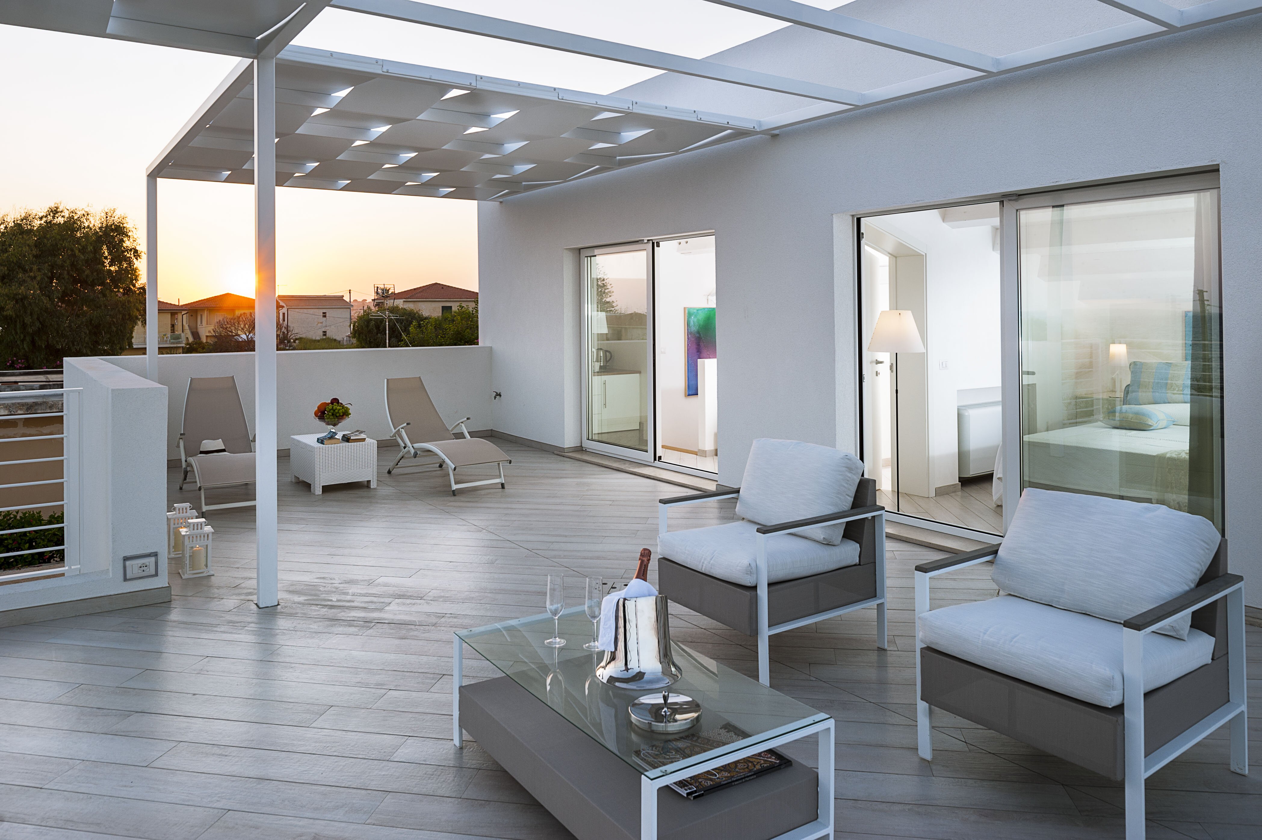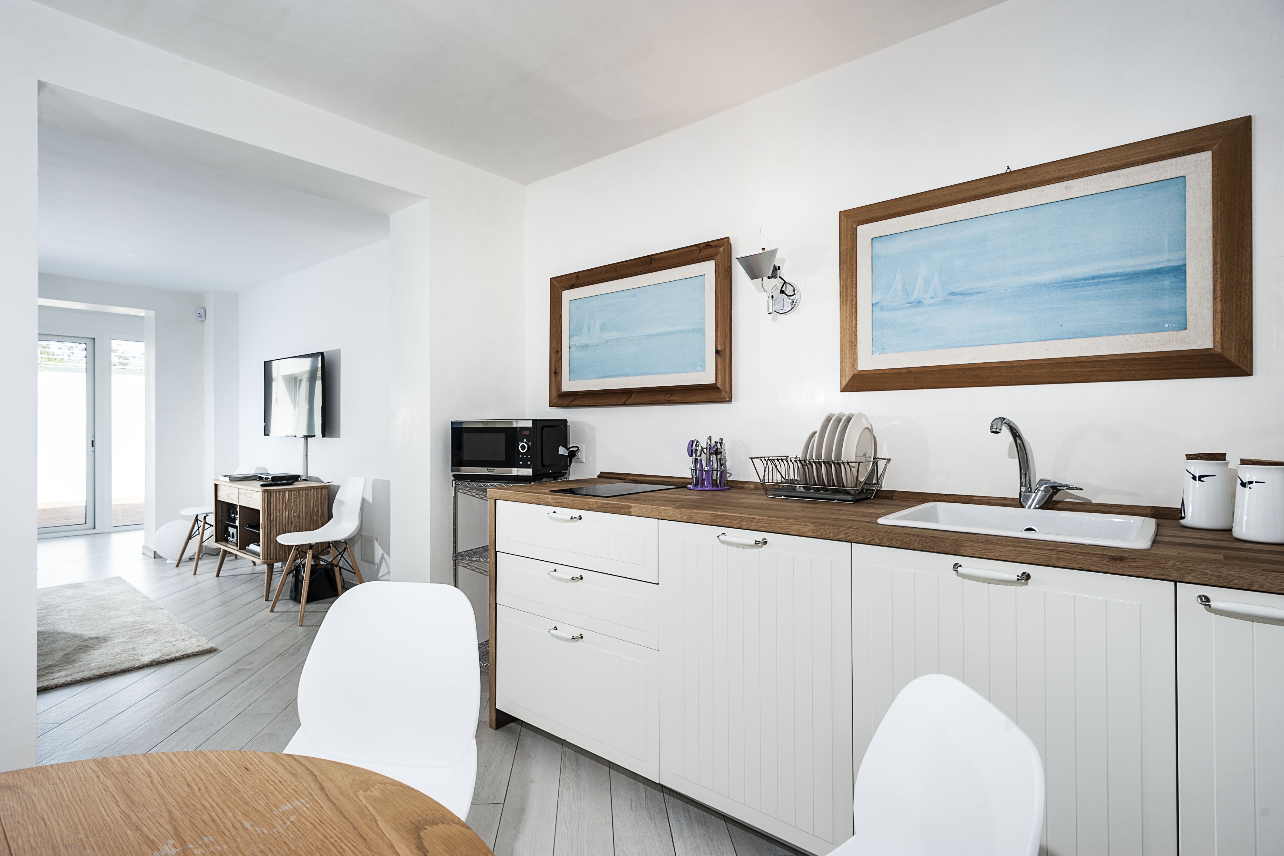 Small sitting room with kitchenette opening to terrace with sea viewsMaster double bedroom with shower room en suite opening to terrace with sea viewsLOWER GROUND FLOOR