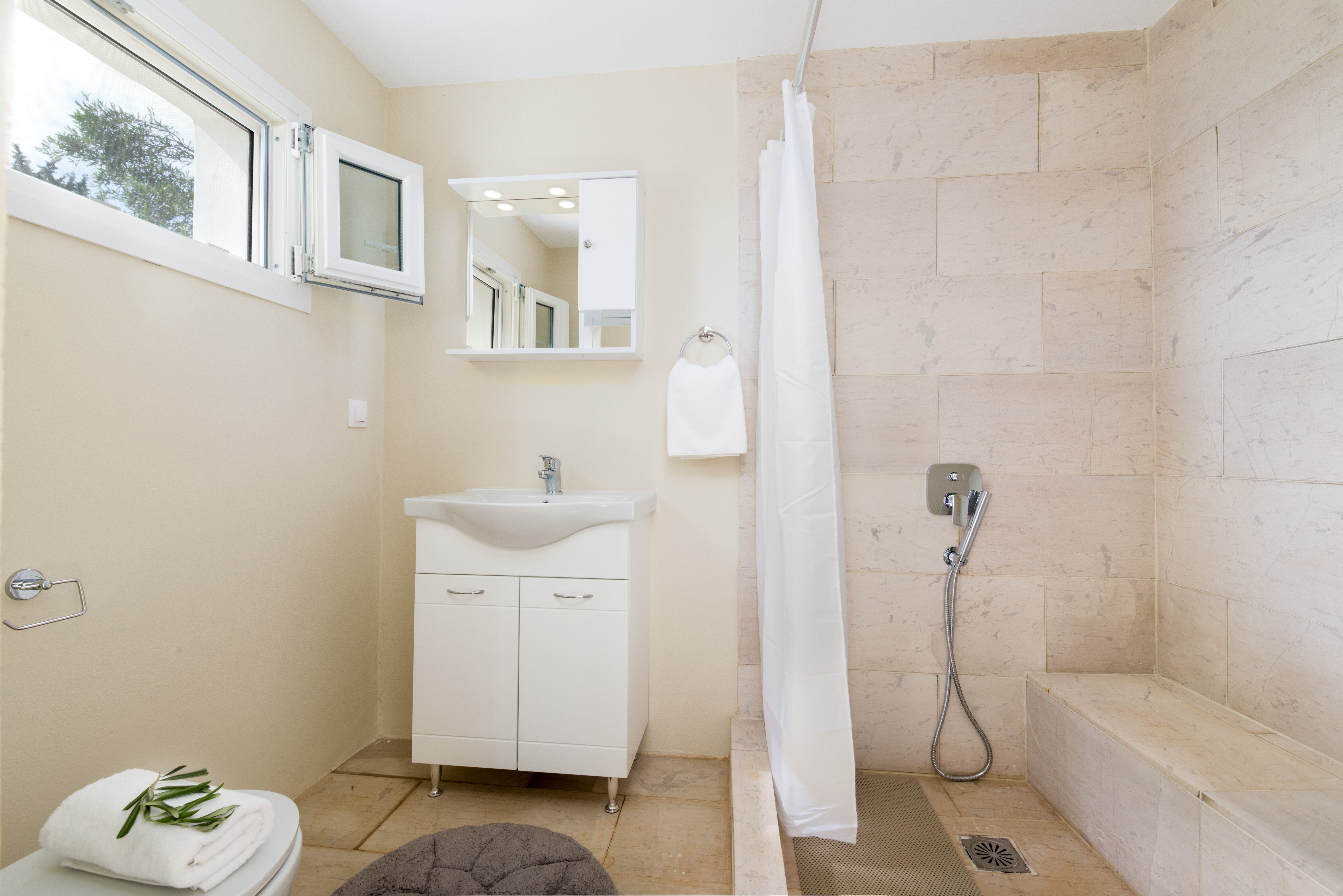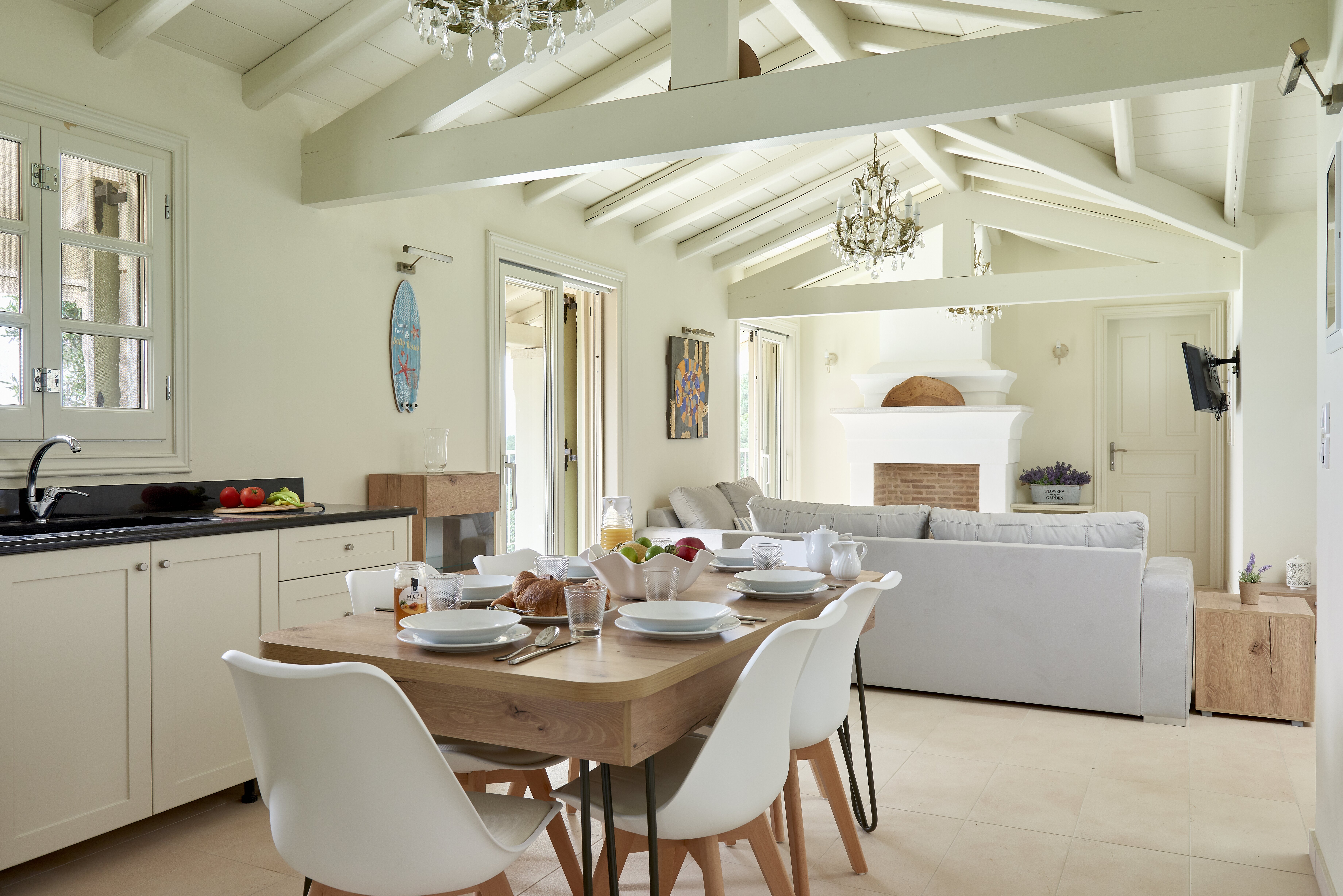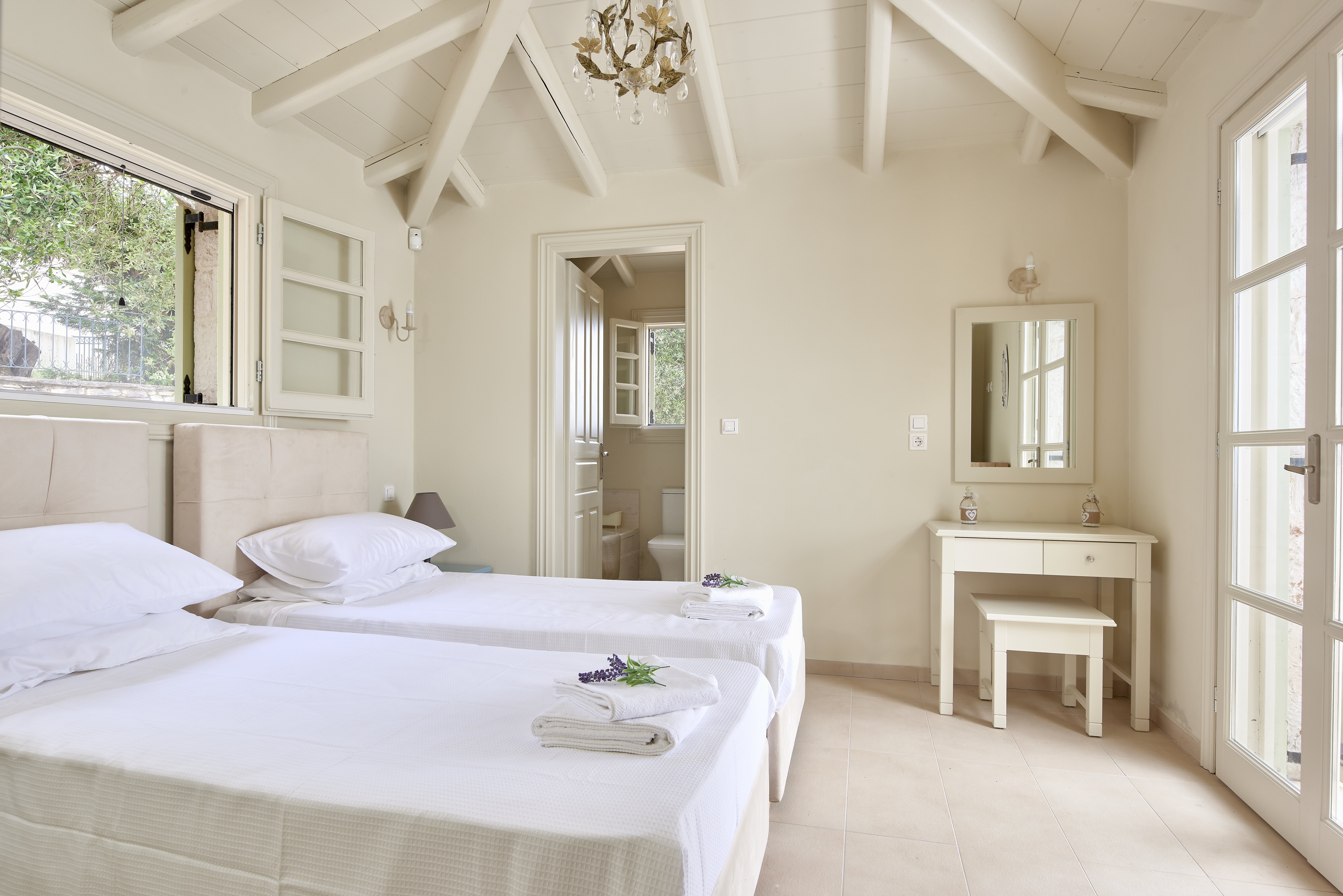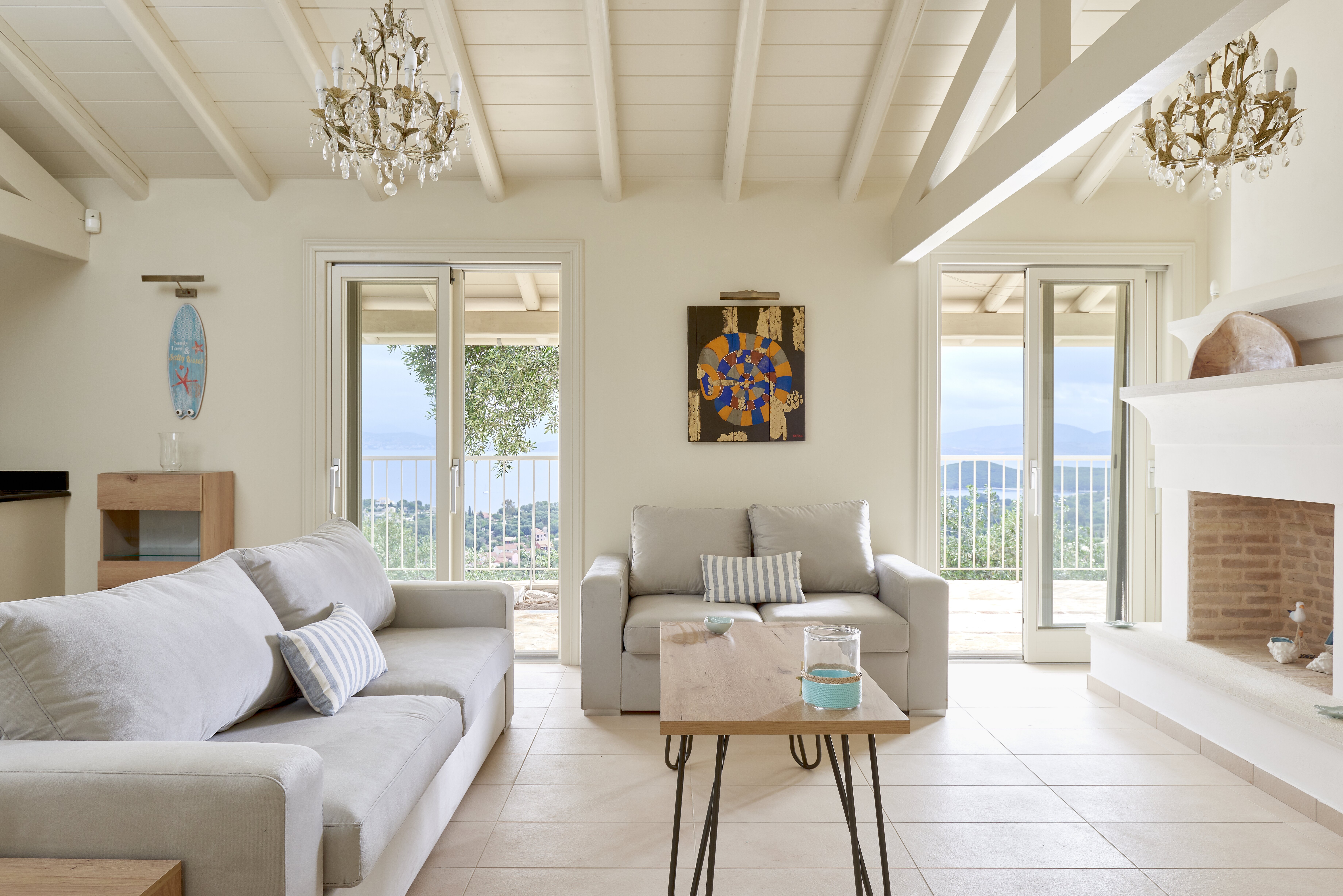 With far reaching views over olive groves to the sea from the wrap-around terrace and infinity pool, Moira is like a breath of fresh air. An excellent choice for a family holiday, this stone-built property is thoughtfully planned for both indoor and al fresco living. Stylish and contemporary, the villa is furnished in crisp white décor with touches of grey, wooden beamed ceilings and modern facilities for extra comfort. Inside, the open-plan kitchen, living and dining area opens out to a gorgeous terrace with a dining table for al fresco meals and a comfortable seating area to enjoy a drink at sundown admiring the view. A double bedroom with shower room en suite and a twin bedroom with bathroom en suite open from each side of the living room and both have direct access to the terrace. The lower ground floor, at pool level, can only be accessed externally and contains a twin bedroom with small sitting room and shower room en suite. This independent twin bedroom opens to an outdoor seating area on the lower terrace. The beaches, shops, tavernas and nightlife of Kassiopi are a 5 minutes’ drive away.