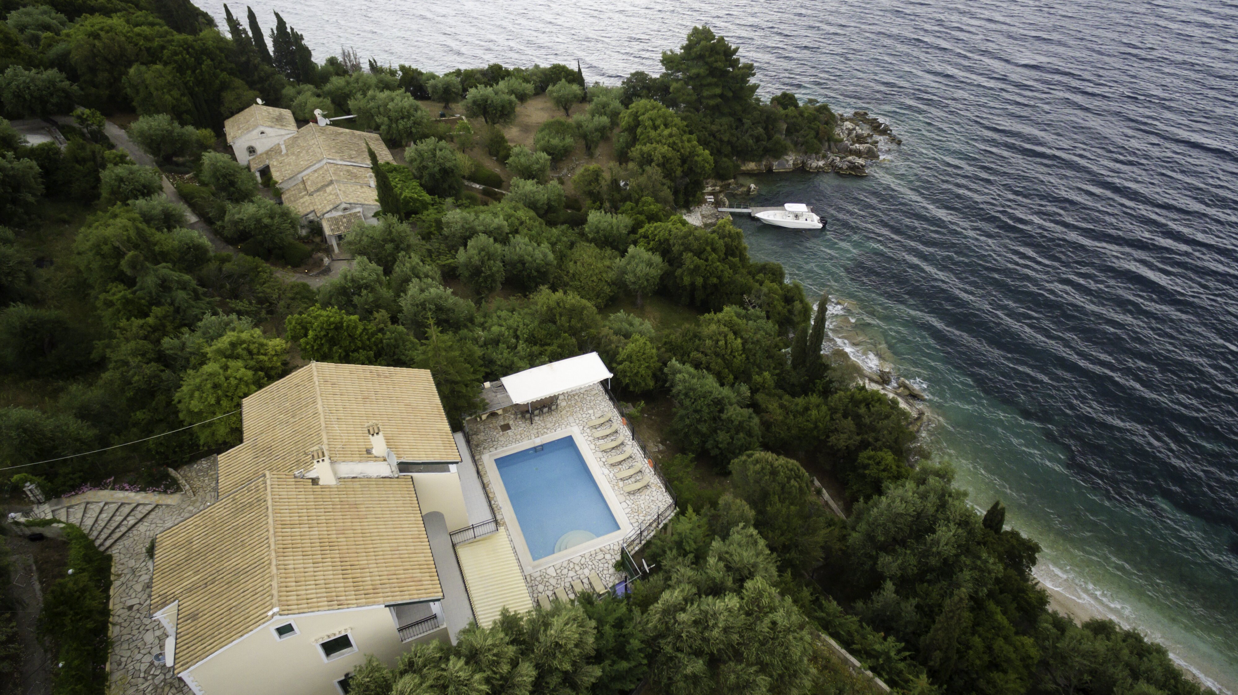 In an absolutely idyllic spot on the island’s north-eastern coast, this family villa in Corfu is set just above a sleepy cove, enjoying exceptional views from the swimming pool terrace and balconies.