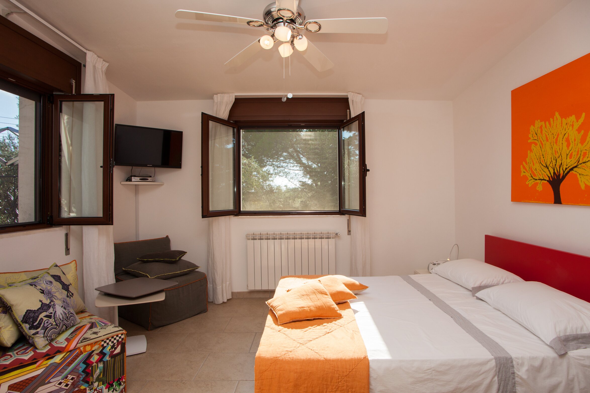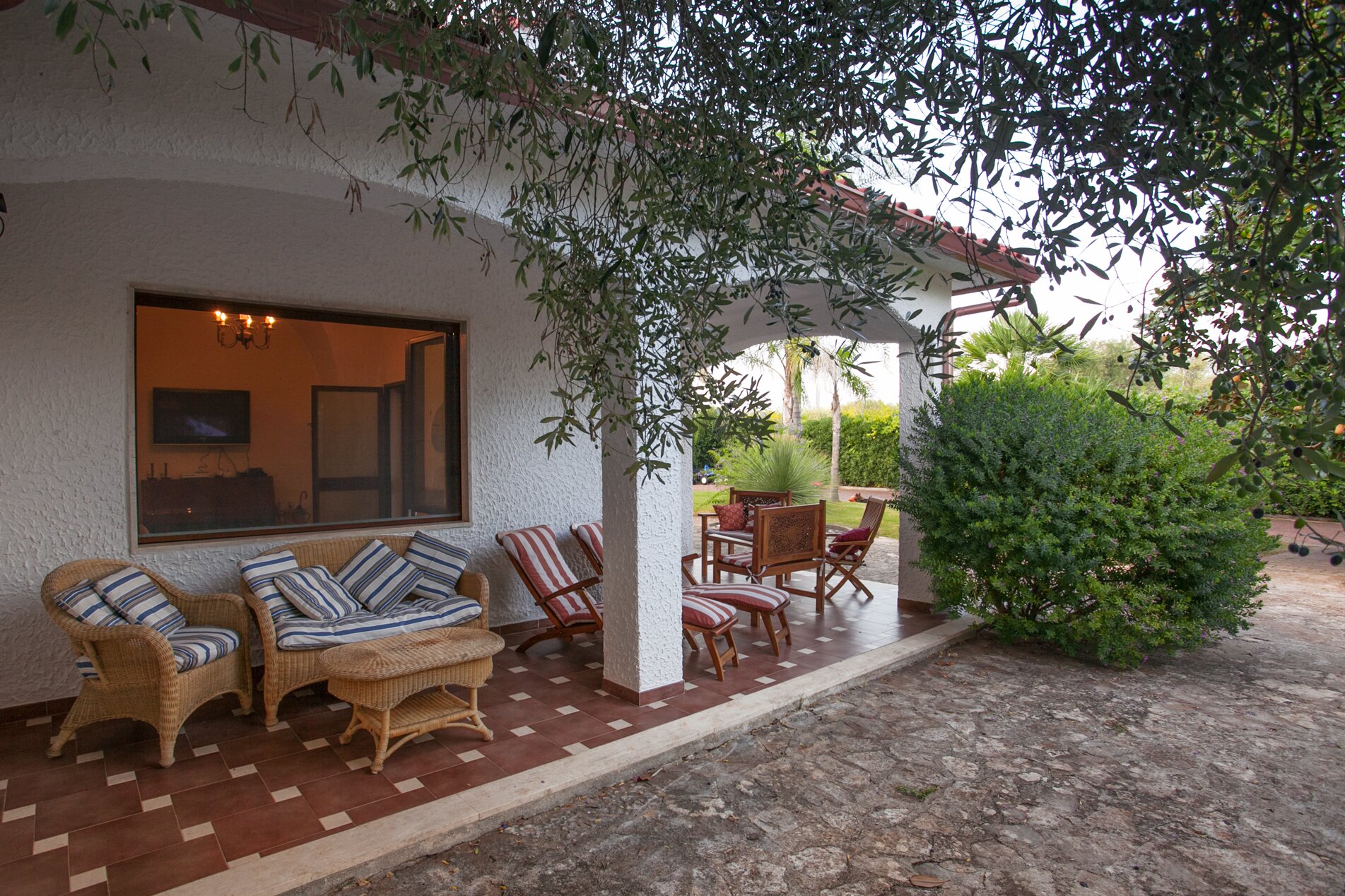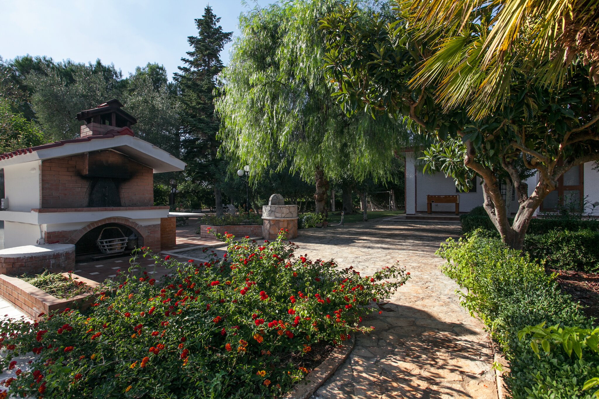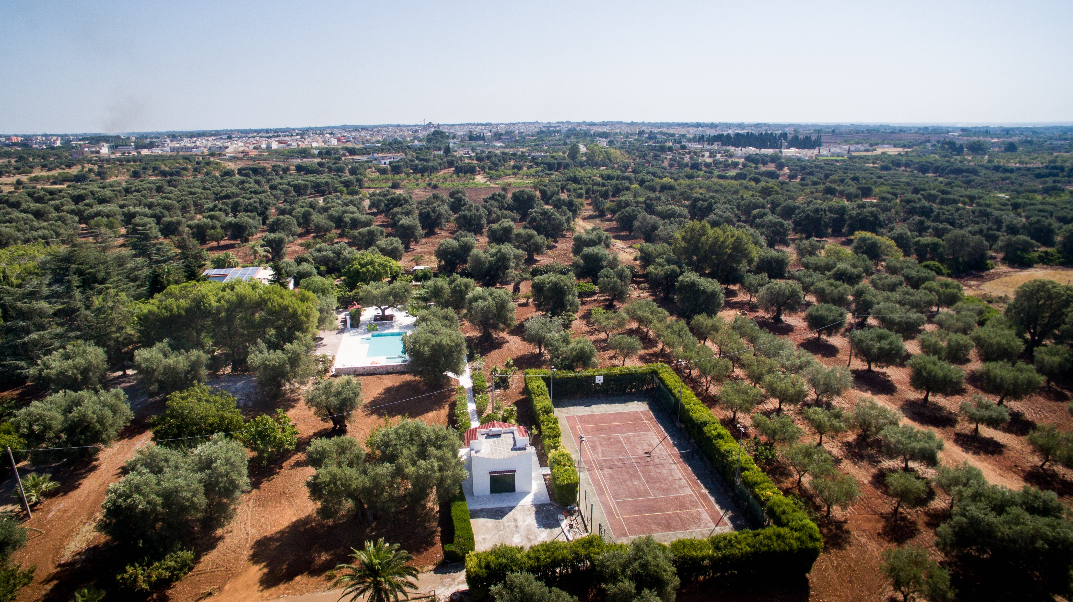 Tucked away at the heart of an ancient olive grove and working farm of four hectares, this sizeable villa makes a fine choice for an formal family gathering. With six bedrooms and several extra beds, the villa can accommodate a mix of up to seventeen adults and youngsters. At ground floor level, there is a split level dining and sitting room, a very well equipped kitchen, two spacious double bedrooms sharing a bathroom. Two further bedrooms and the study sharing a shower room are off an adjacent hallway. The accommodation at ground floor level is complemented by a cheerfully furnished first floor suite accessed by external steps, newly refurbished kitchen opening to a large terrace, another large double bedroom and a bunk bedroom sharing a shower room. The ground floor opens out to a shaded terraces with ample seating and adjacent dining gazebo. A second al fresco dining area is set in tree shade at the poolside, served by a barbecue and pizza oven; and fruit and vegetables grown in the grounds provide pick-your-own ingredients for lunch. Entertainment for every age group includes table tennis and table football, a generous pool and splash pool, floodlit tennis court (with basketball net), children’s go-karts and play area, lawn with football goal, and a selection of bikes. And, with two beaches within 15km, The Olive Grove is just 1.5km from excellent inexpensive restaurants and amenities in picturesque San Vito dei Normanni. Within just 30 minutes of Brindisi airport this is an excellent choice for an easy family holiday.