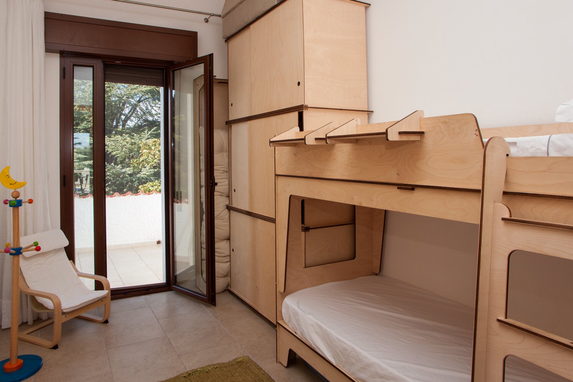 Kitchen with dining area opening to large furnished terrace with spiral staircase down to gardensDouble bedroom (king size)Shower roomBunk bedroom opening to rear terraceFacilities