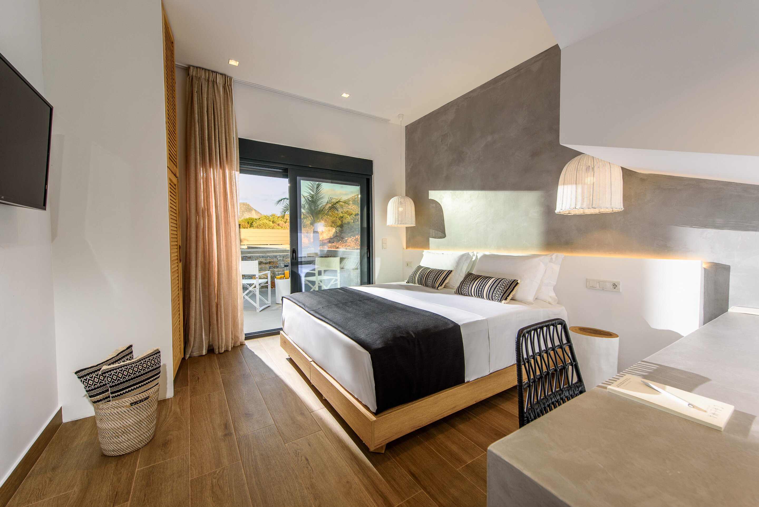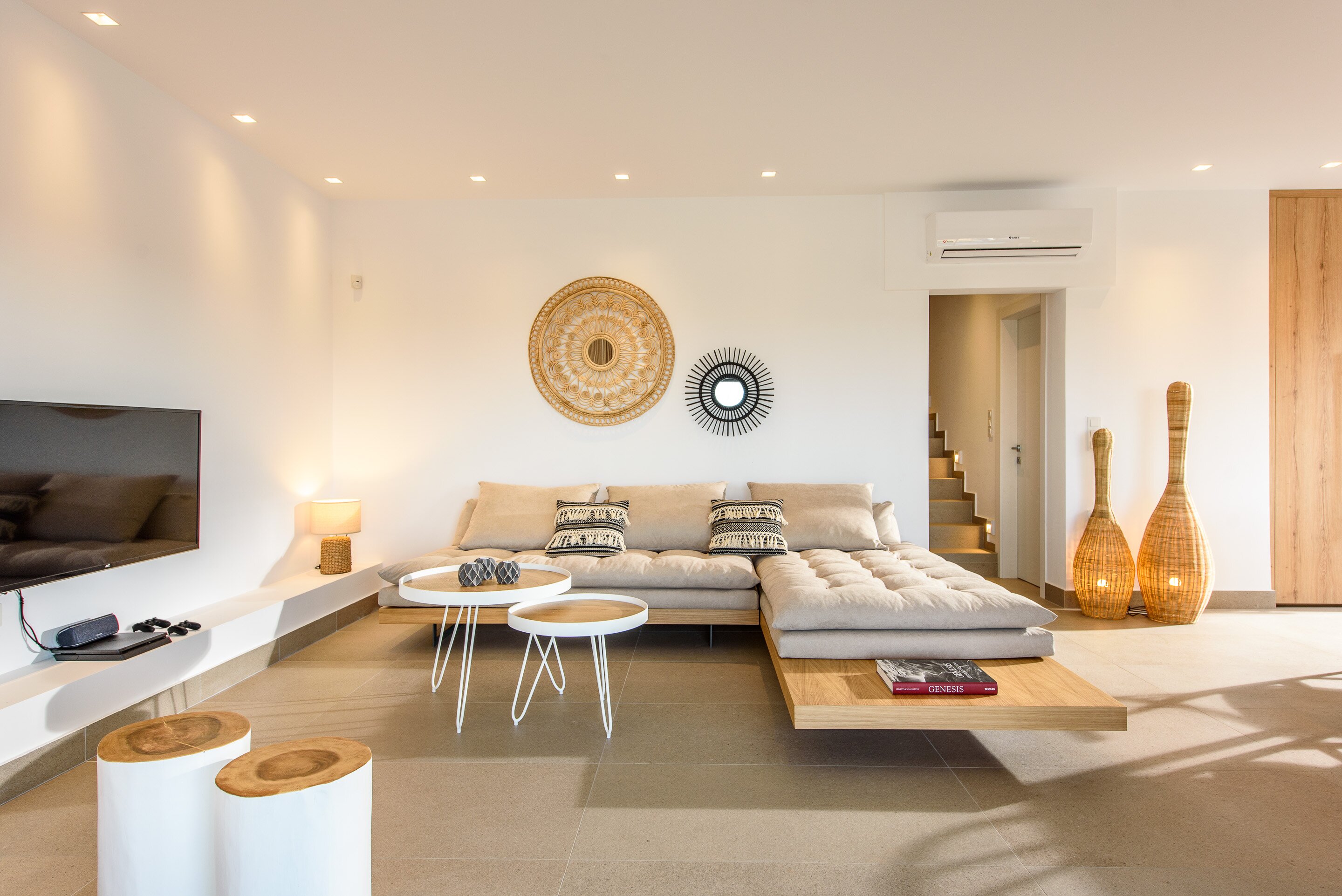 Villa Thea is a contemporary property for 6 in a desirable location within walking distance of a lovely sandy beach, as well as nearby shops and restaurants. Accommodation is across two floors and the whole villa is decorated in neutral shades and cool greys. Downstairs is open-plan with a fully-equipped kitchen, dining room and living room, which opens out to the terrace. An en suite twin bedroom completes the ground floor. Outside is perfectly furnished for outdoor living, with an al fresco dining table, lounge beds in the shade and comfortable wooden loungers by the lovely private pool; there’s also an outdoor kitchen and barbecue for long lunches at the villa.