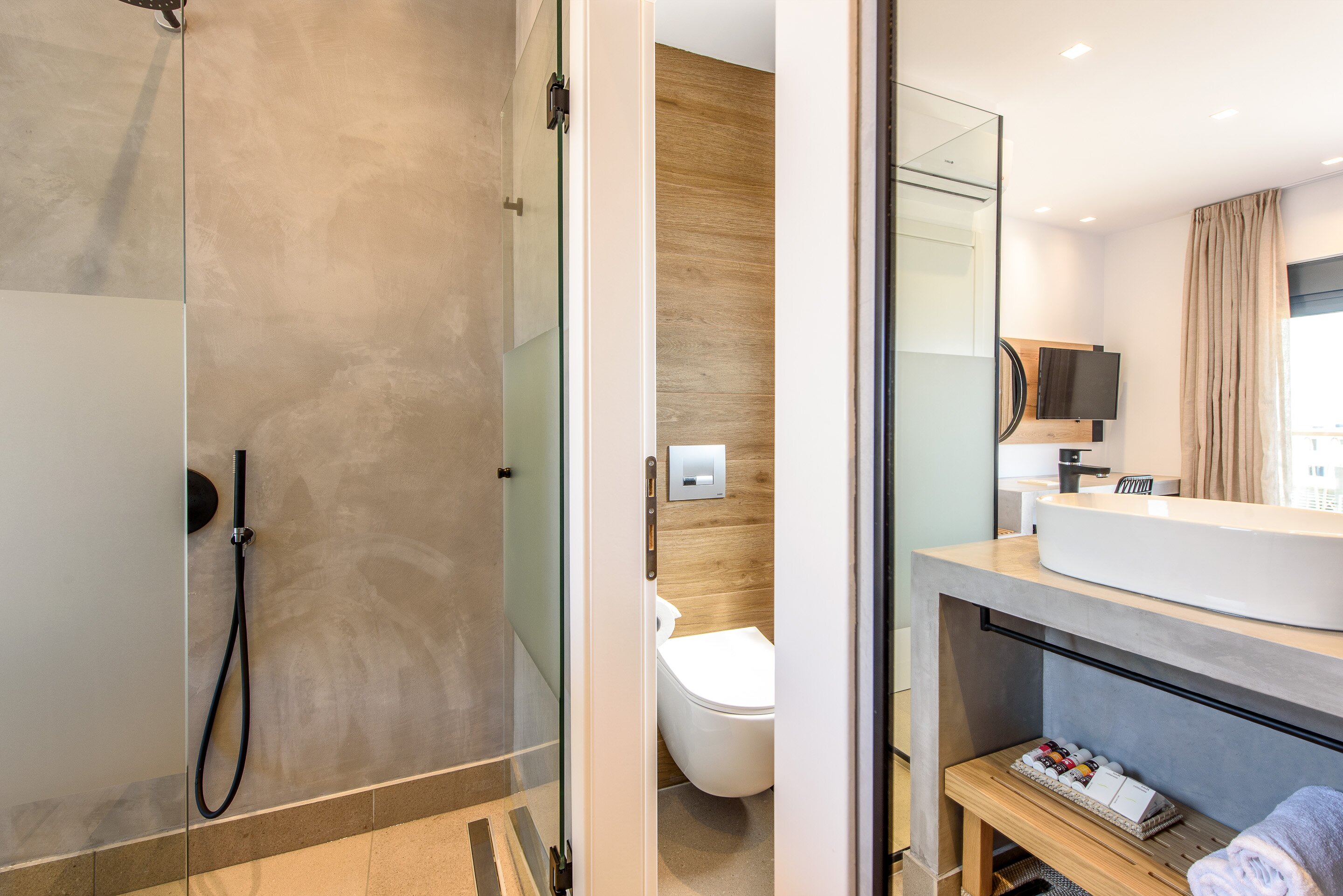 Upstairs there are a further two modern bedrooms, which are both en suite and have access to a lovely shared balcony overlooking the pool. Large groups can rent alongside sister villa Thea next door.
