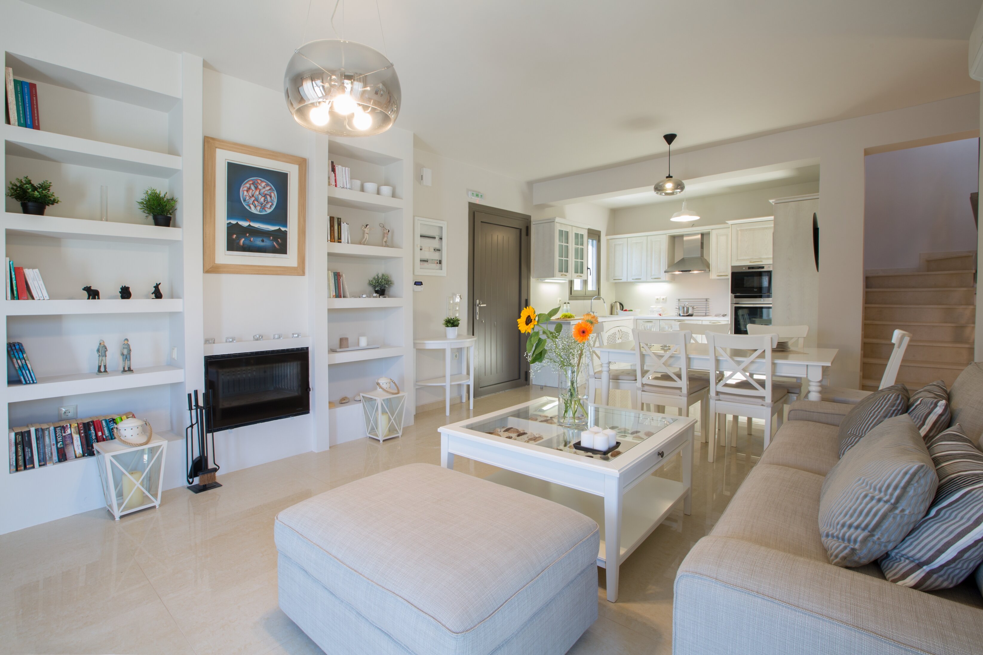 Villa Timo is one of two brand new properties built to the highest standard, perched above the village of Nikiana with beautiful views across the sea to the mountains of the mainland. The property is just 500m from a pebbly beach and Nikiana harbour, and is walking distance or a short drive to the centre of Nikiana with its supermarket, bakery, bank and restaurants. The lively seaside town of Nidri is only 5km away, and Lefkada Town a short drive further. The villa has a clean, modern layout with an open plan living/dining area and kitchen with two sets of French doors opening out to the terrace and letting in plenty of light.