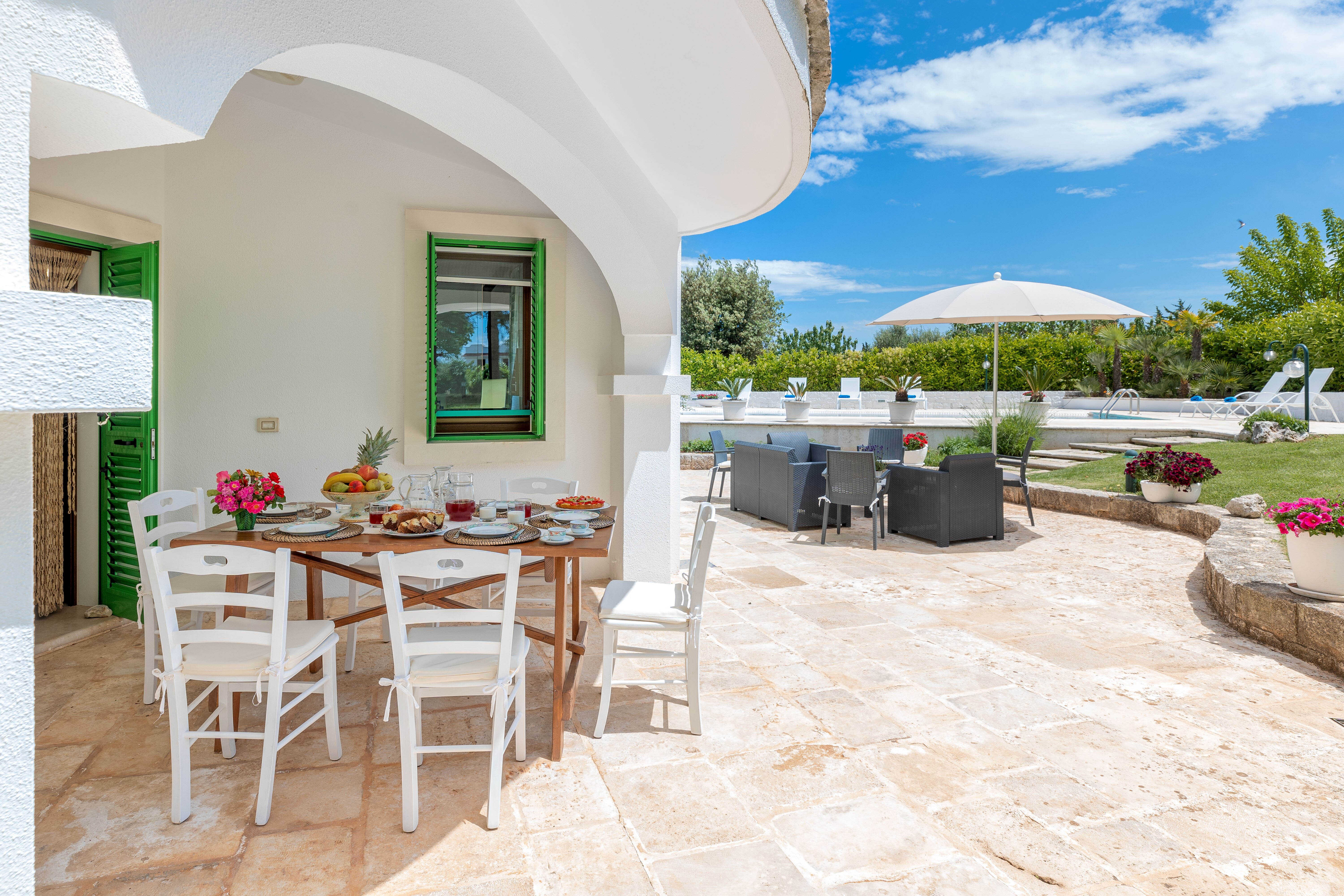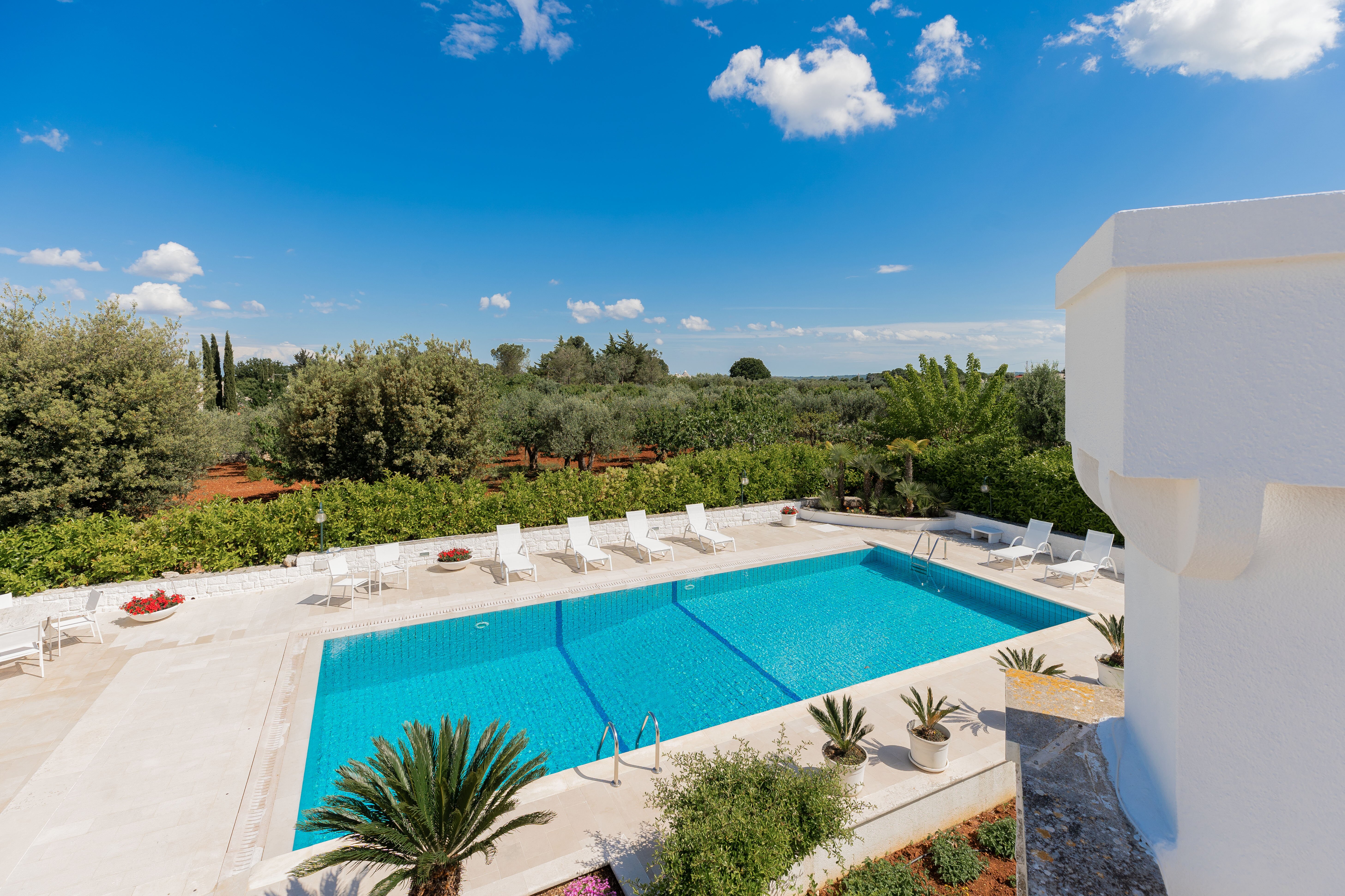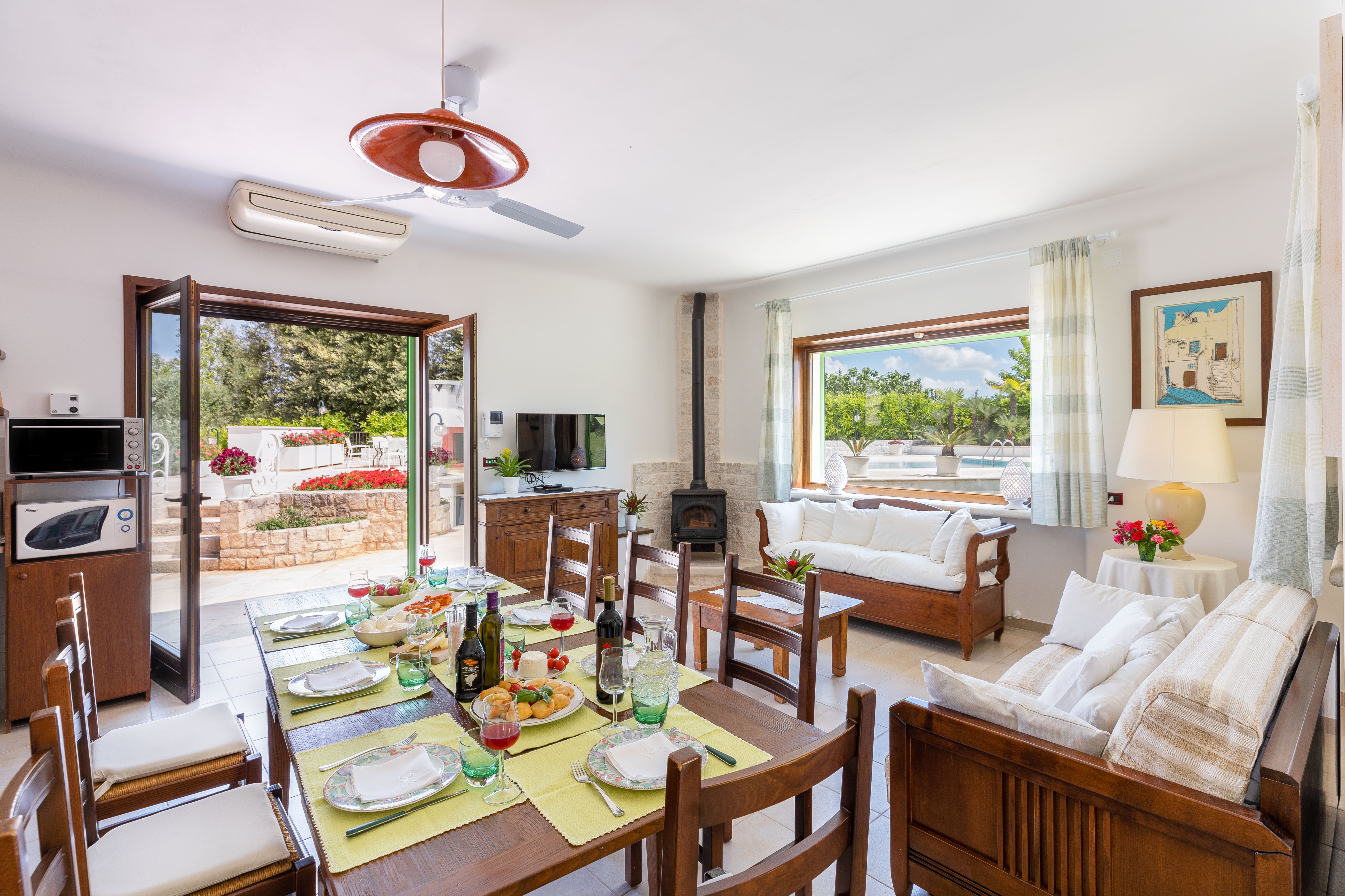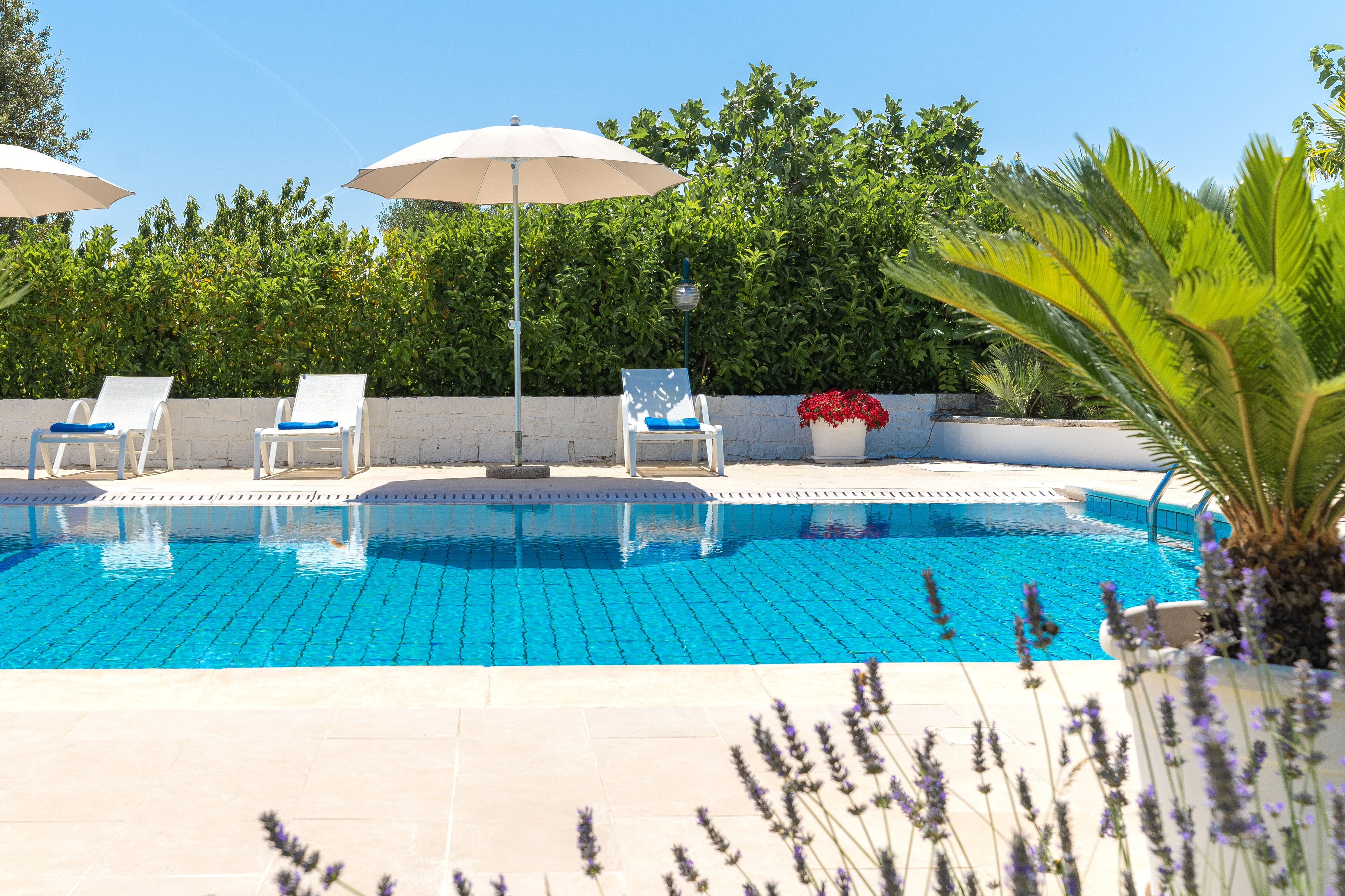Making the most of the Mediterranean climate, this lovely little trulli house is thoughtfully designed and very well equipped for indoor/outdoor living. A generously sized swimming pool is the focal point of the grounds, its poolside terrace punctuated with colourful flower beds and young palms, and backed by the clustered fruit trees of the villa’s private orchard. A canopied dining terrace, well-equipped outside kitchen with barbecue and wood-burning pizza oven make al fresco lunches a delight, and there is table tennis and a utility / shower room in the garden too. There are many different seating areas in sun and shade in the gardens. The layout of the house itself is ideal for two families. In the characterful trulli section, there are two bedrooms, a living room and kitchenette opening out to a patio; and interconnecting doors link the historic building with the more recent part, with a further double and twin bedroom and a light and well-equipped open-plan kitchen/living room. Enjoying very good privacy in its gated gardens, the villa is actually just 1.5km from shops and restaurants in the centre of Cisternino, reached on foot along the country lanes. An excellent restaurant Osteria Sant' Anna and a minor train station with connections to Lecce are closer. A 10km drive leads to a choice of sandy beaches and beach clubs, and Martina Franca, Ostuni and Alberobello are all within 20km.