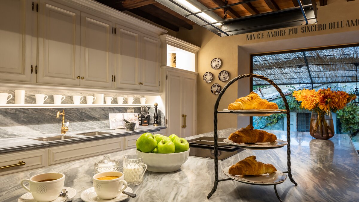This villa has a high spec both inside and out. The gorgeous stone exterior is traditionally classic, and blends perfectly with the rounded sunken swimming pool out back – it’s an instant eye-catcher that's framed beautifully with cast-iron loungers and a generous grey stone patio. There’s plenty of room for a sunbathe or a spot of downtime, as well two large terraces with pergolas which feature Travertine marble tables for those lazy breakfasts, long lunches or warm evening al fresco meals. Inside, the villa is super classy, with an elegance throughout that screams rustic sophistication. Old world buffered cream colored walls are complemented with rich wooden accents, whether that’s the beautiful beamed ceilings, dark wooden window panes or the hand-carved furniture, bespoke to the villa. Expect antique mirrors, Florentine hand painted cabinets and hand forged chandelier lighting in every room – there’s also lovely authentic artefacts and terracotta tiled floors throughout, which add a traditional luxury to the country design. The lounge is beautiful, with plush sofas and a large TV for maximum comfort, and there’s a custom-designed Tuscan kitchen which is a glorious setting for stay in meals. There are seven bedrooms in the villa – the main house sleeps 10, while a further 4 can stay in the poolside granary. All of the bedrooms are very shabby-chic in look and feel – luxurious beds combine with a modern en-suite decorated in a traditional Tuscan marble.