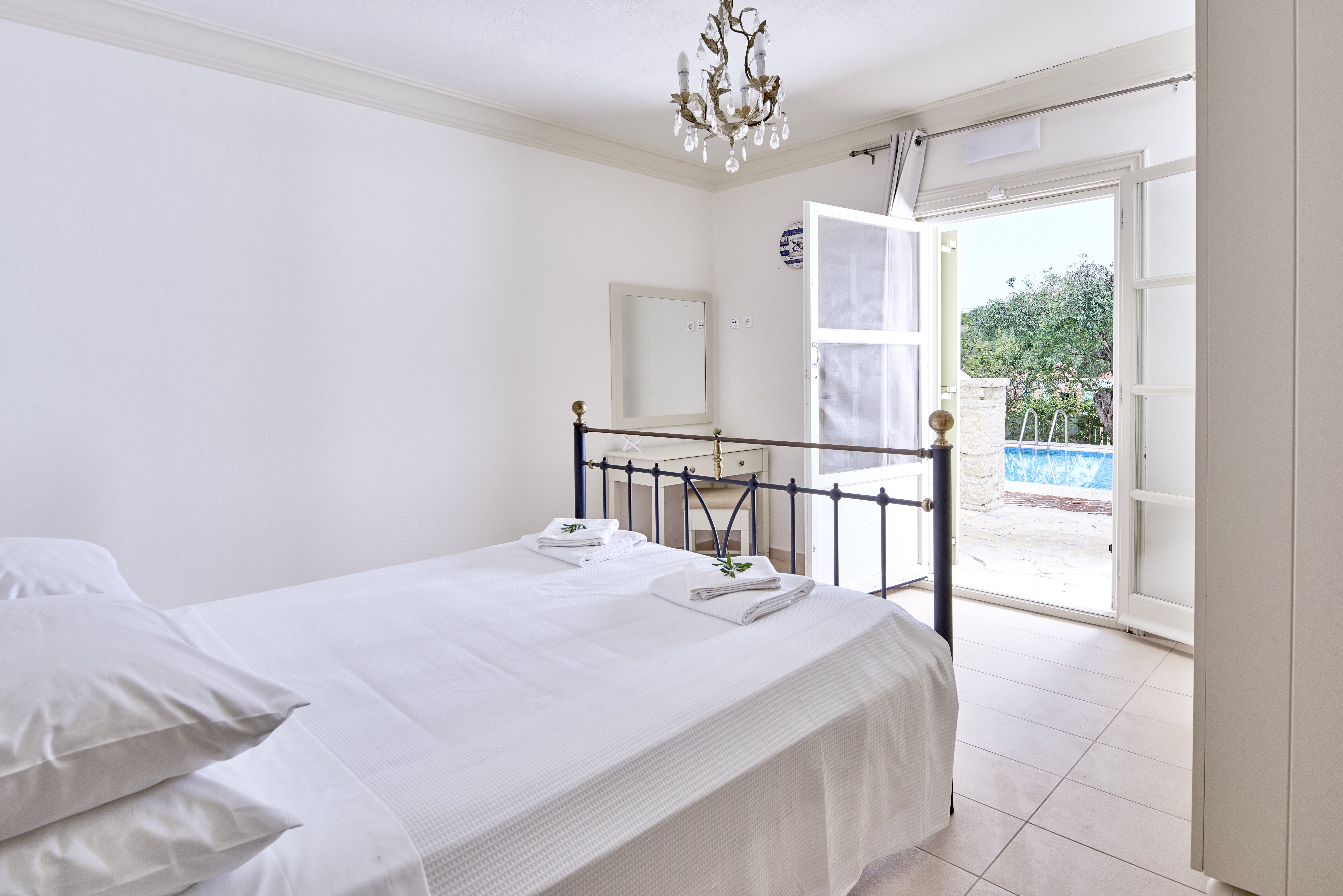 On this level there is also a well-equipped kitchen as well as an open-plan dining and seating area with access to a furnished al fresco terrace. A stone staircase leads down to a patio surrounding the pool with direct access to a twin bedroom with a shower room en suite. The spacious master bedroom also has access to an en suite bathroom with a separate shower cubicle. This comfortable property is a short stroll away from the thriving harbour of Kassiopi and its popular beaches. Villa Cassia is attached at ground level to its sister property, however it retains its own privacy.