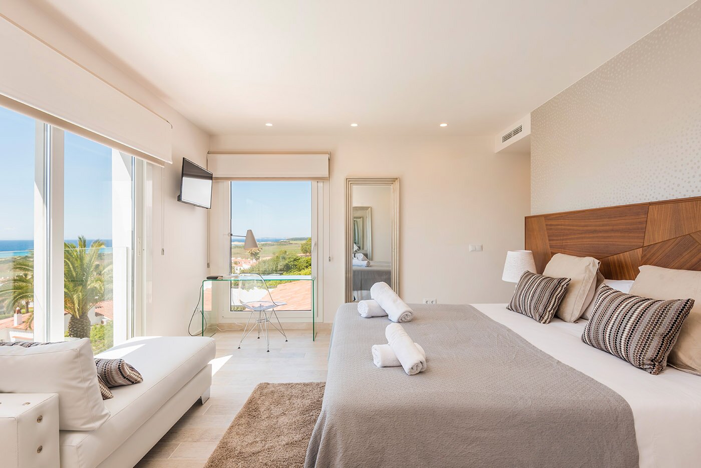 A smart and stylish luxury villa in Menorca, this impressive house has panoramic sea views and makes a gorgeous choice for a gathering of family and friends.