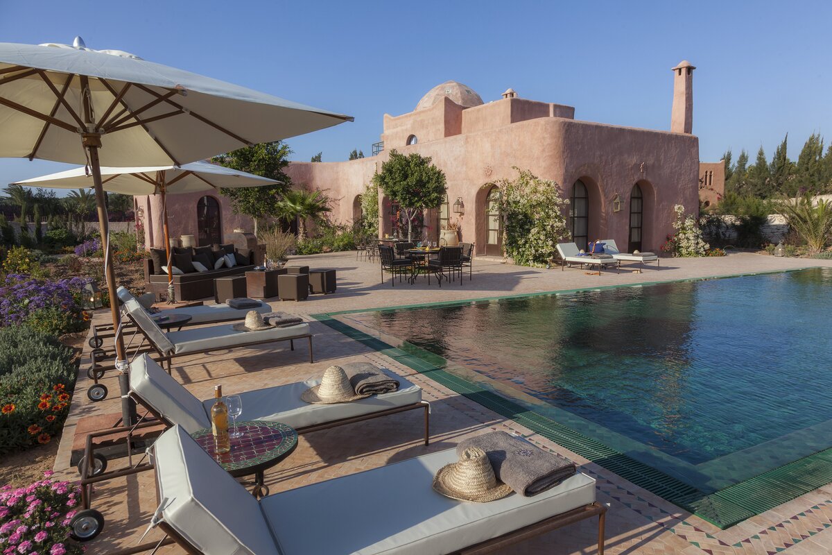 Villa Etoile is one of six very spacious and comfortable fully staffed private villas set in private gardens within the grounds of a small and very special hotel, set in a river valley, sheltered from the desert winds. All the villas are set in beautiful lush gardens and their décor showcases the richly coloured exotic fabrics and distinctive tiles that Morocco is well known for. The bedrooms are flexibly furnished and can be made up as either double or twin and are of a consistent size, with air conditioning and either a bath or shower room en suite. The spacious living rooms catch the cooling breezes, and open on to a broad terrace, with al fresco sitting and dining areas, each with a beautiful large pool with Moroccan tiling. All bedrooms on the ground floor at Villa Etoile open out to the extensive lawned gardens or terrace and one of the ground floor bedrooms has two additional beds. The master bedroom on the first floor opens to a terrace and has a domed ceiling with star pattern. Breakfast is included and for other meals, guests can choose to be independent, shop locally and self-cater, ask the villa staff to prepare meals, or choose dishes from the villa food menu or wine list or dine a la carte at the noted hotel restaurant where barbecues are held on Sundays. Guests can also use the hotel bar and enjoy beauty and wellness treatments in the spa that this special hotel offers. The hotel staff will be pleased to advise on local activities such as surfing and can organise car hire or transfers to explore local beaches and restaurants. There is also a shuttle service to the centre of Essaouira.